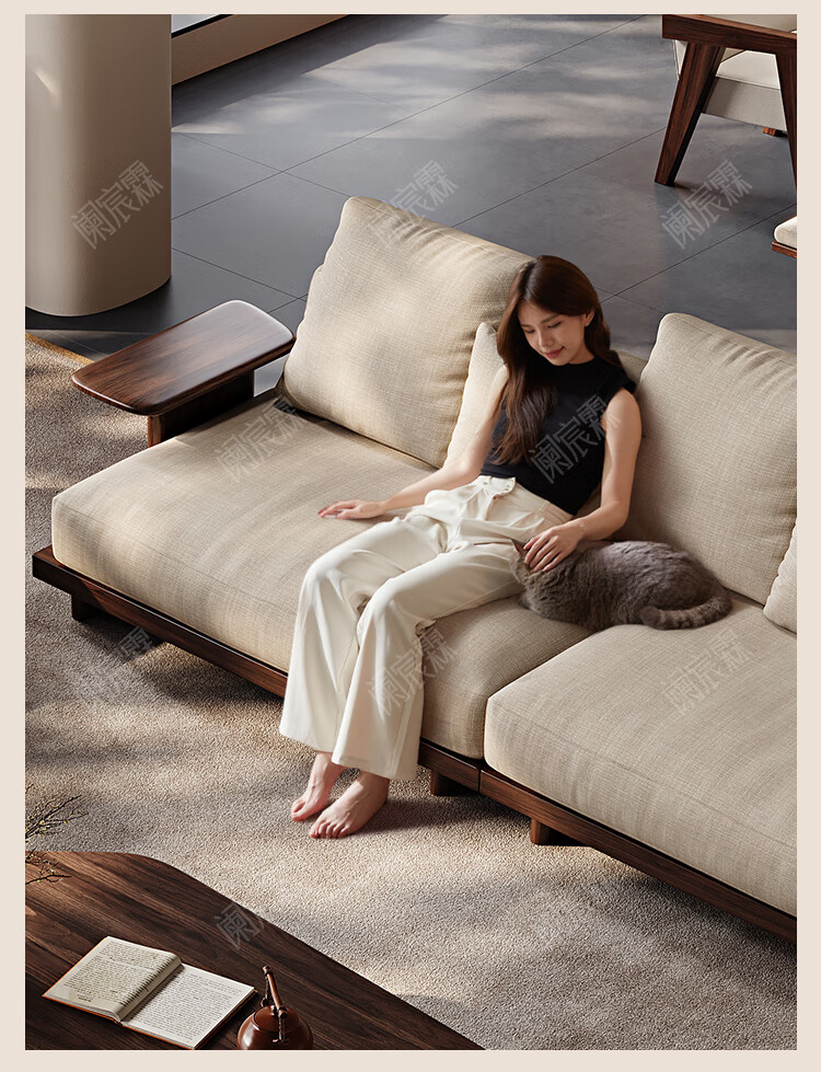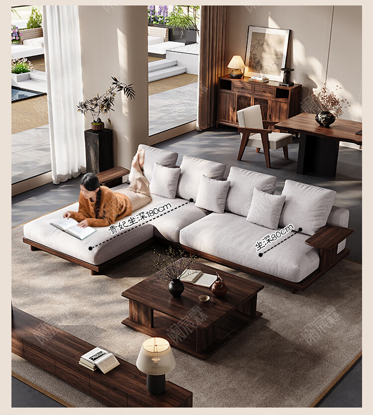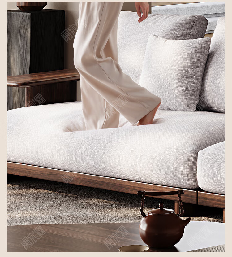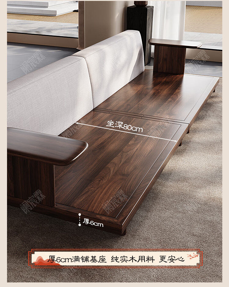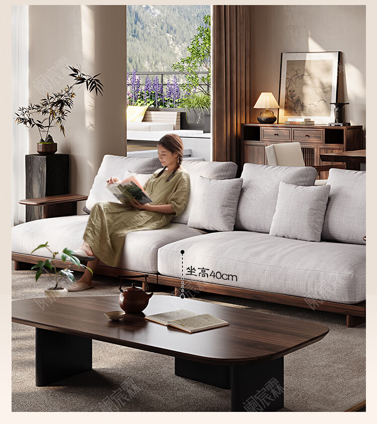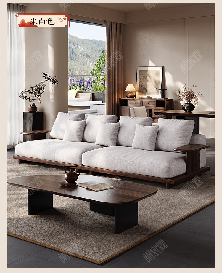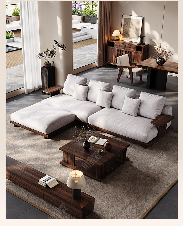 Lanchenlin Song's Aesthetic Black Walnut Solid Wood Sofa New Chinese Style Living Room 2025 New Combination Straight Sofa Home 2.62 Meter Three-Seater + Double + Single + Coffee Table