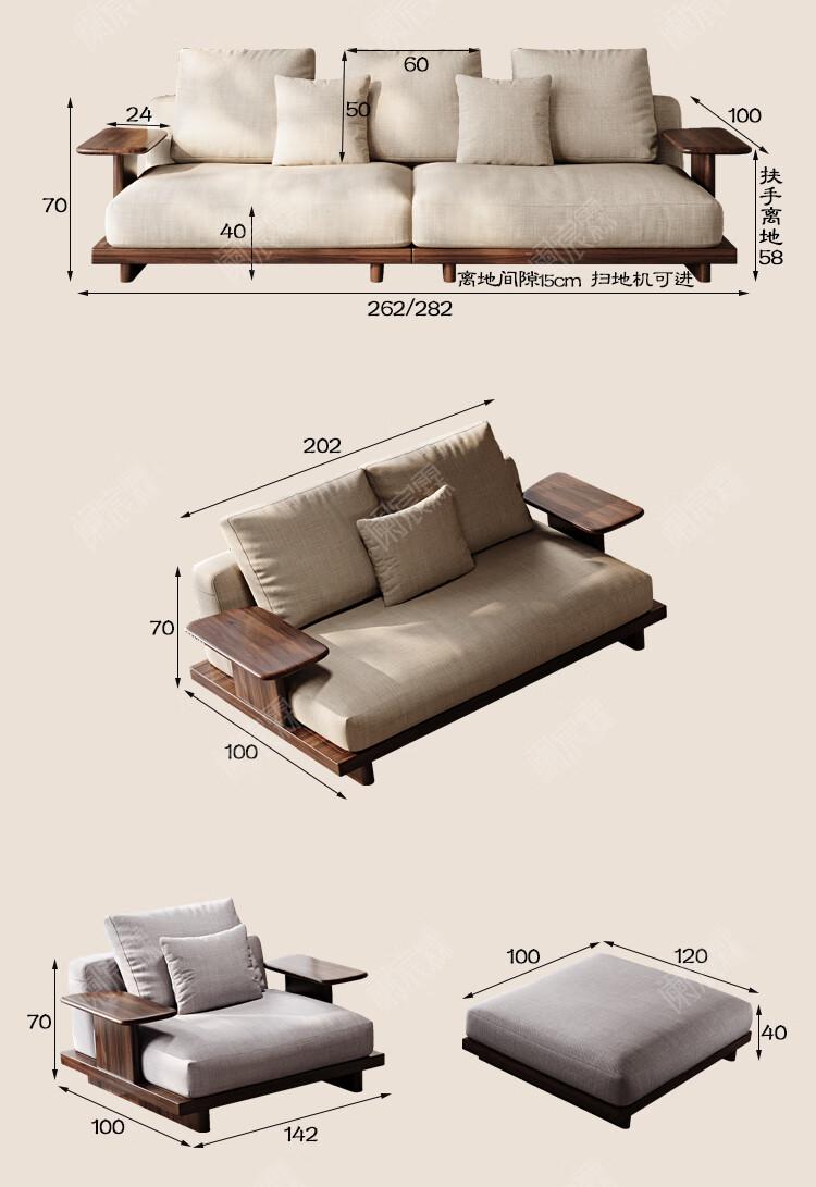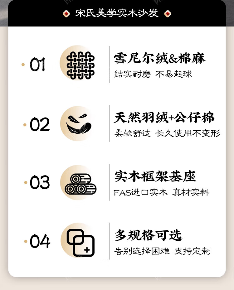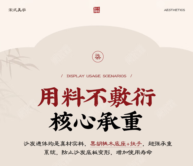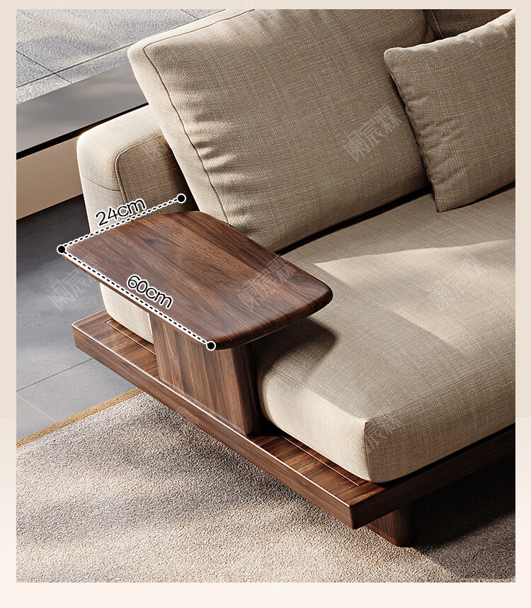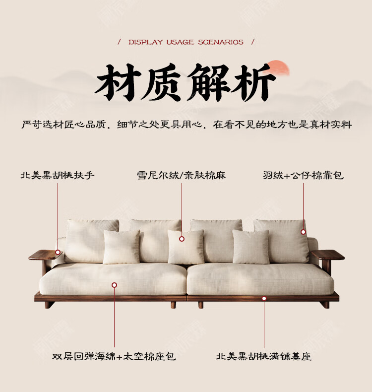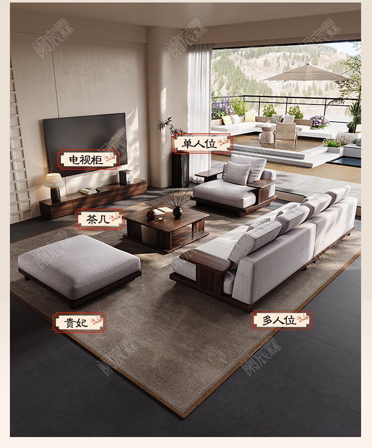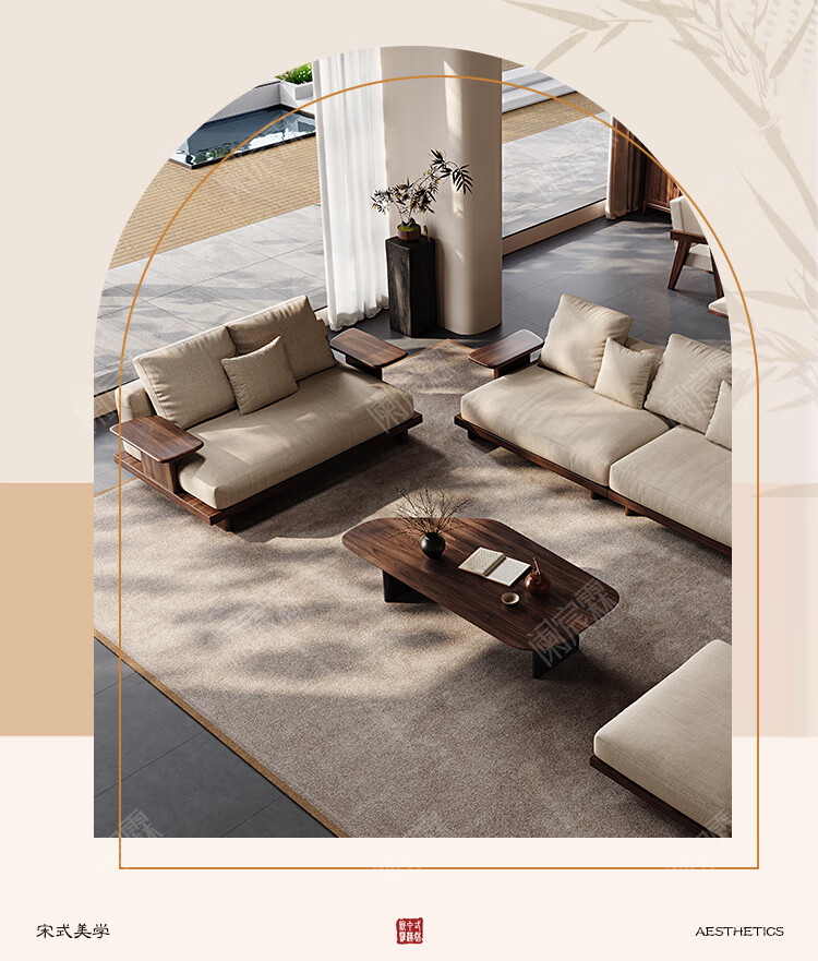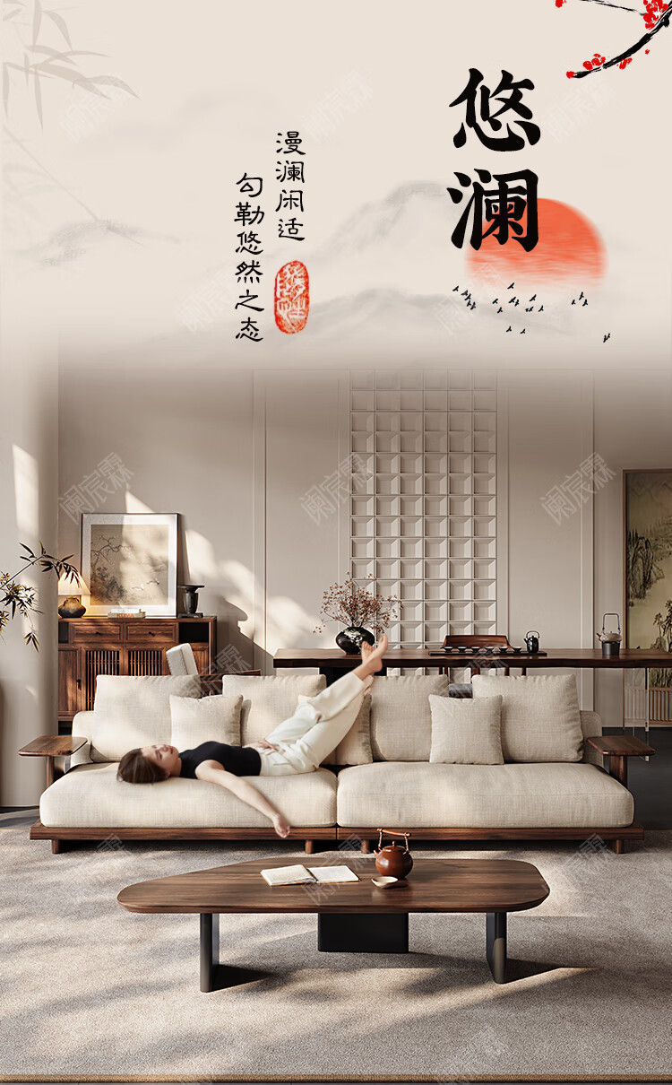 Lanchenlin Song's Aesthetic Black Walnut Solid Wood Sofa New Chinese Style Living Room 2025 New Combination Straight Sofa Home 2.62 Meter Three-Seater + Double + Single + Coffee Table
