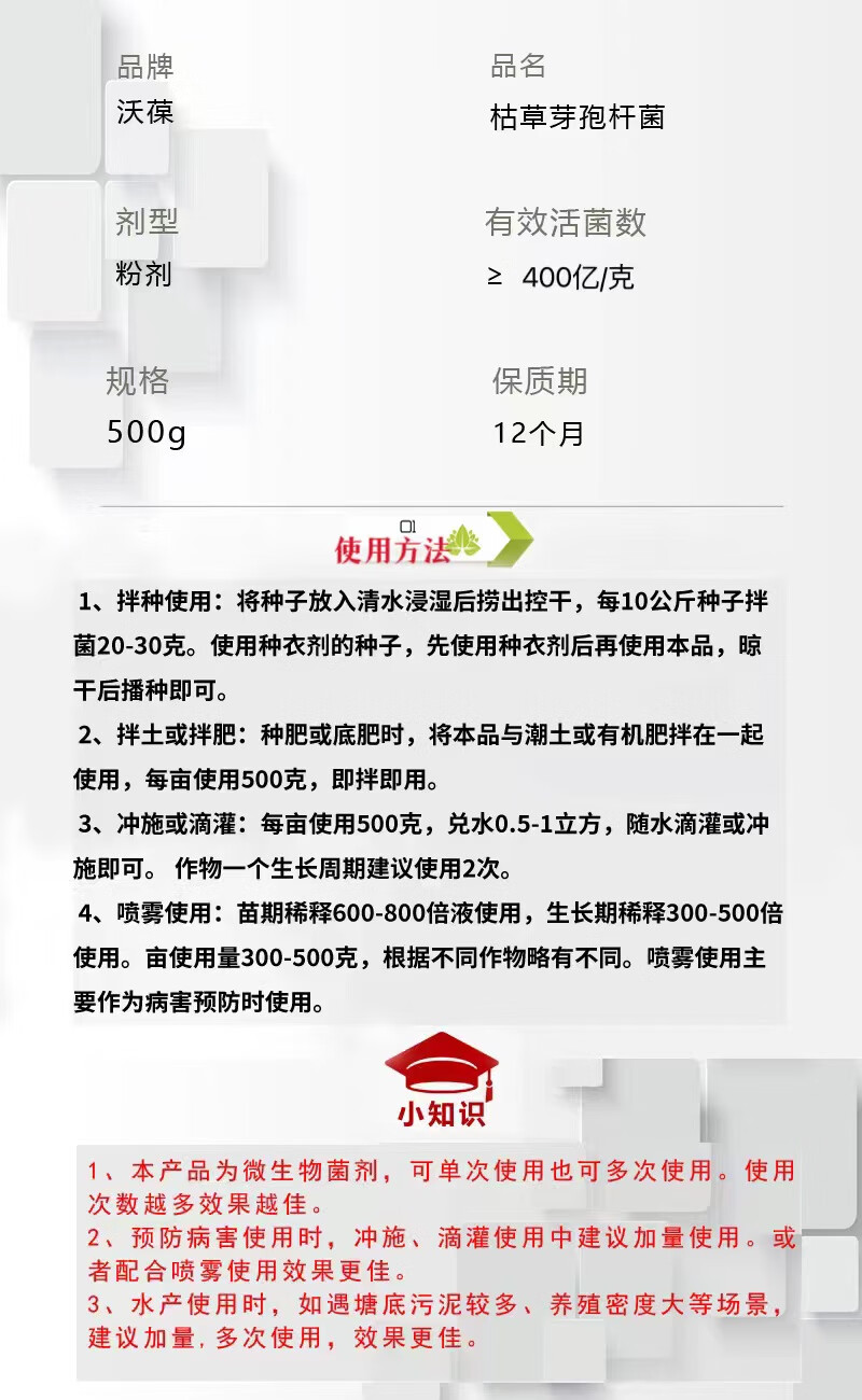 Wobao Bacillus subtilis anti-root rot soil-borne disease microbial agent highly active water-soluble fertilizer microbial agent Bacillus subtilis 200g*1 bag