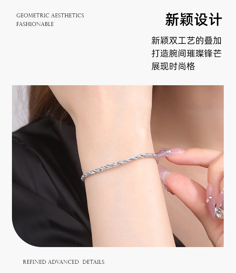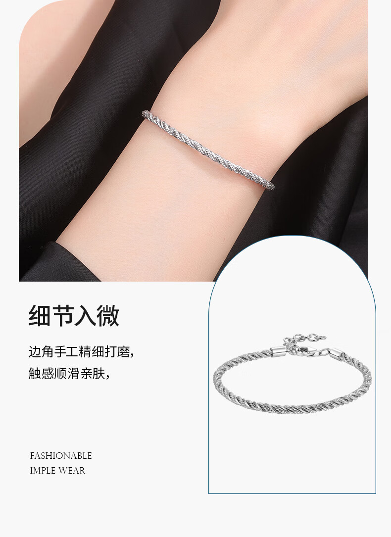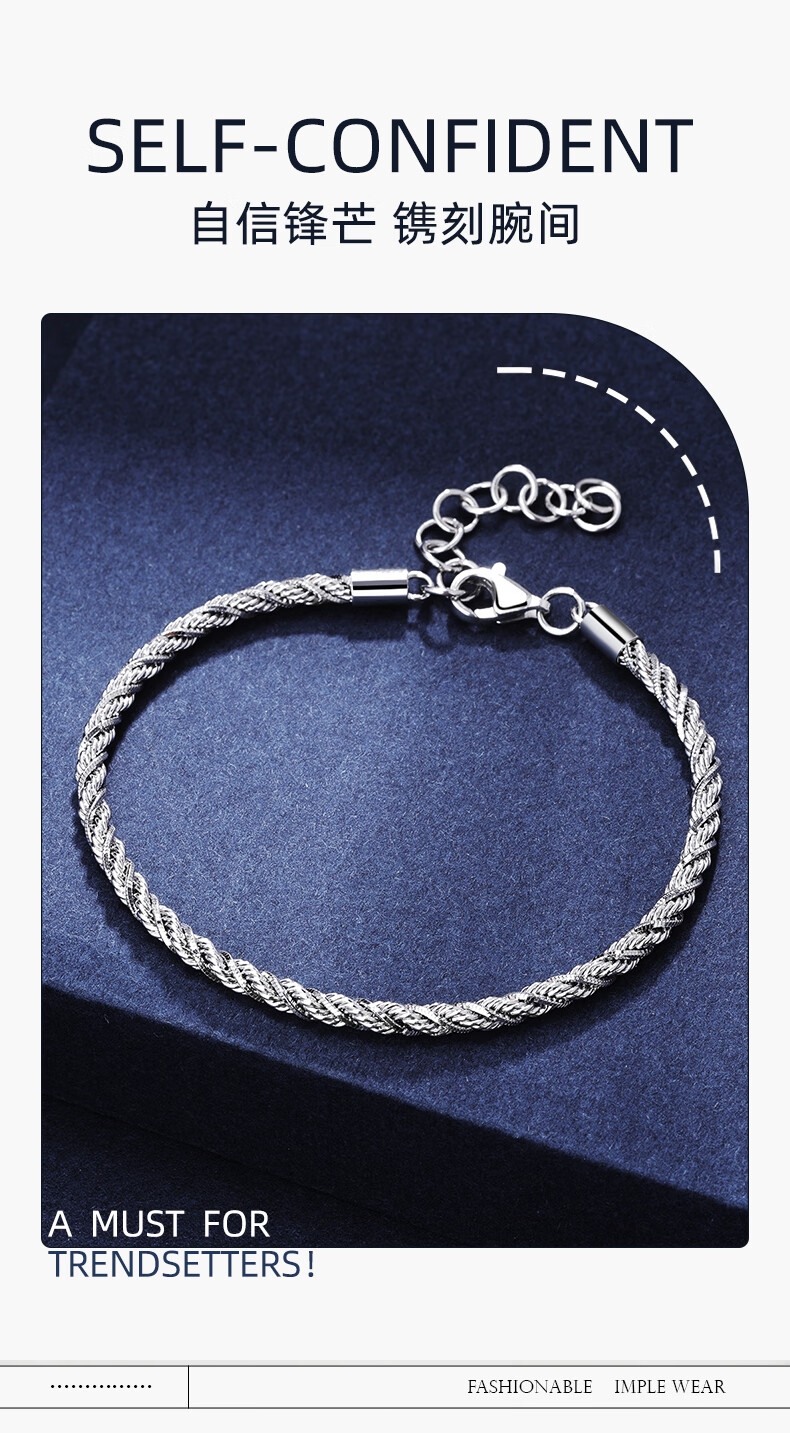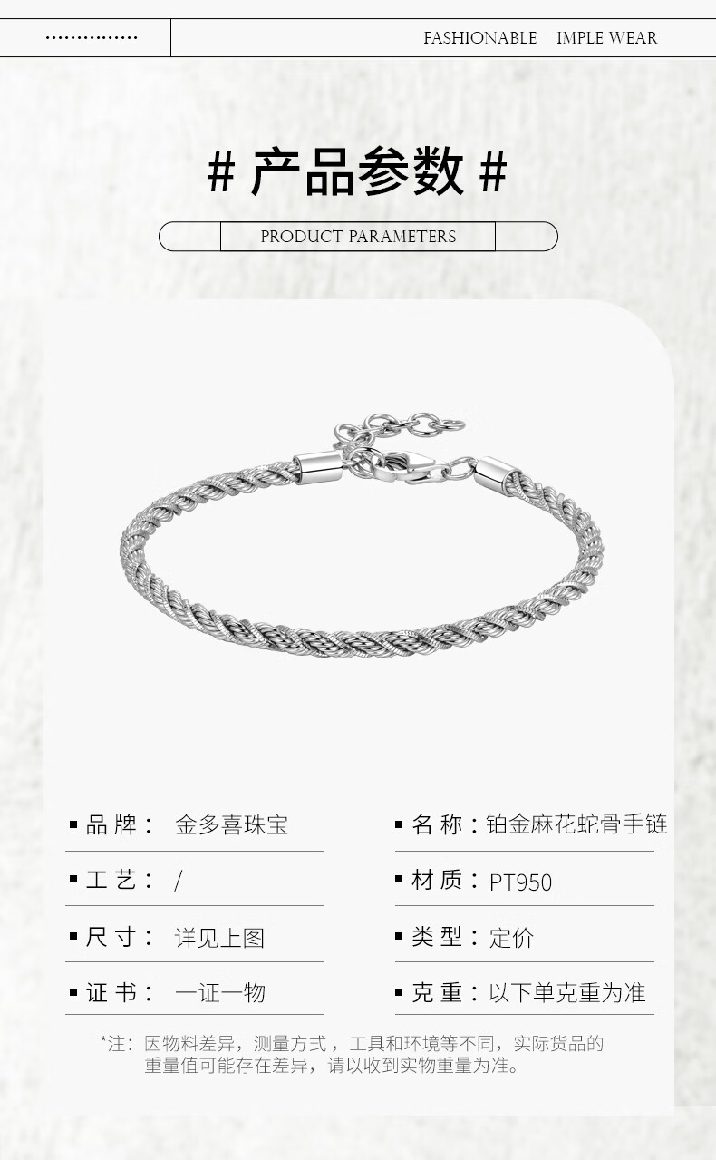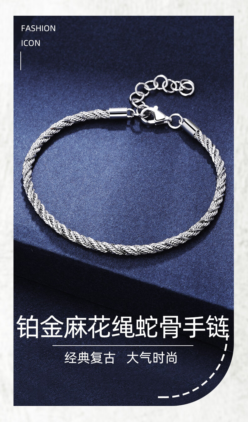 Jin Duoxi's new platinum bracelet for men, gold chain, platinum pt950 twist snake bone rope chain bracelet for men and women, width 2.8mm, length 15+3cm, weight 9.5-9.7 grams