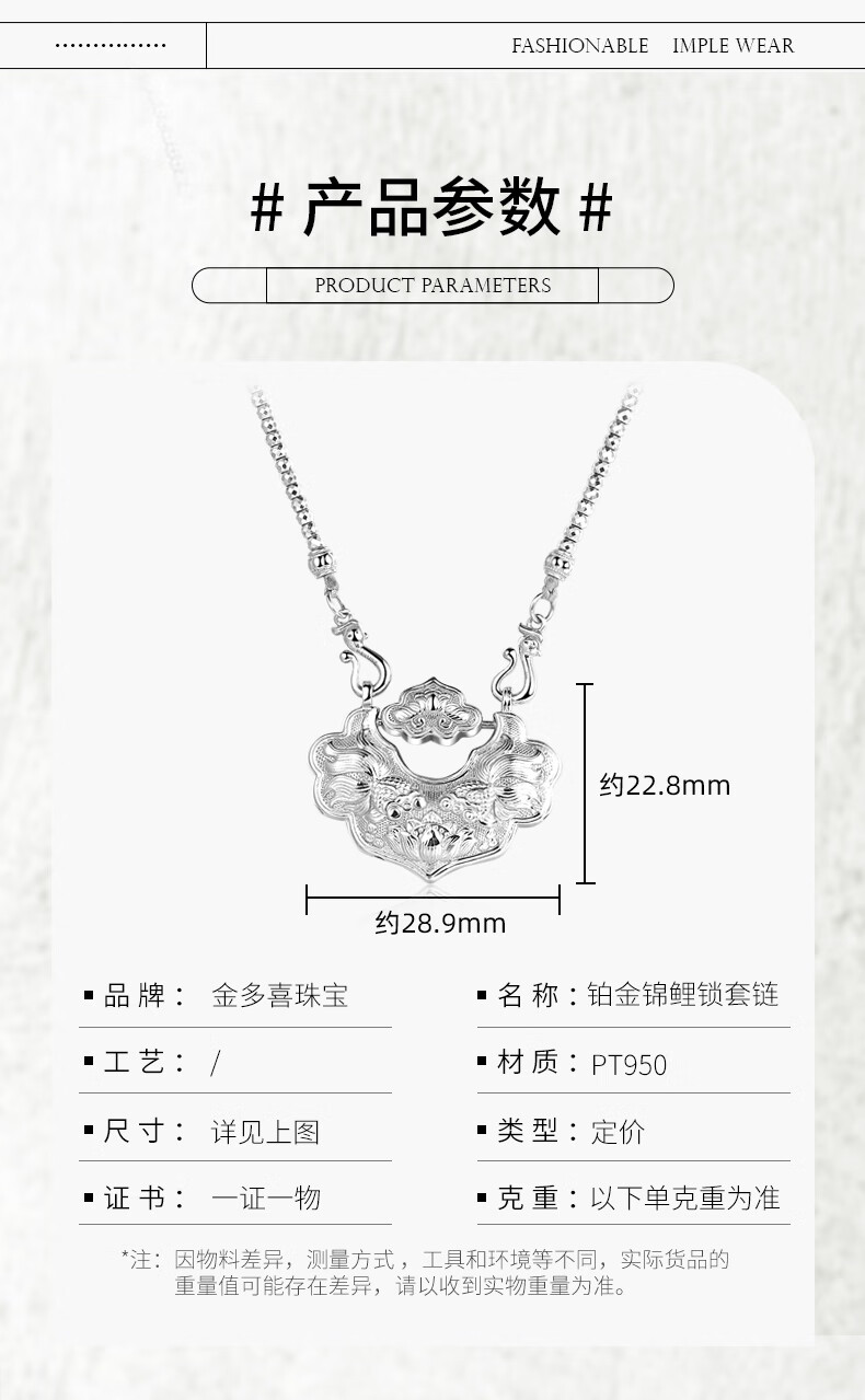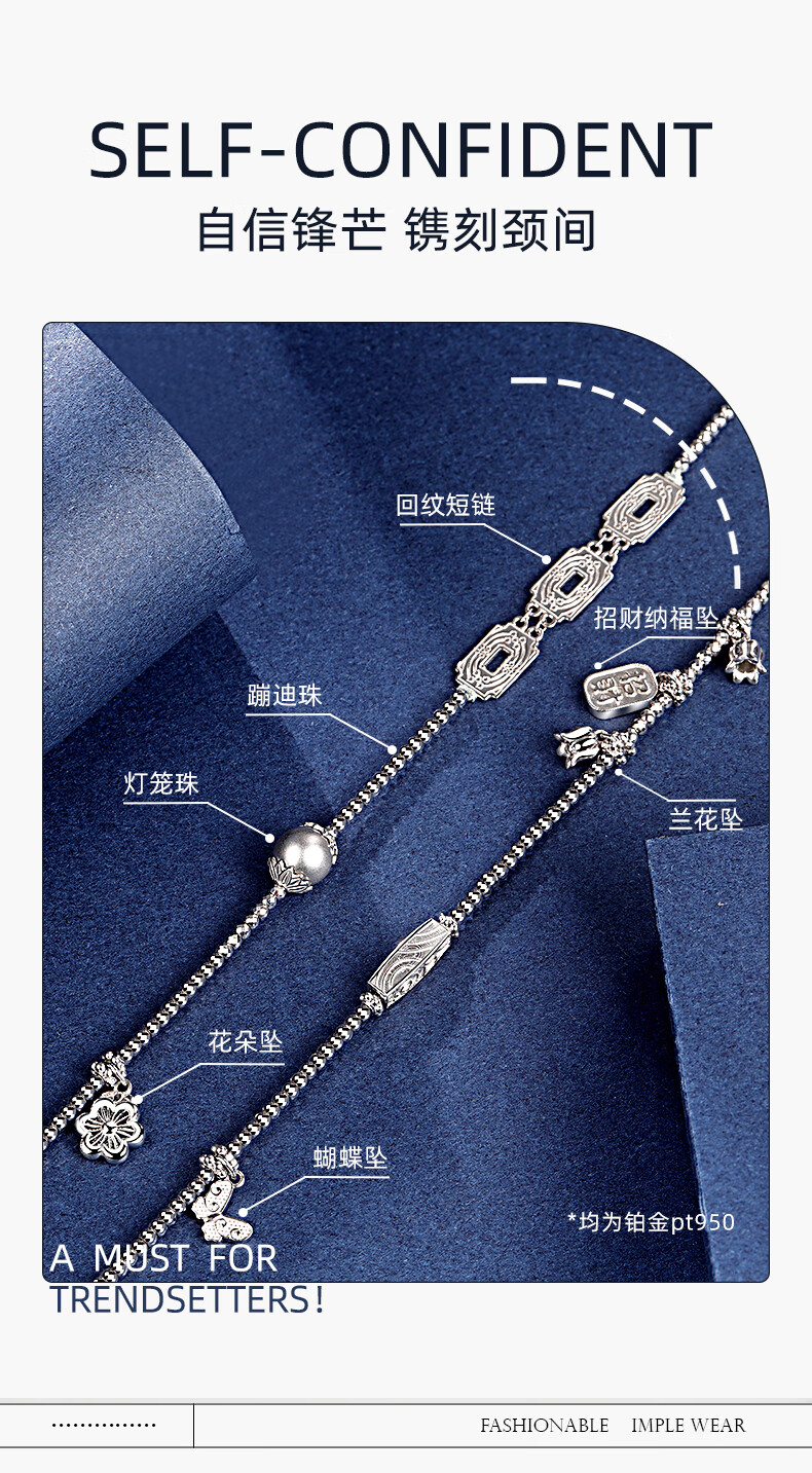 Jinduoxi platinum necklace women's pt950 platinum necklace women's pure platinum new sweater chain set chain safety buckle lock bag chain gold weight about 38.97 grams, length about 50cm