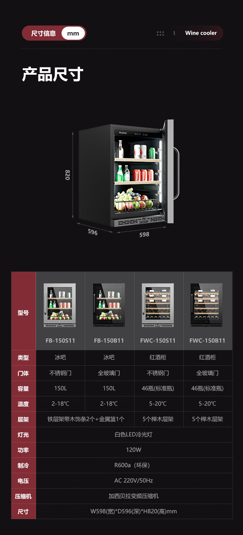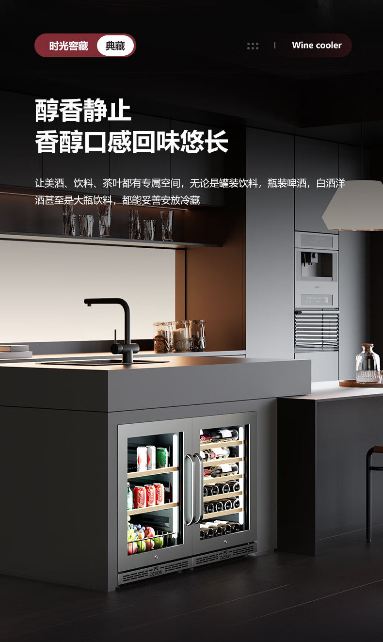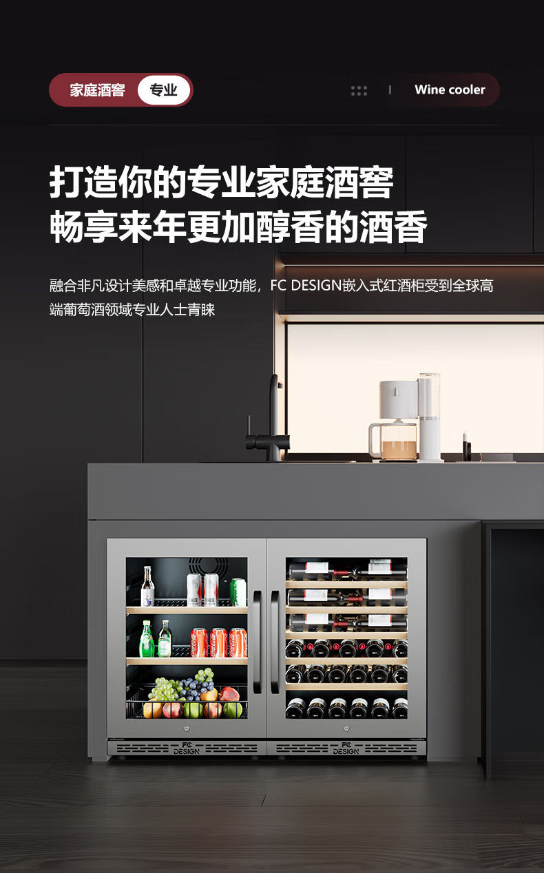 Kaooseen constant temperature wine cabinet embedded ultra-thin red wine cabinet constant temperature household embedded wine cabinet household under counter embedded ice bar FWC-150 stainless steel door wine cabinet + ice bar