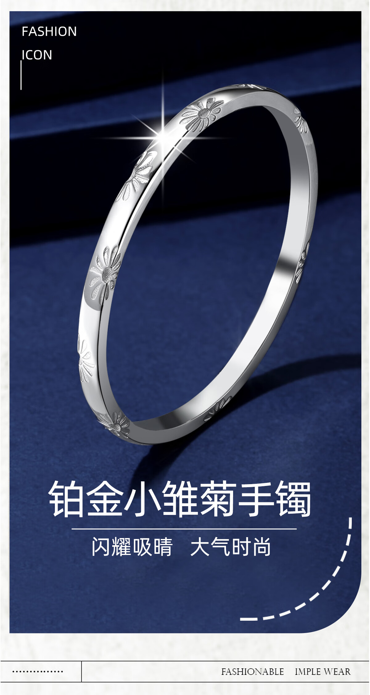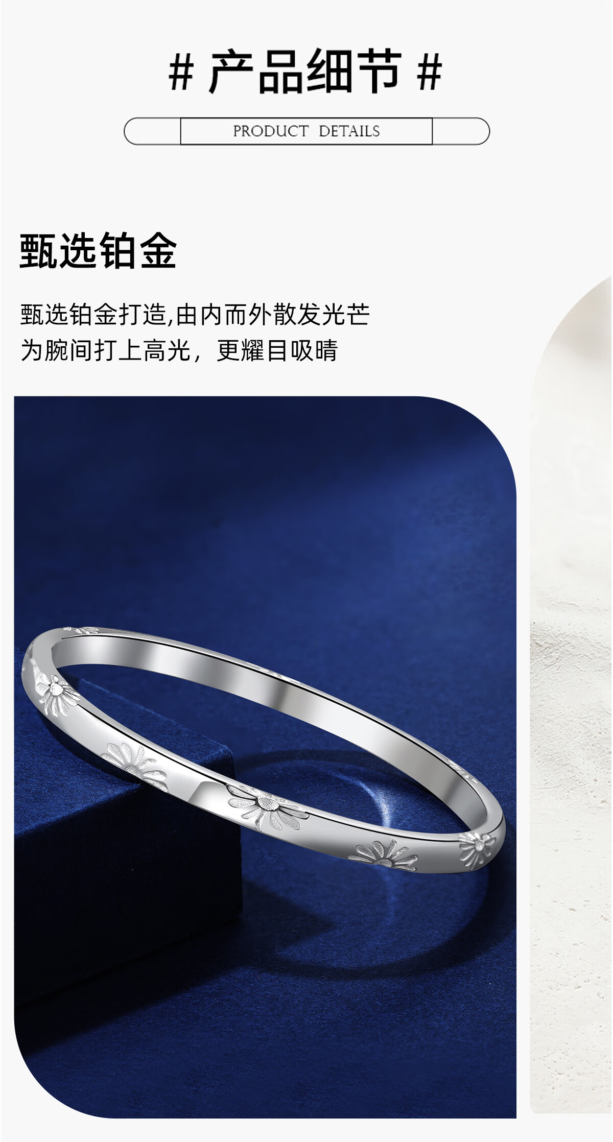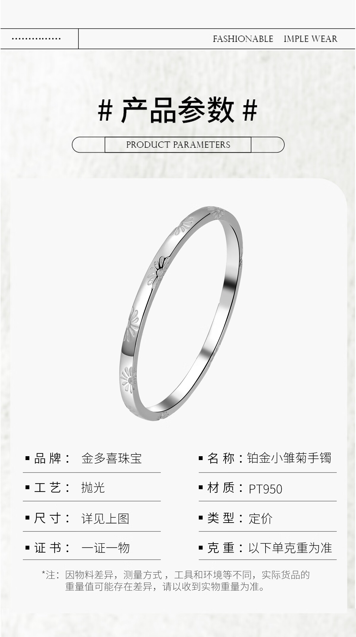 Jin Duoxi genuine platinum bracelet for women pt950 white gold bracelet small daisy bracelet pure platinum solid bracelet for women Qixi Festival, perfect circle 52, width about 4.4mm, weight about 23.45 grams