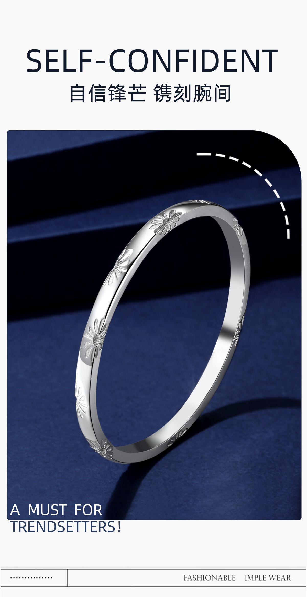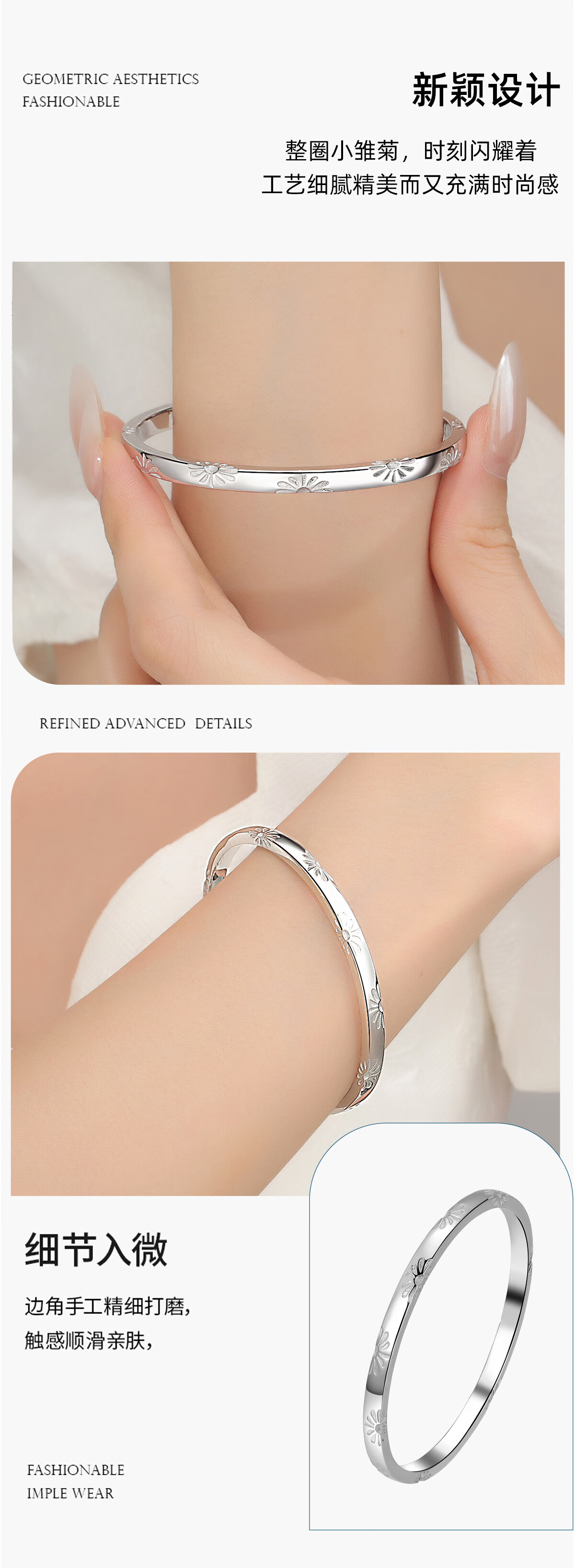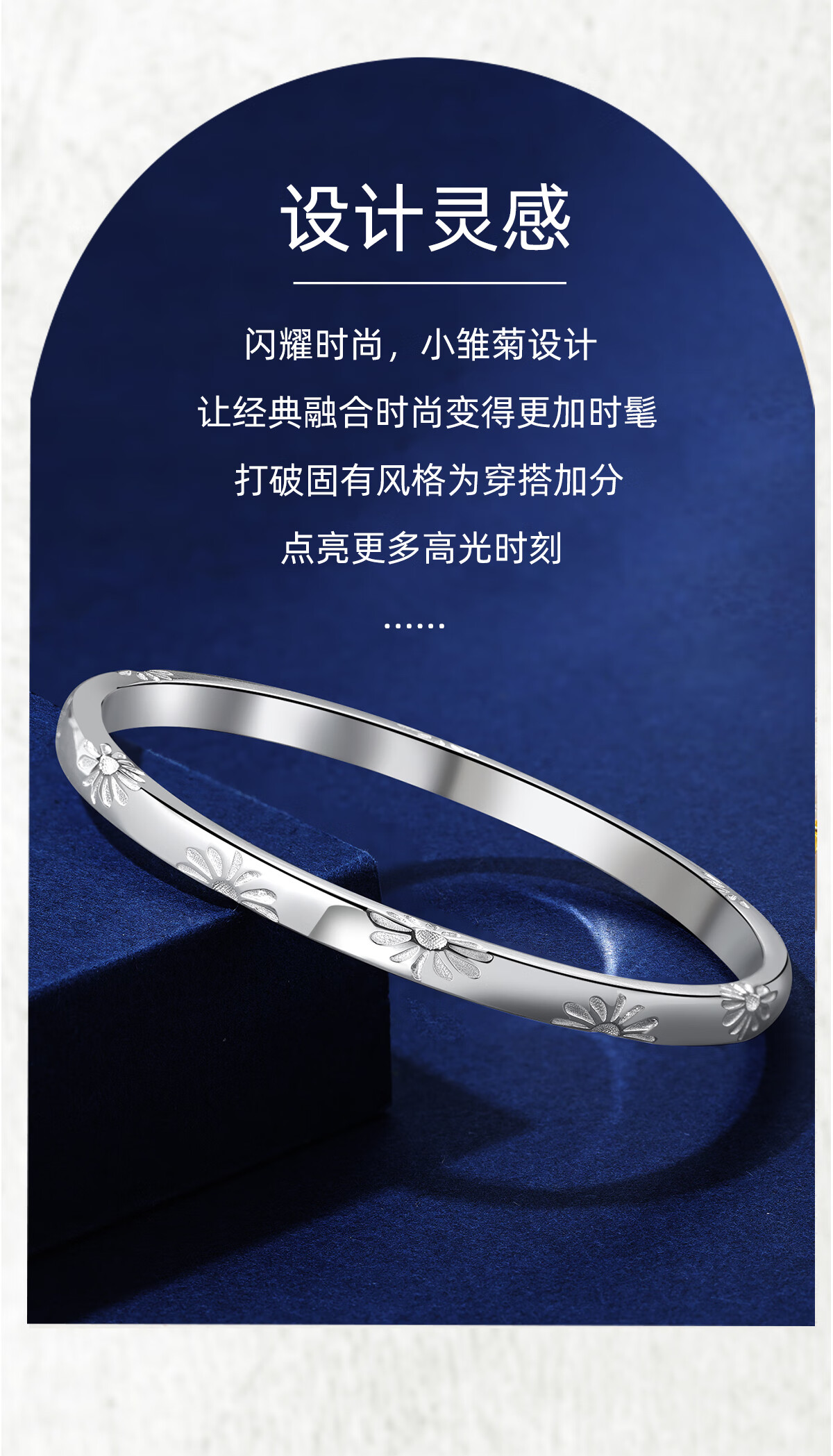 Jin Duoxi genuine platinum bracelet for women pt950 white gold bracelet small daisy bracelet pure platinum solid bracelet for women Qixi Festival, perfect circle 52, width about 4.4mm, weight about 23.45 grams