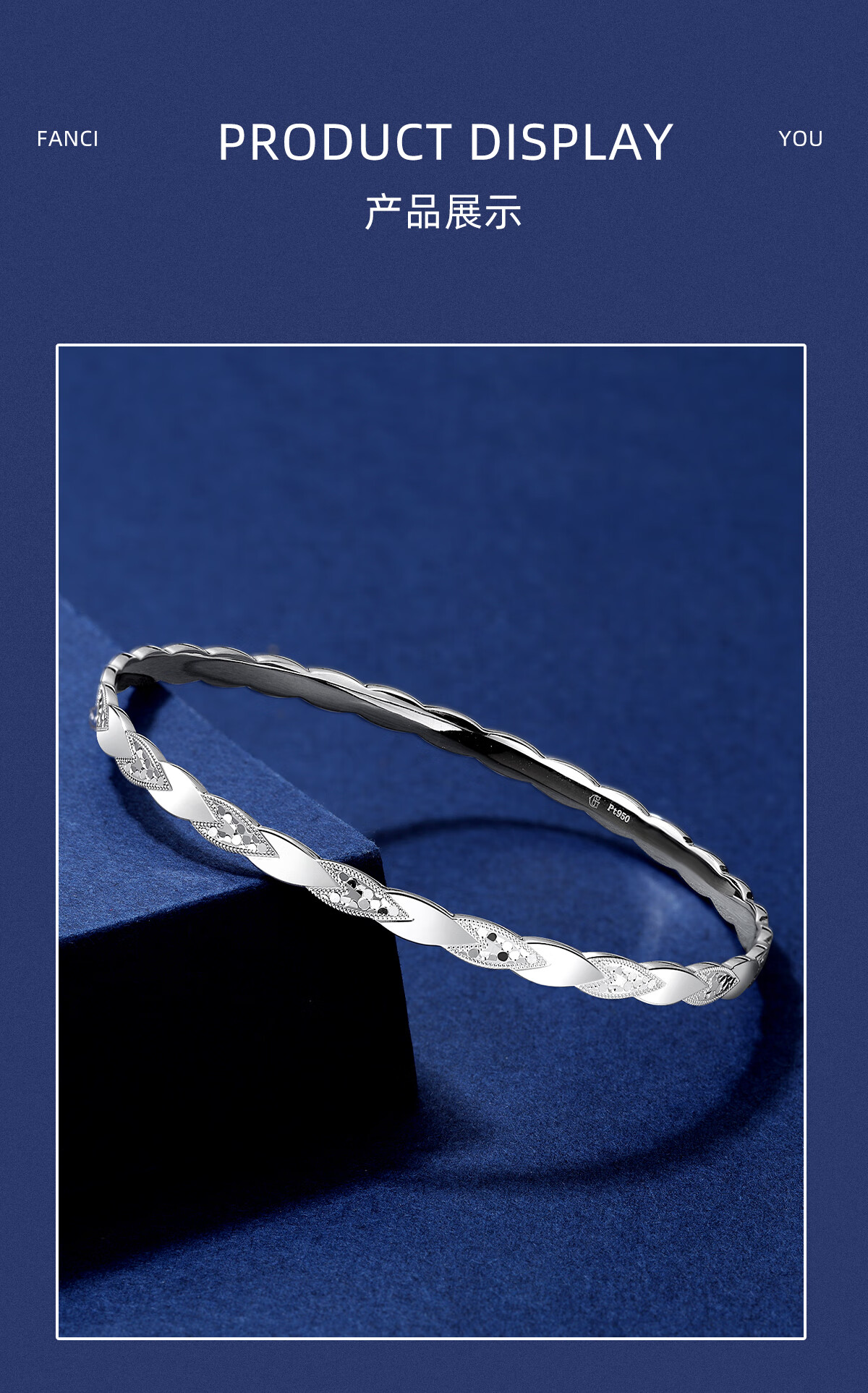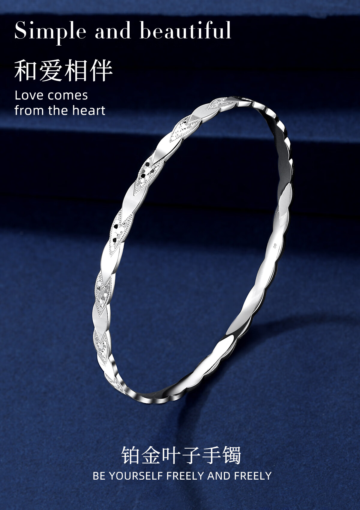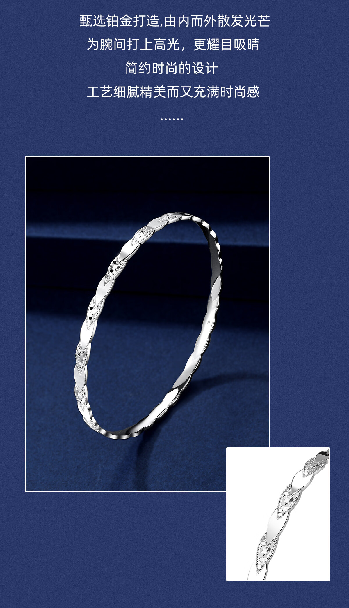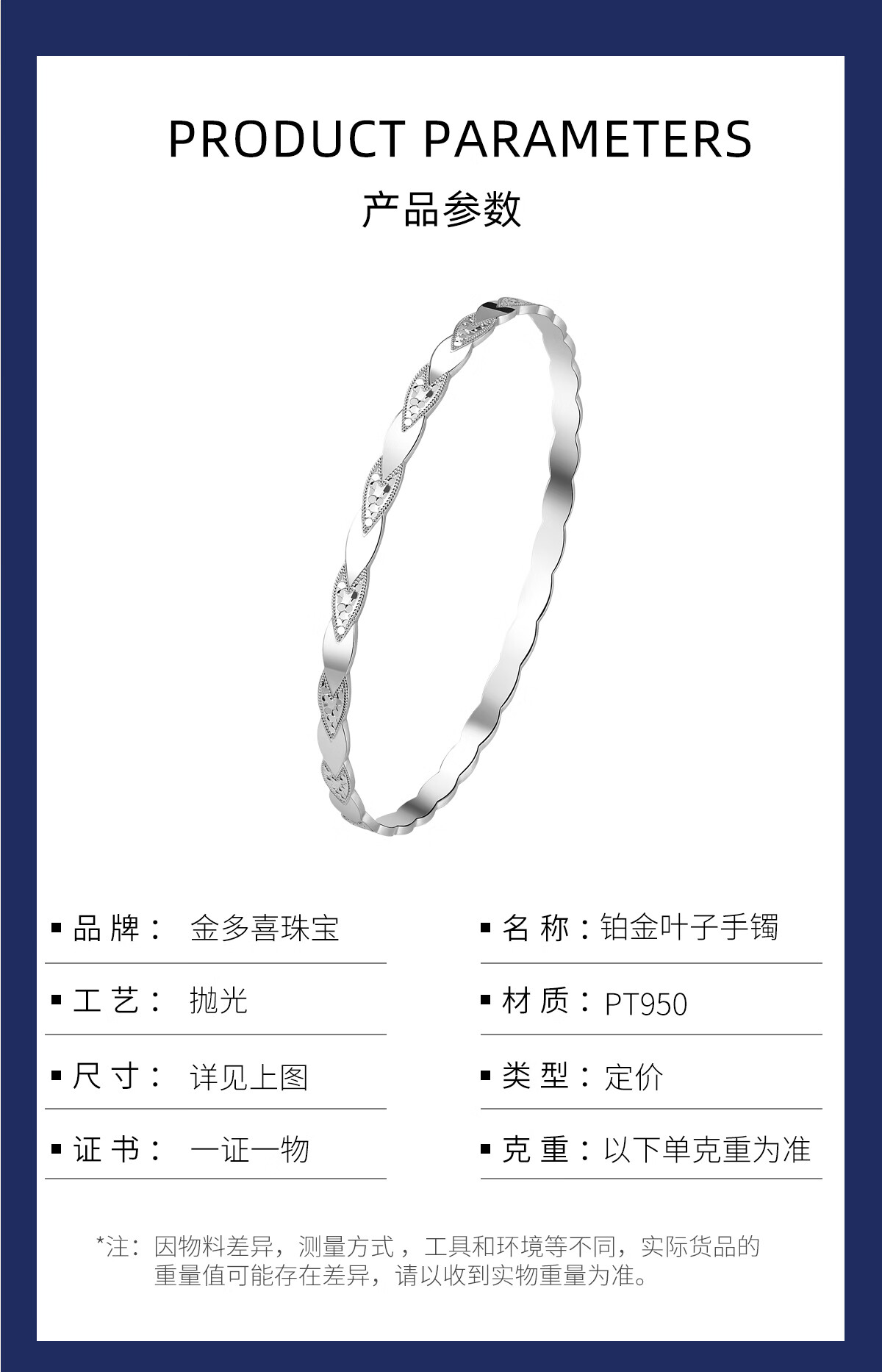 Jinduoxi platinum bracelet for women pt950 platinum bracelet for women pure platinum leaf crushed ice gold branch jade leaf bracelet gift perfect circle 52 circles mouth width about 4.4mm weight about 23.45 grams