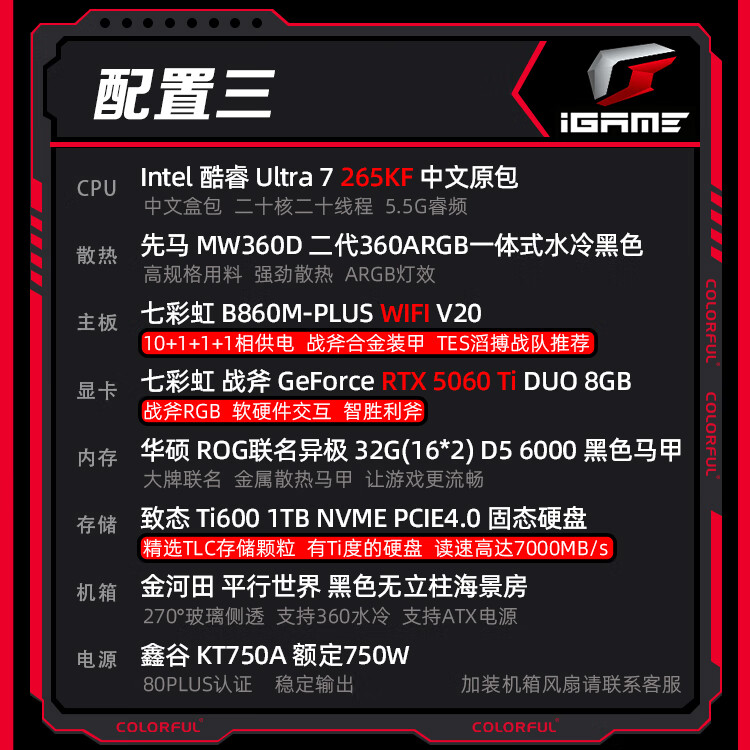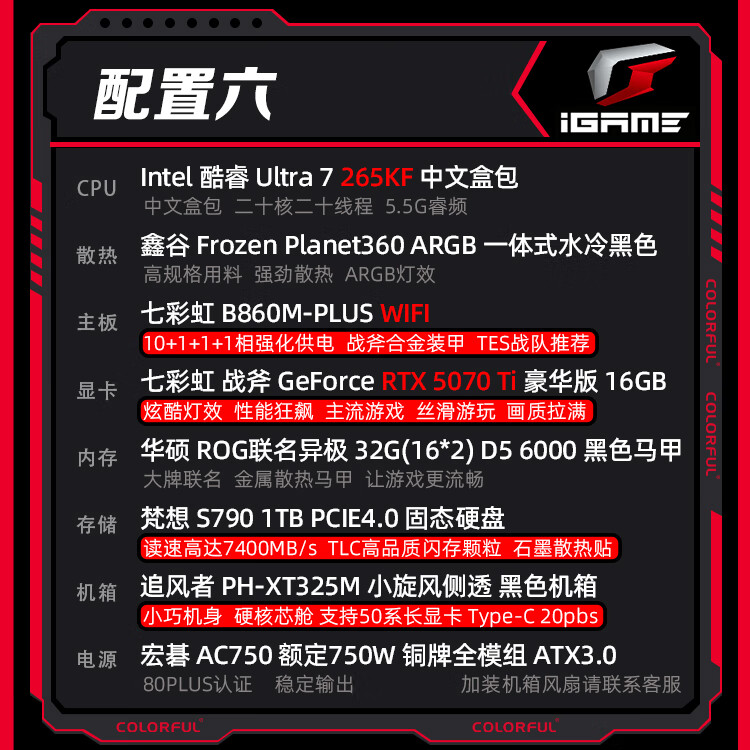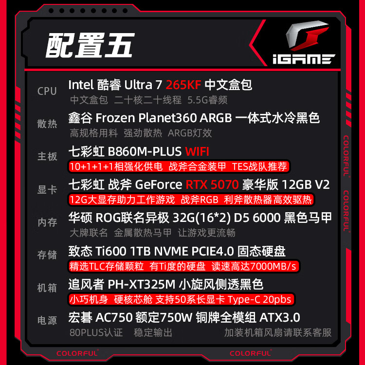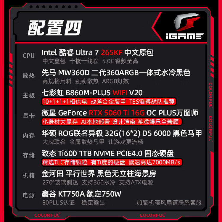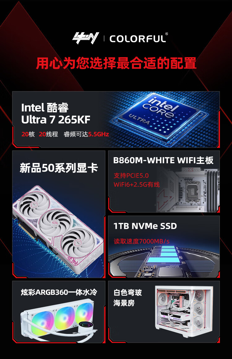 Colorful Ultra 7 265KF/RTX5060Ti 5070 5070Ti 5080 design gaming desktop computer host assembly computer deepseek local deployment with two U7 265KF+ no graphics card host