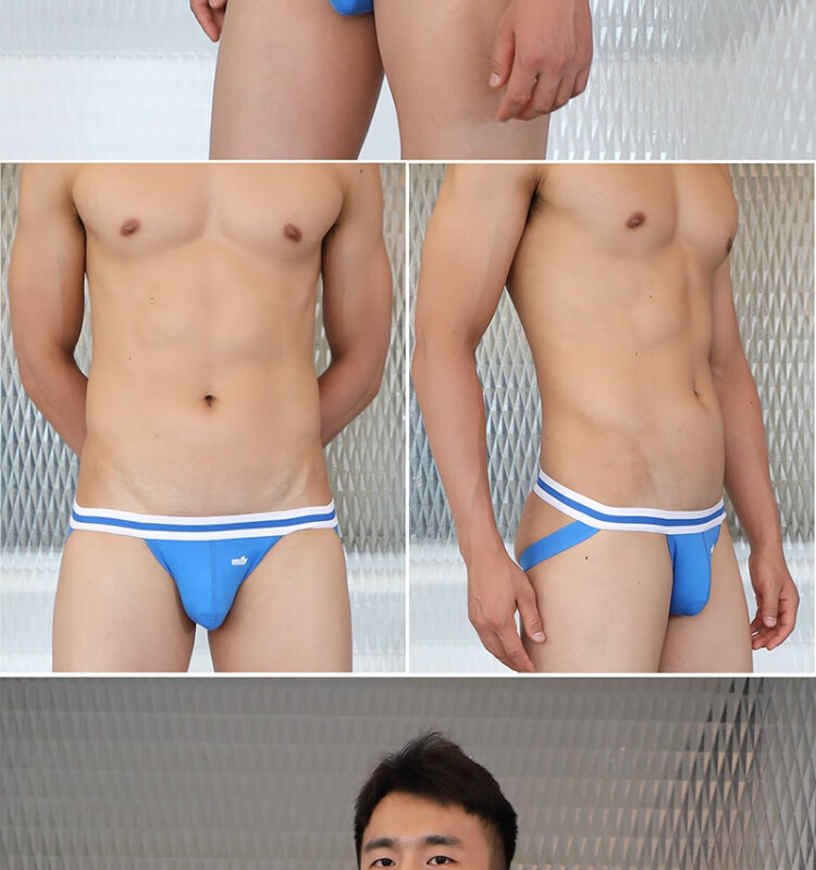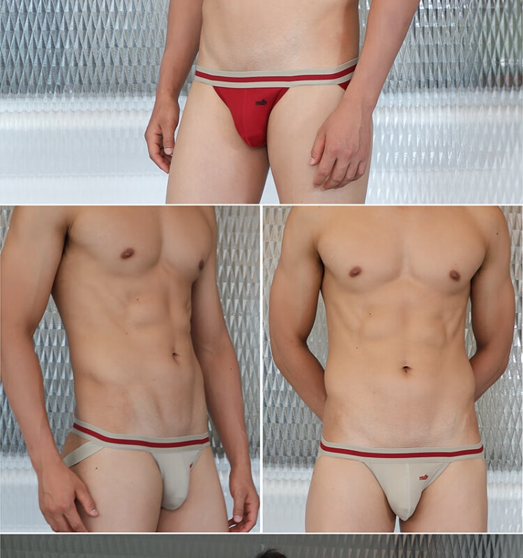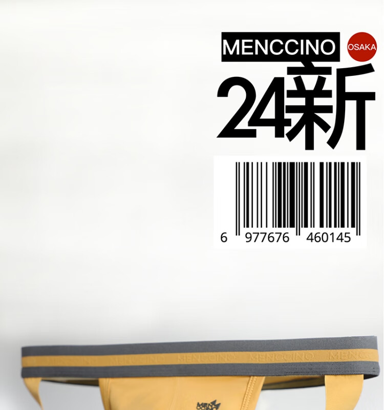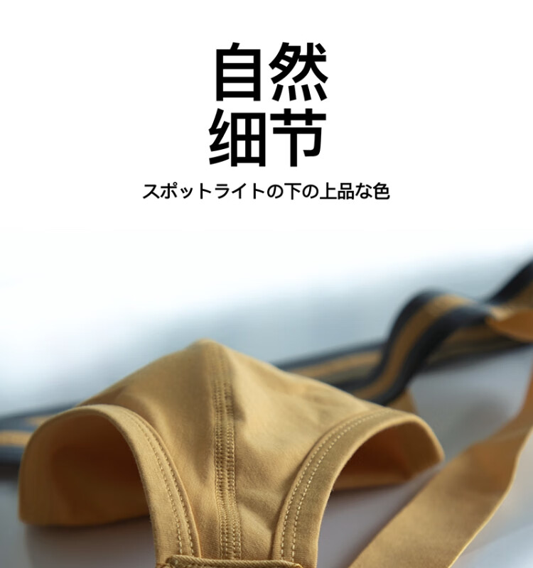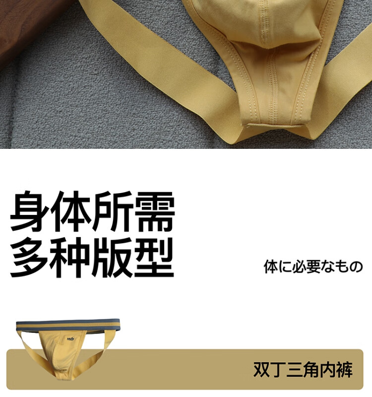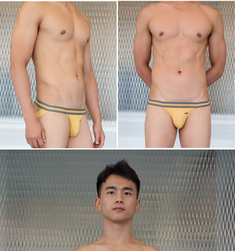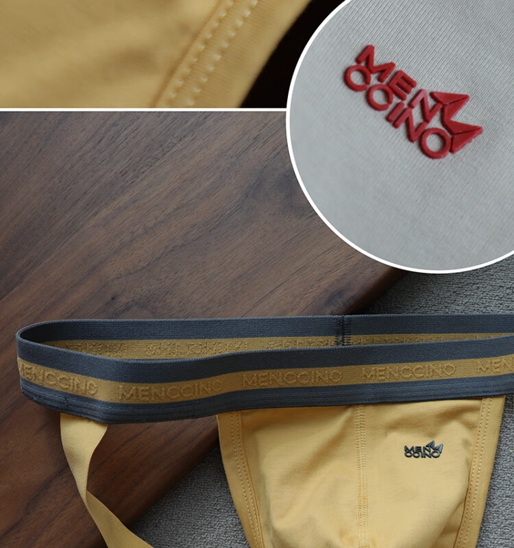 MENCCINO Budoji men's double-strap thong bare buttocks underwear breathable sweat-absorbent U-convex sexy low-waisted men Mango yellow L 175/85