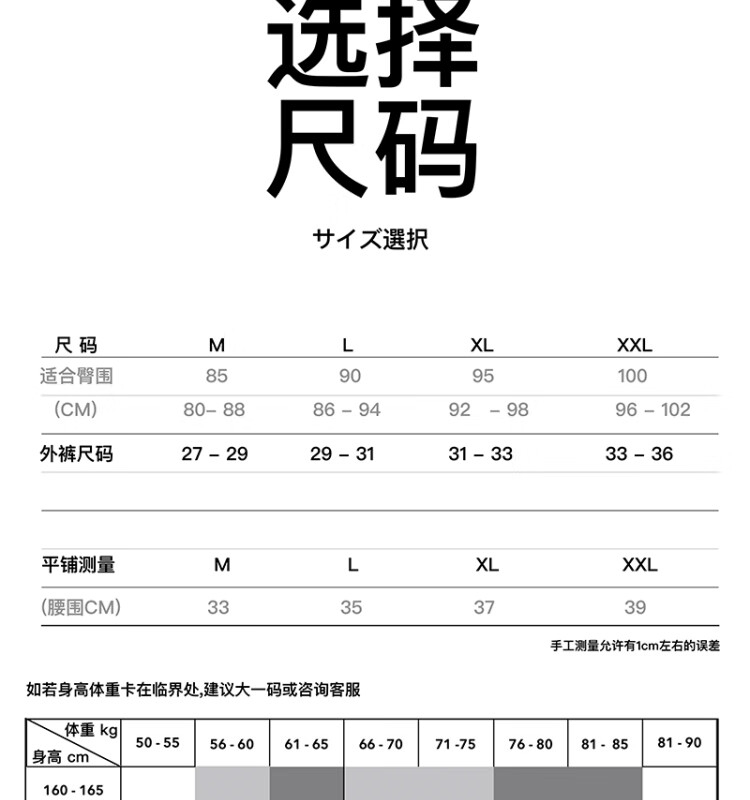 China (cm) 160-165/84-86 165-170 / 88-90 167-172 / 92-96 168-173 / 98-102 170-176 / 106-110
