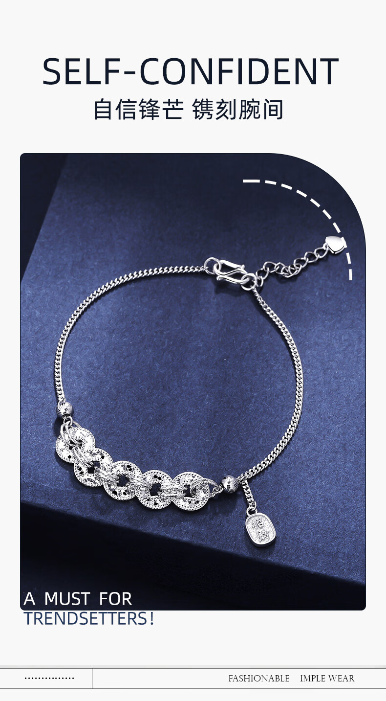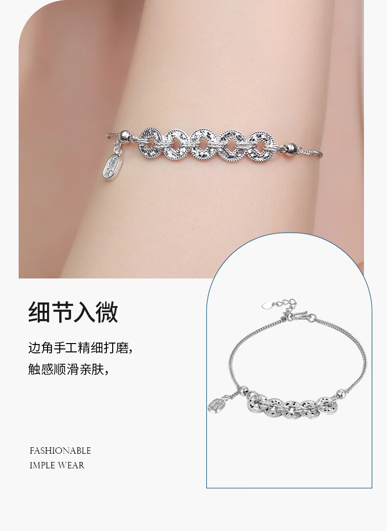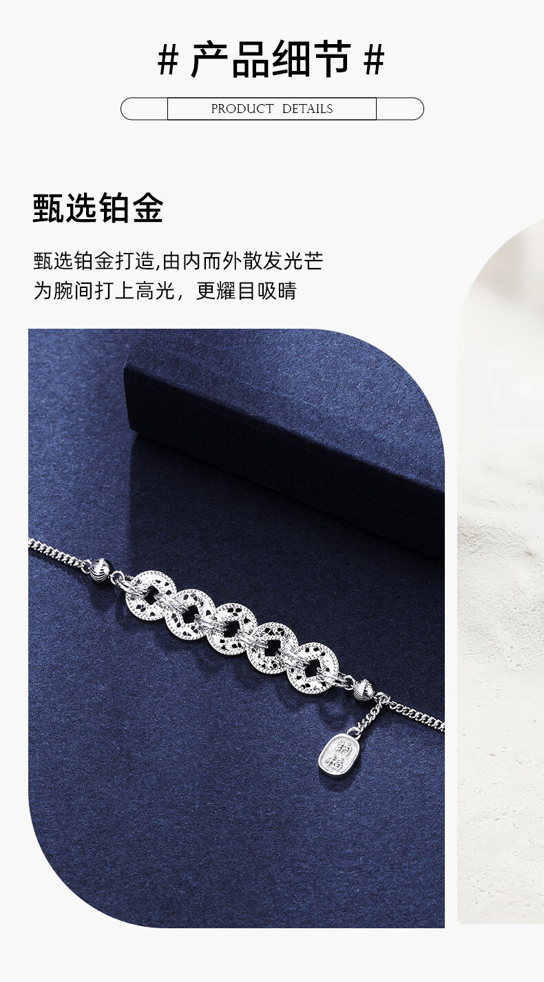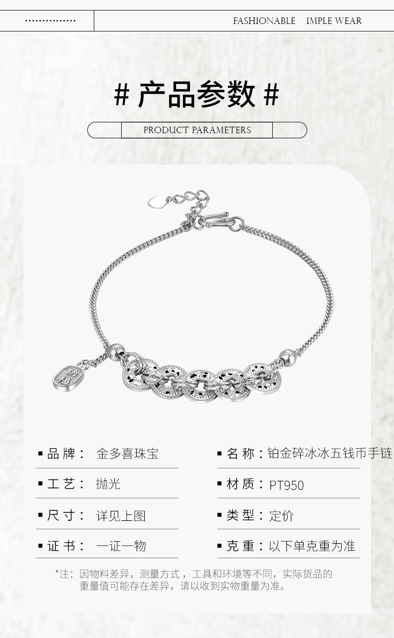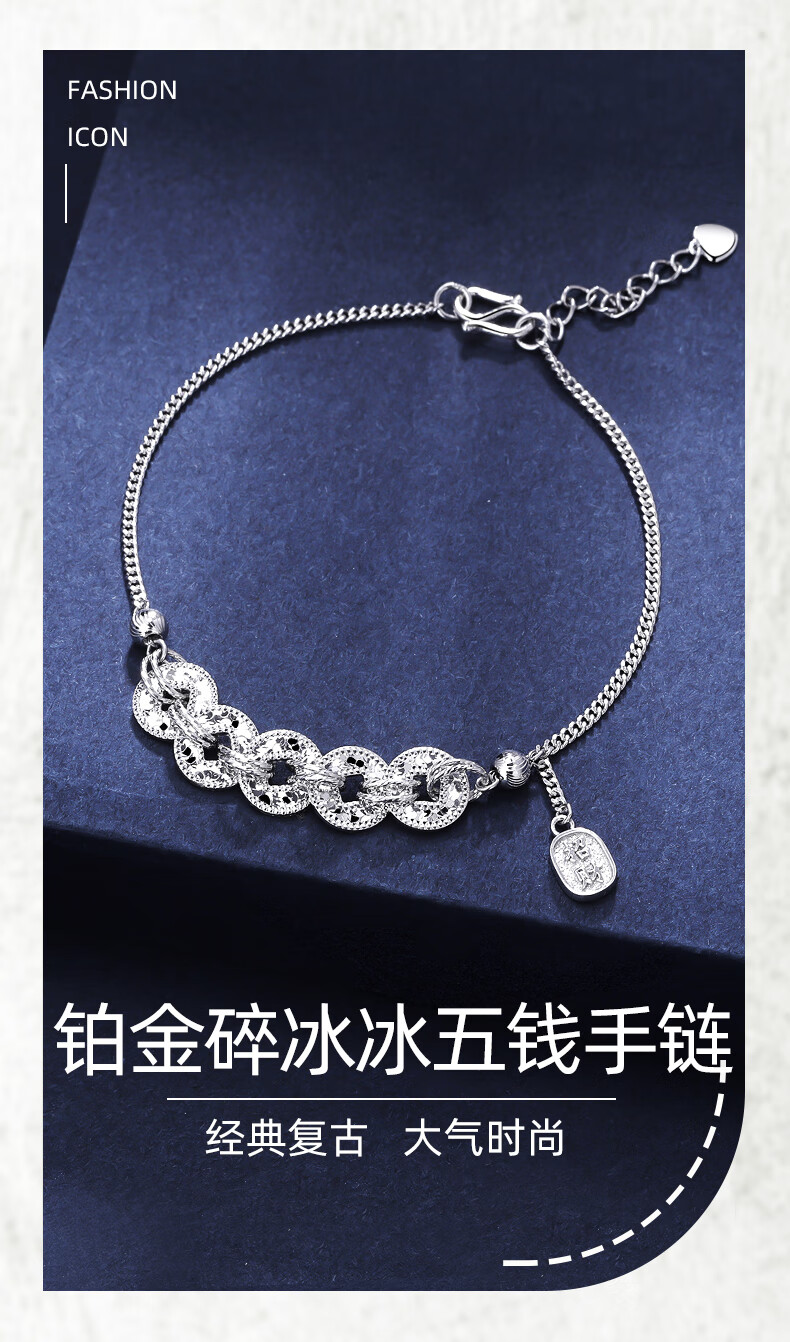 Jin Duoxi Pt950 platinum bracelet women's platinum bracelet authentic 950 platinum bracelet crushed ice ice five coin bracelet about 16.5+2cm weighs about 6.5-6.7 grams with tag