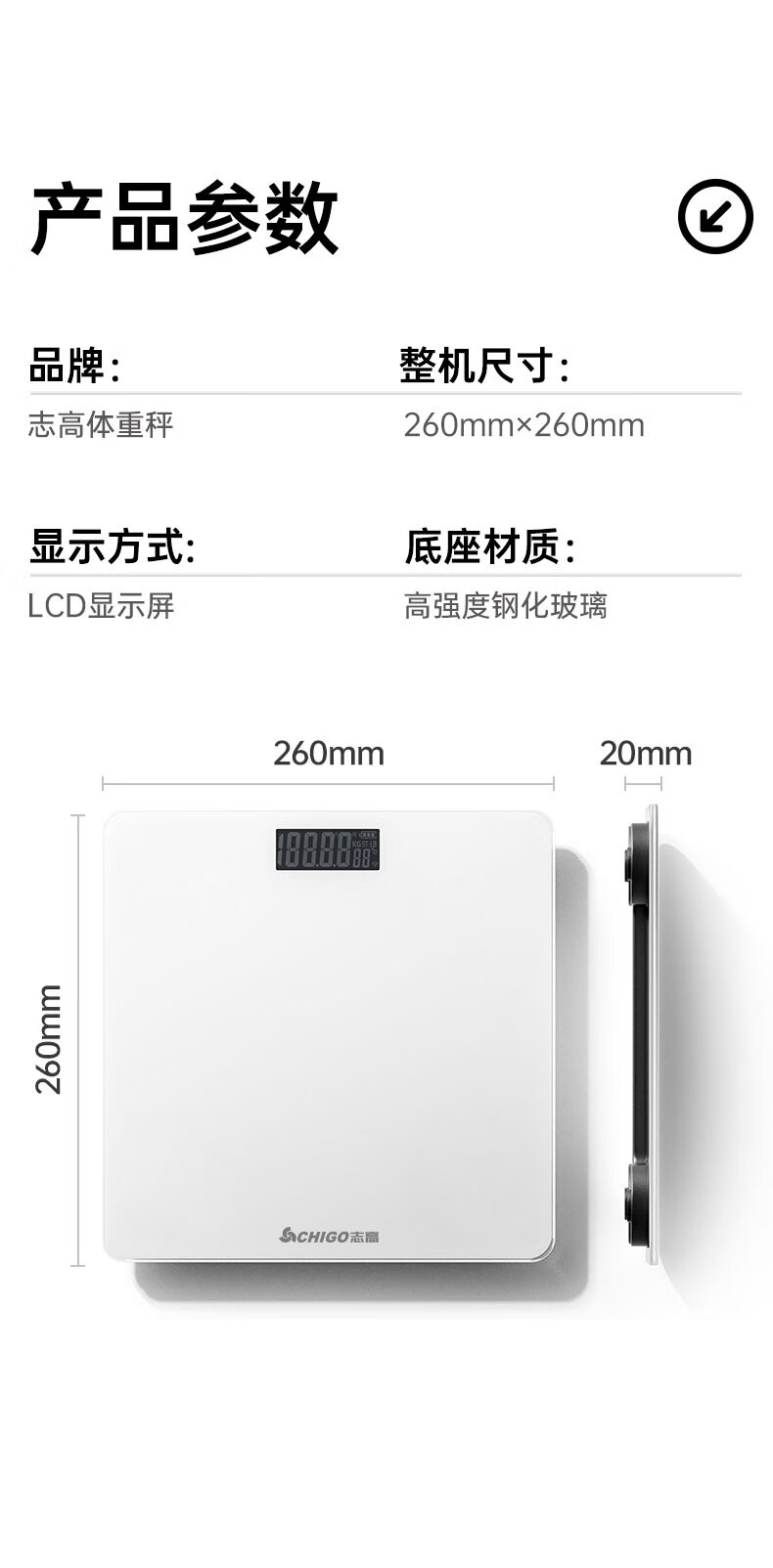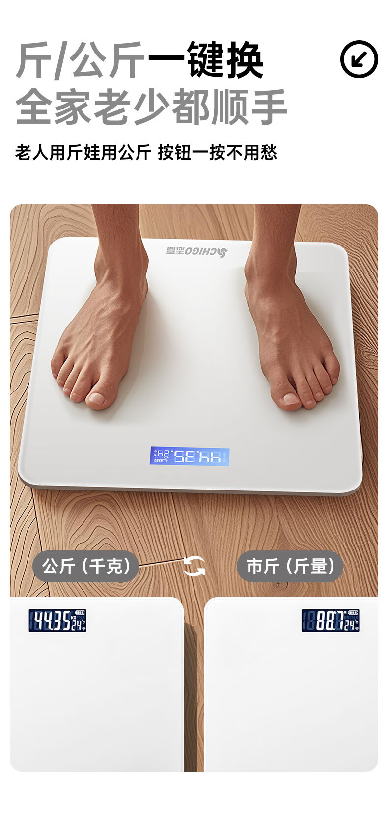 CHIGO weight scale electronic scale accurate human body scale home adult weighing scale weight loss special electronic scale smart weighing scale black rechargeable model