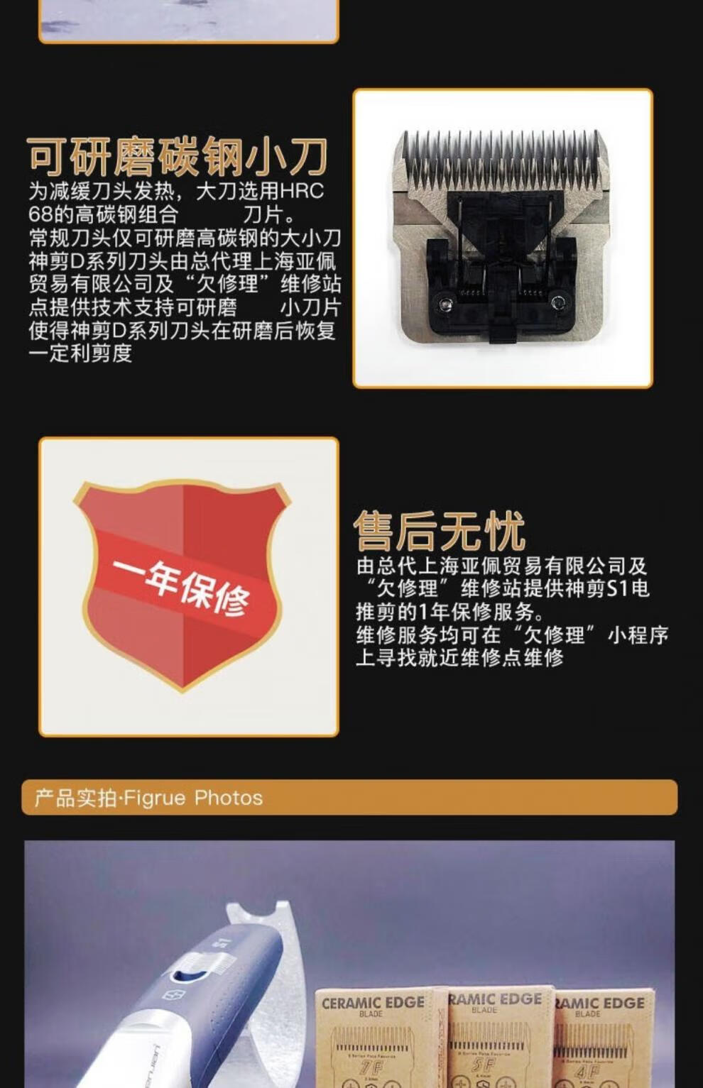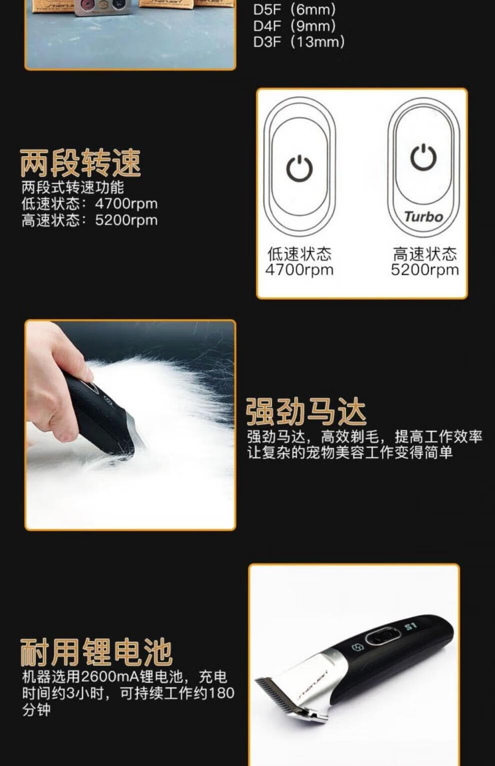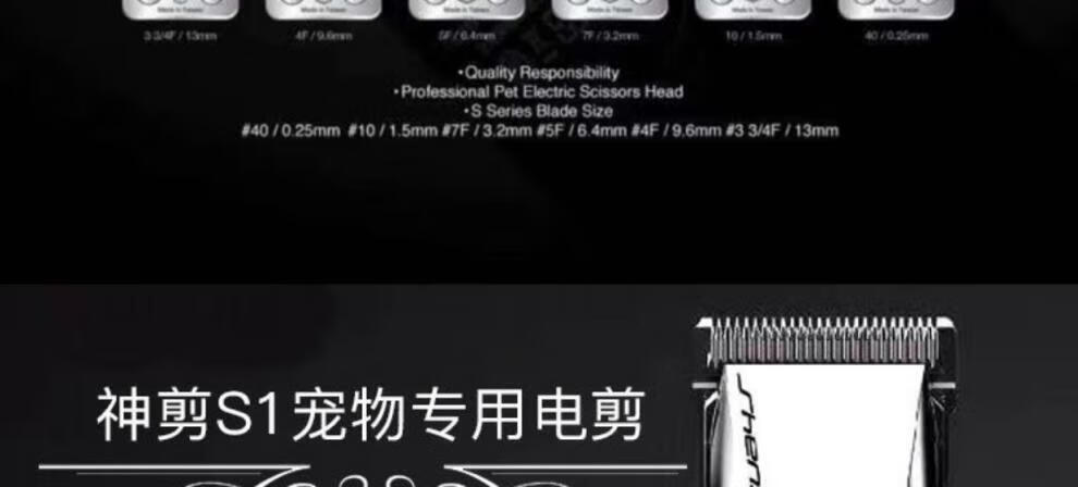 Shen Sheng S1 pet shop large electric clipper dog shaver special four-blade hair clipper four-blade (body + 10 + 7F + 5F + 4F) black