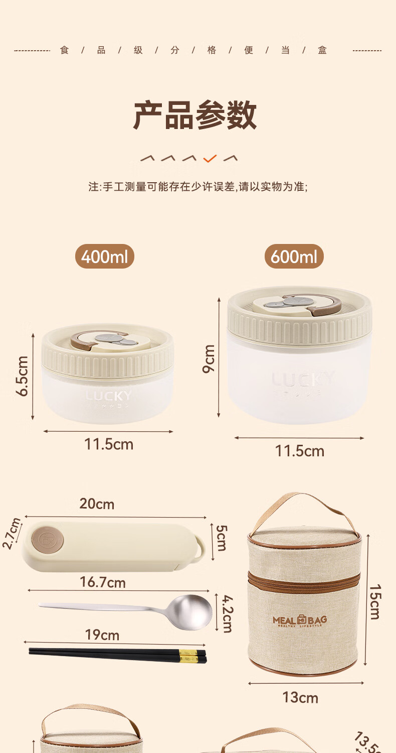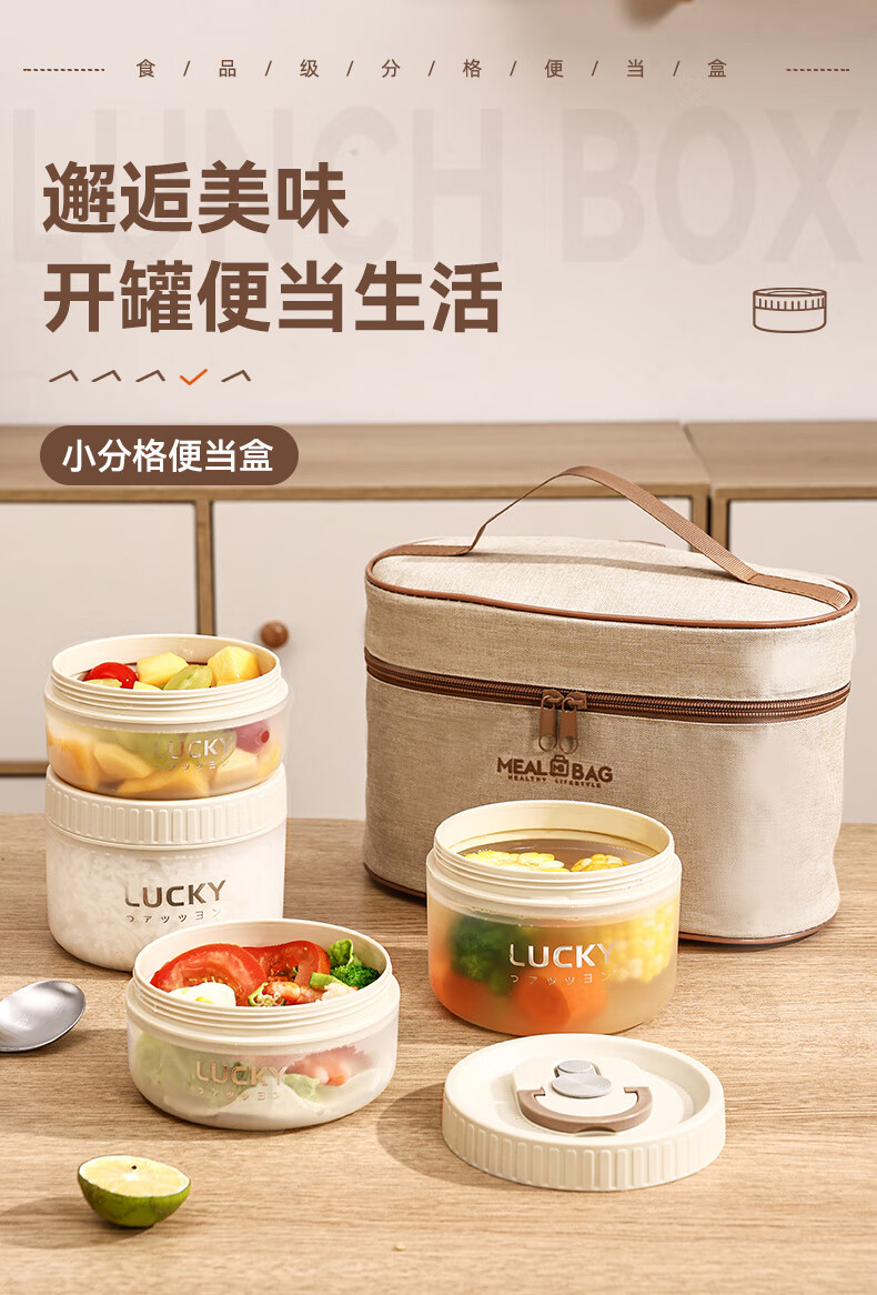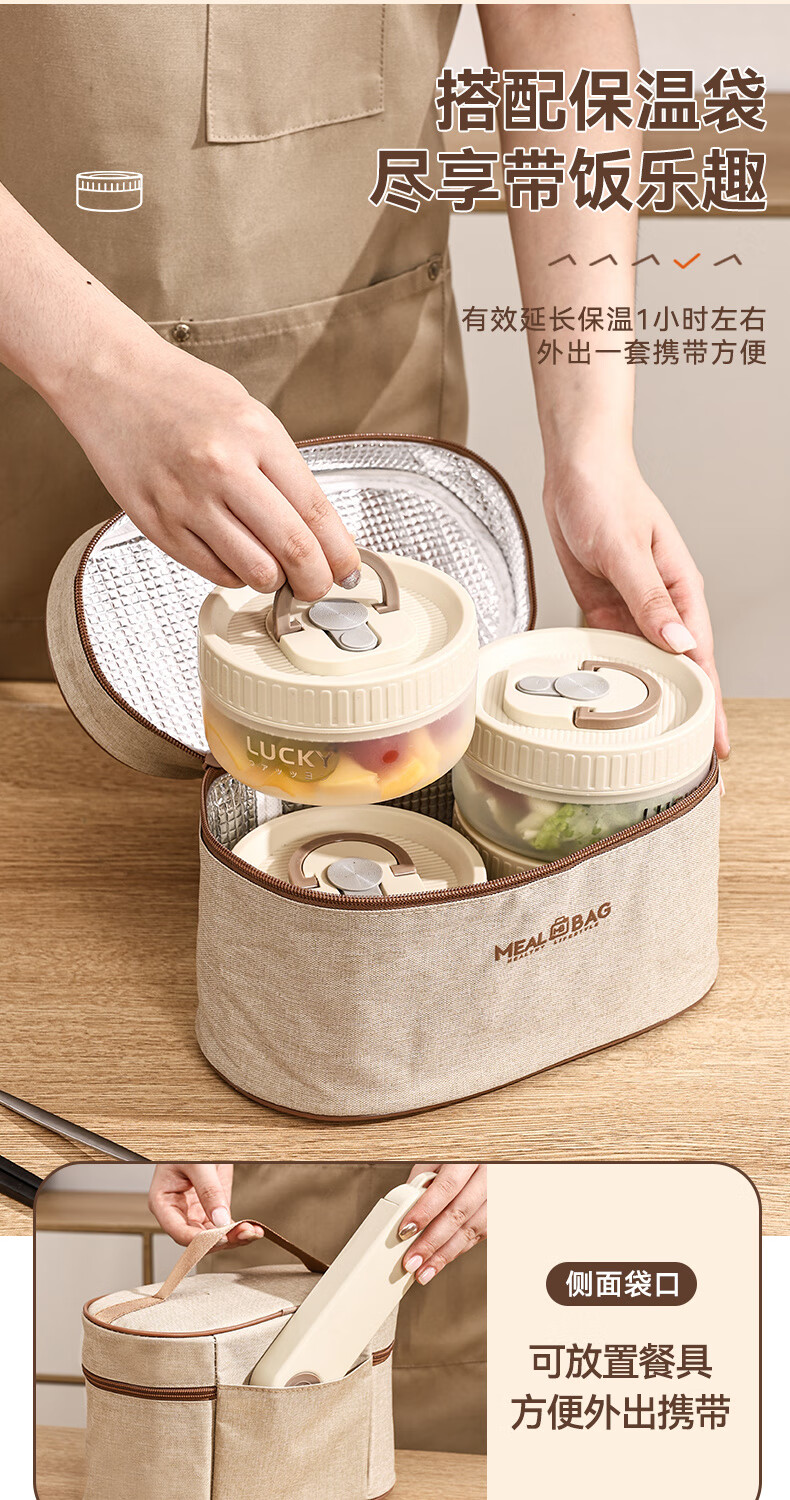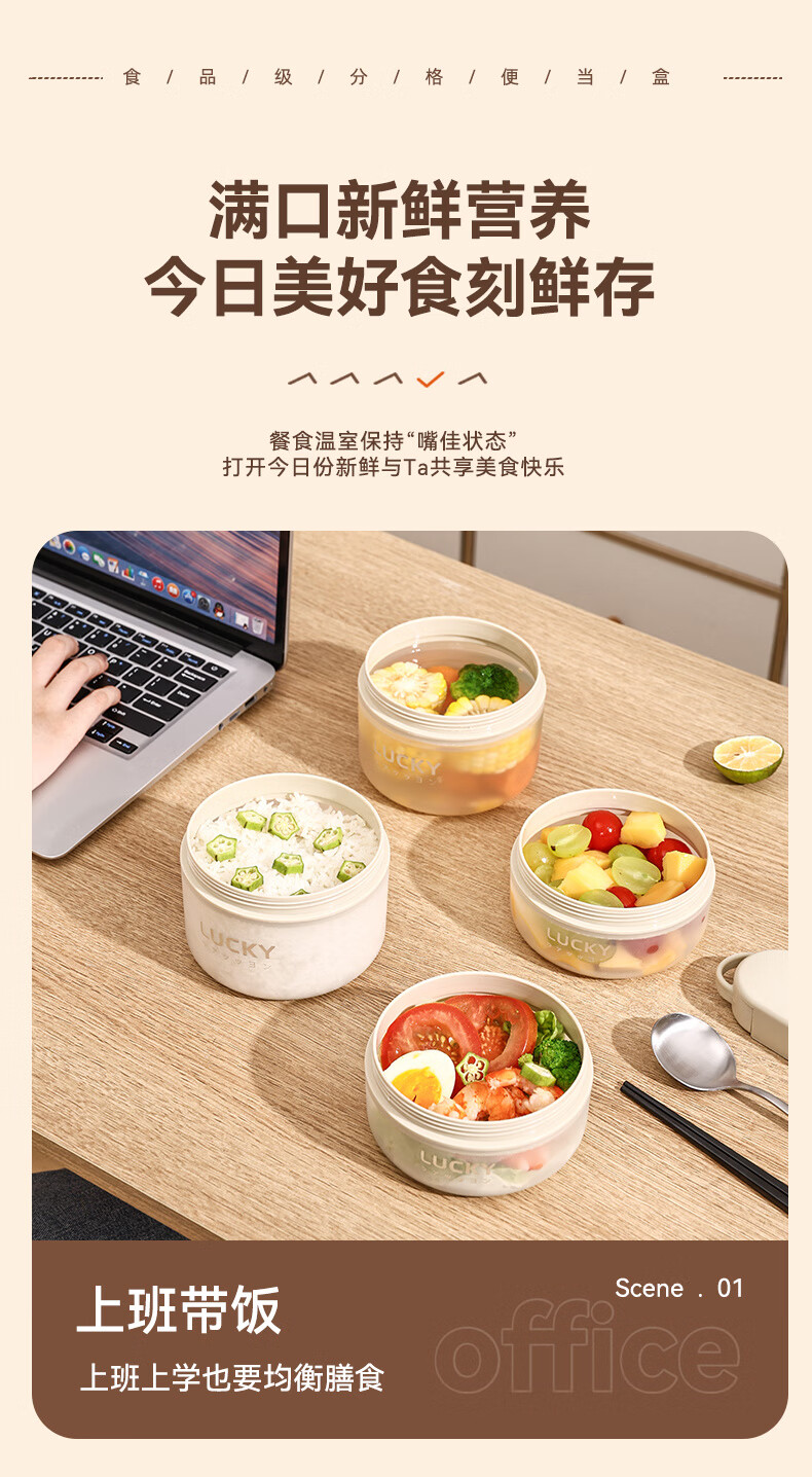 GUIG lunch box lunch box office workers can microwave heating bowl with lid students special lunch box food grade off-white small size 400ml leak-proof