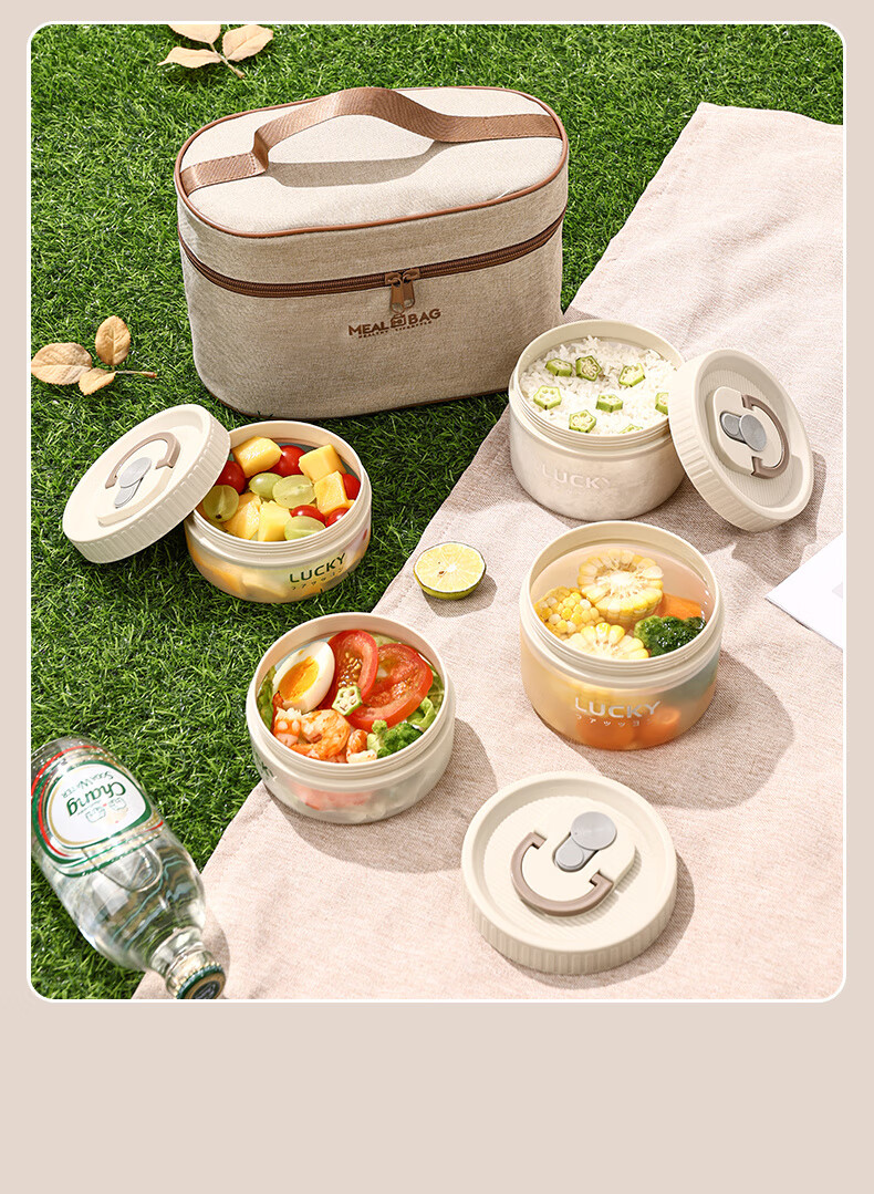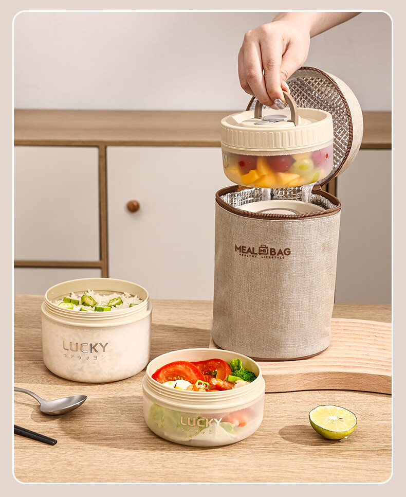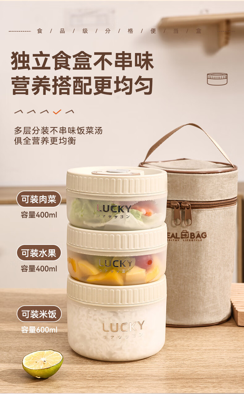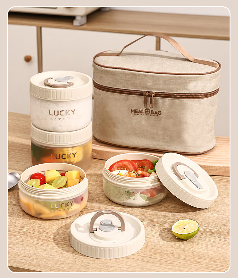GUIG lunch box lunch box office workers can microwave heating bowl with lid students special lunch box food grade off-white small size 400ml leak-proof
