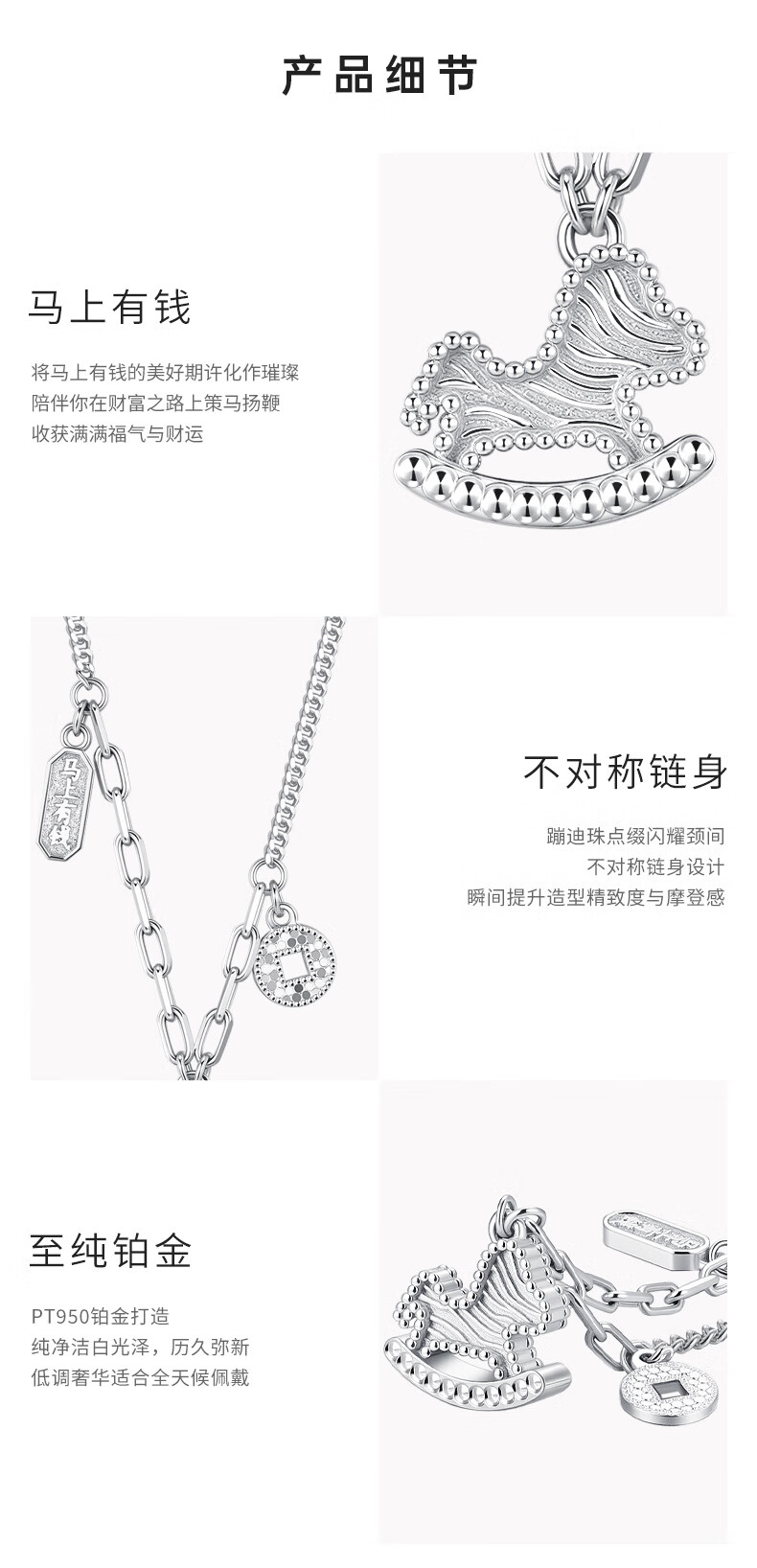 Chao Acer Get Rich Now Platinum Necklace PT950 Clavicle Chain Neck Ornament Year of the Horse and Animal Year Gift Price Chain length is about 40cm+, including labor costs 590 yuan 5.4 grams