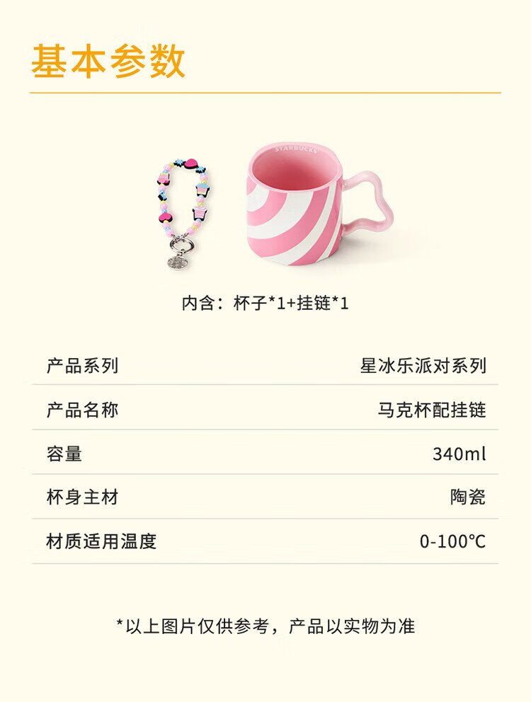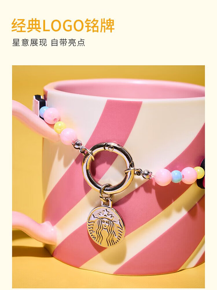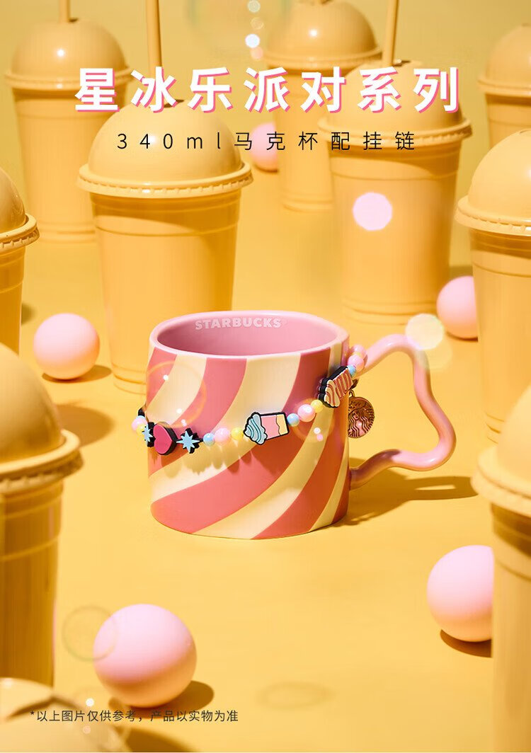 Starbucks Cup Frappuccino Party Series Mug with Chain 340ml Desktop Coffee Cup for Men and Women Gift Mug with Chain 340ml