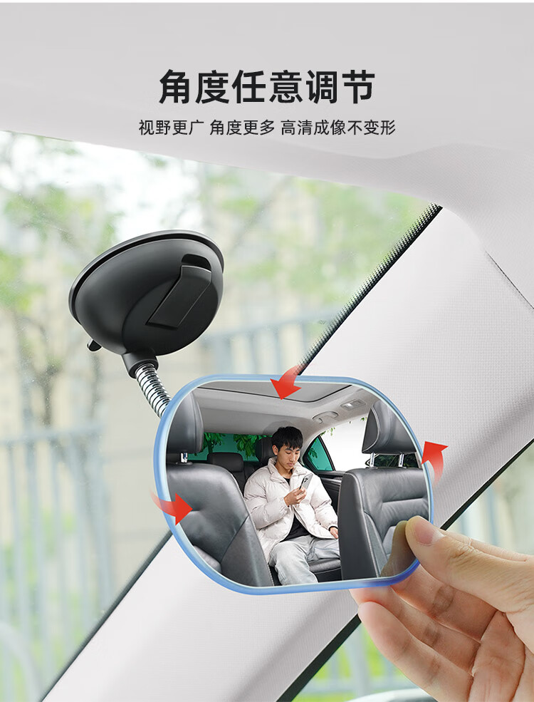 Zuimi German imported quality suction cup car interior rearview mirror large field of view curved reflective reversing mirror rear baby suction cup metal hose holder (oval) 1 piece
