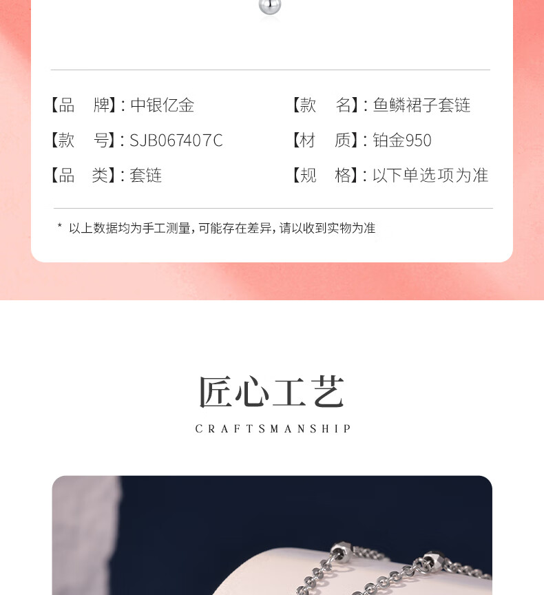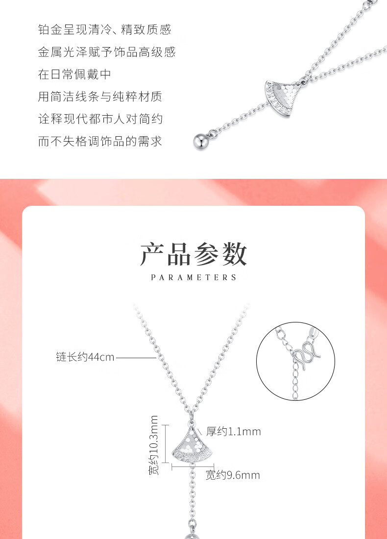 Bank of China Yijin PT950 Crushed Ice Skirt Platinum Pendant Women's Necklace Platinum Chain Set Birthday and Valentine's Day Gift for Girlfriend Crushed Ice Skirt Set Chain Gold Weight Approximately 5.3g