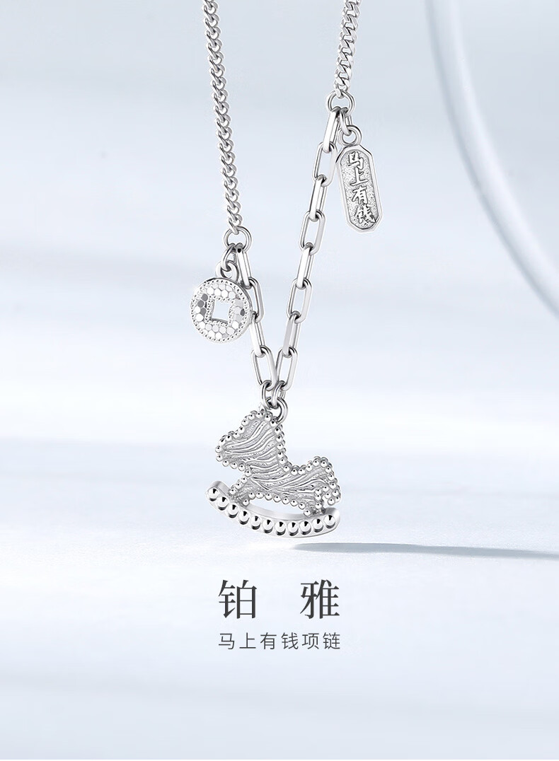Chao Acer Platinum Necklace for Women, Get Rich Now, PT950 Set of Chains, Clavicle Chain Neck Jewelry Gift, Priced at RMB 590, 5.6g, Chain Length: Approximately 40cm + Extension Chain