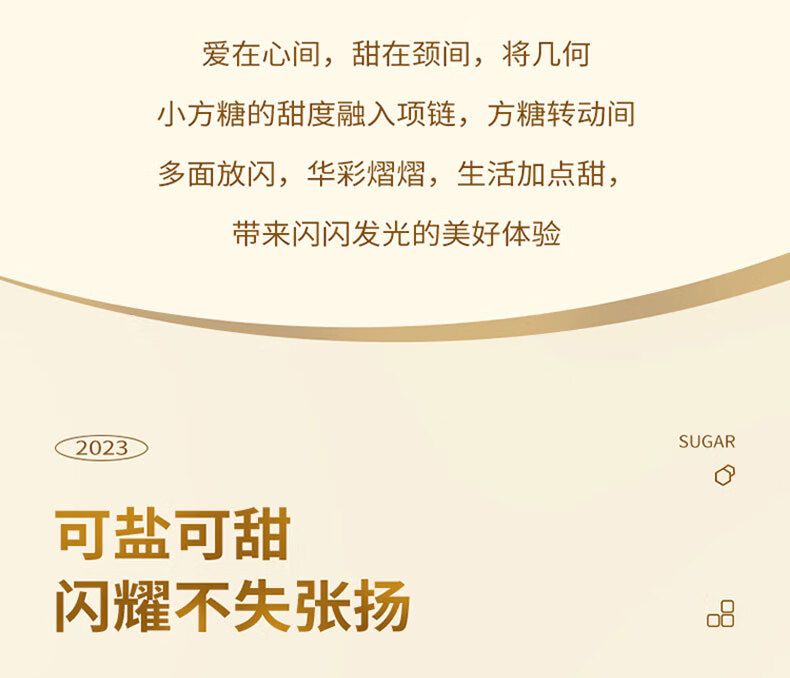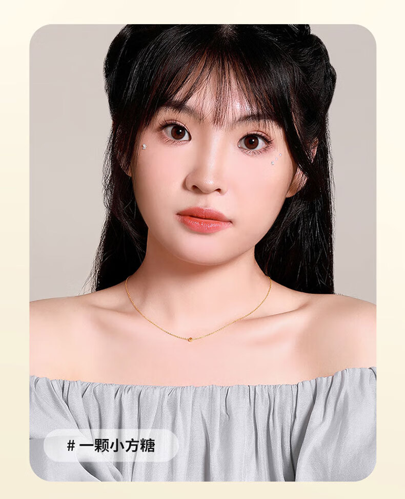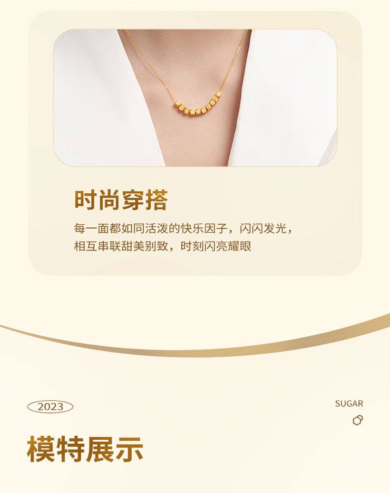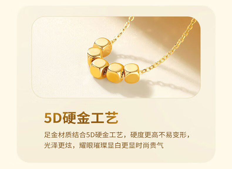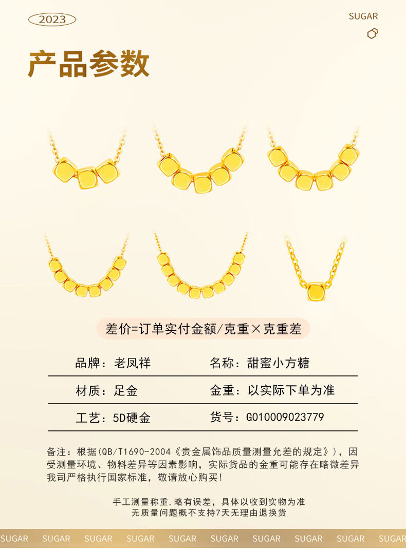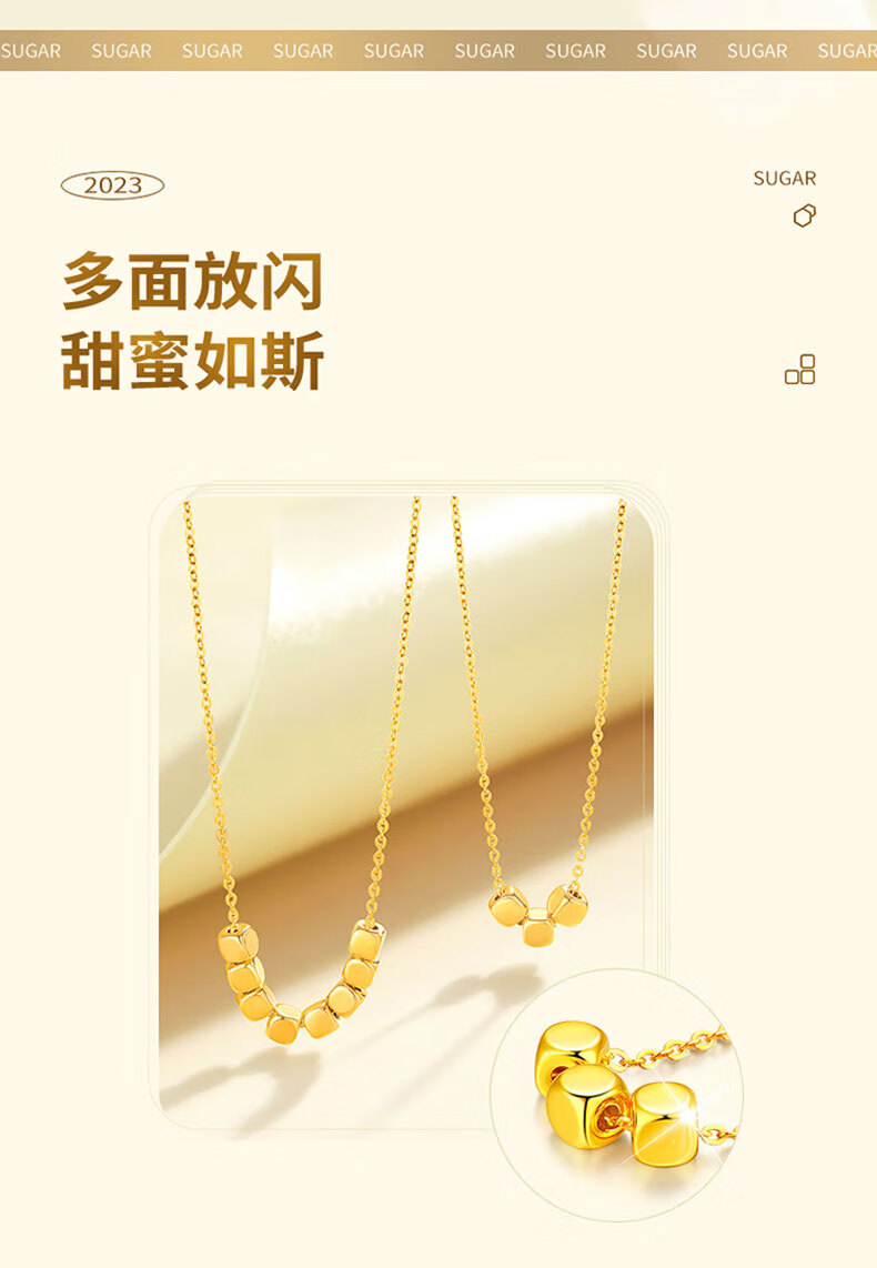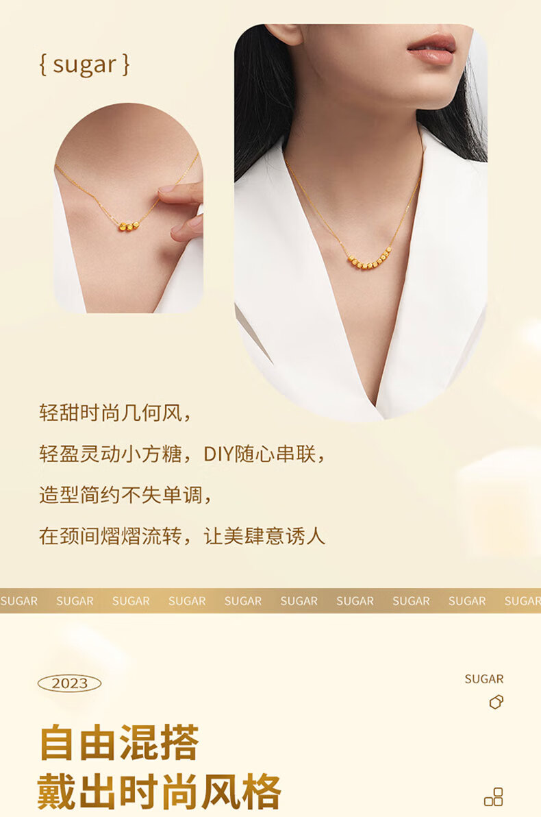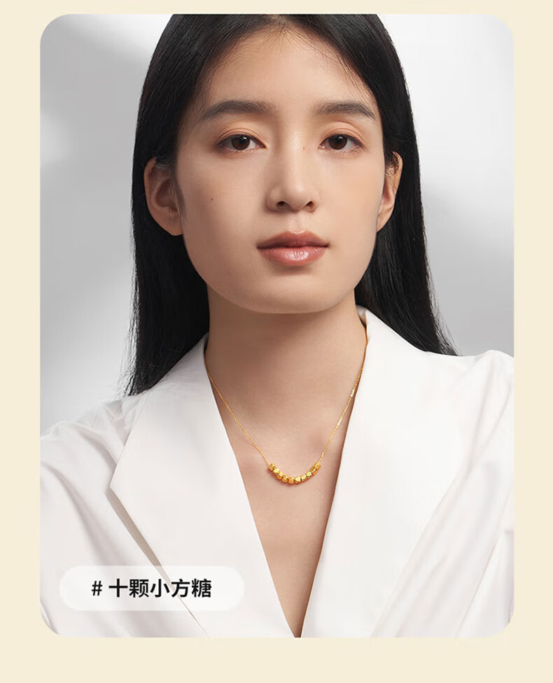 Lao Fengxiang gold small sugar cube pendant women's necklace pure gold versatile clavicle chain Valentine's Day birthday gift for girlfriend and lover three small sugar cube pendants with S925 silver chain about 0.15g