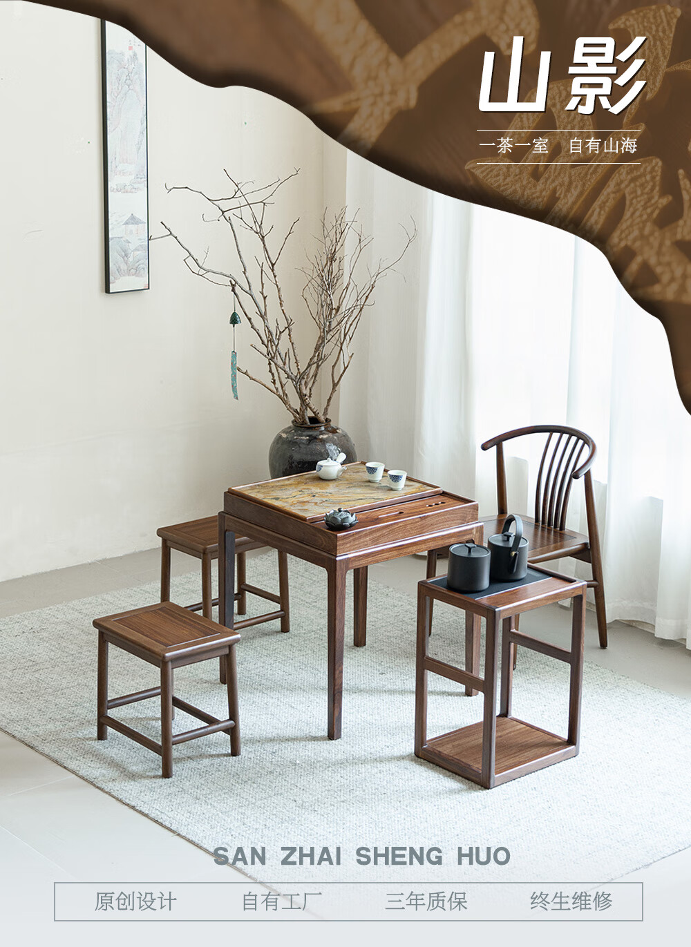 Miyake Living tea table walnut solid wood 2025 new small tea making family balcony tea table and chairs complete set single table 66/66*72