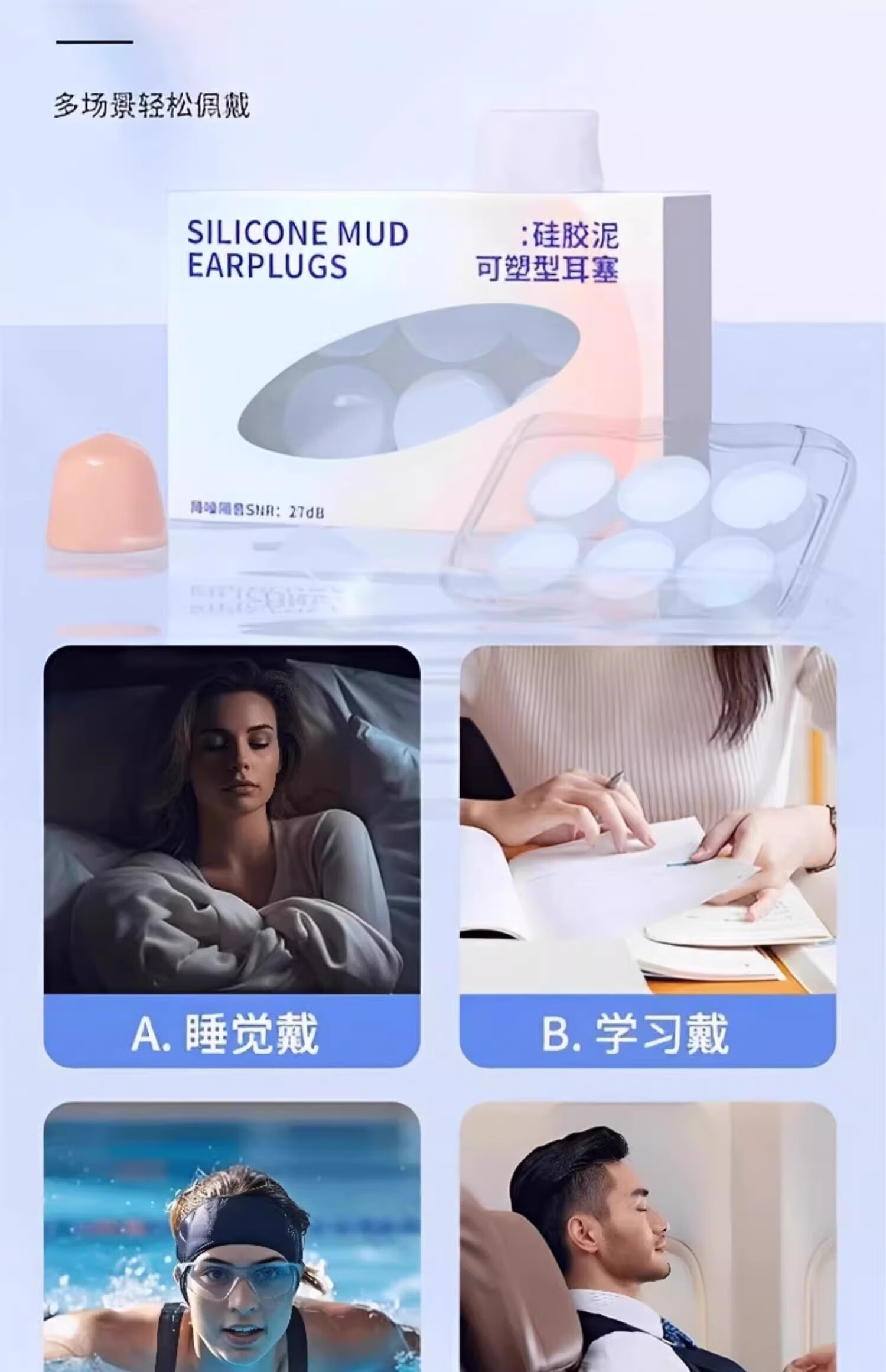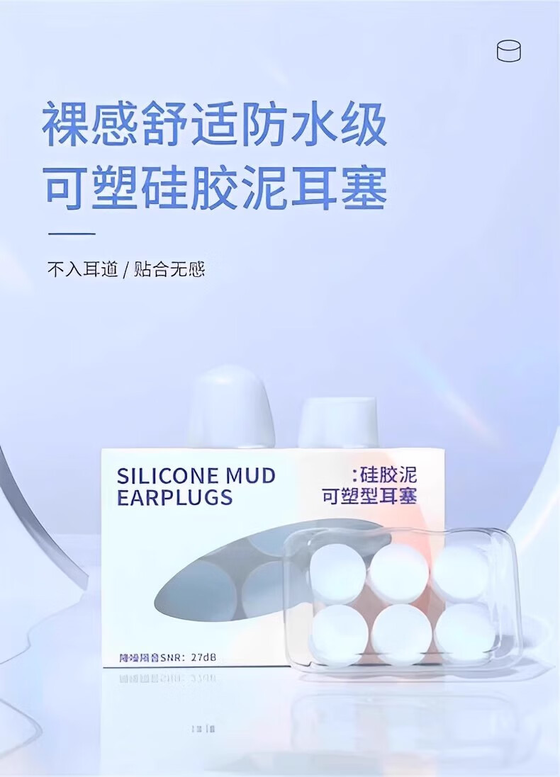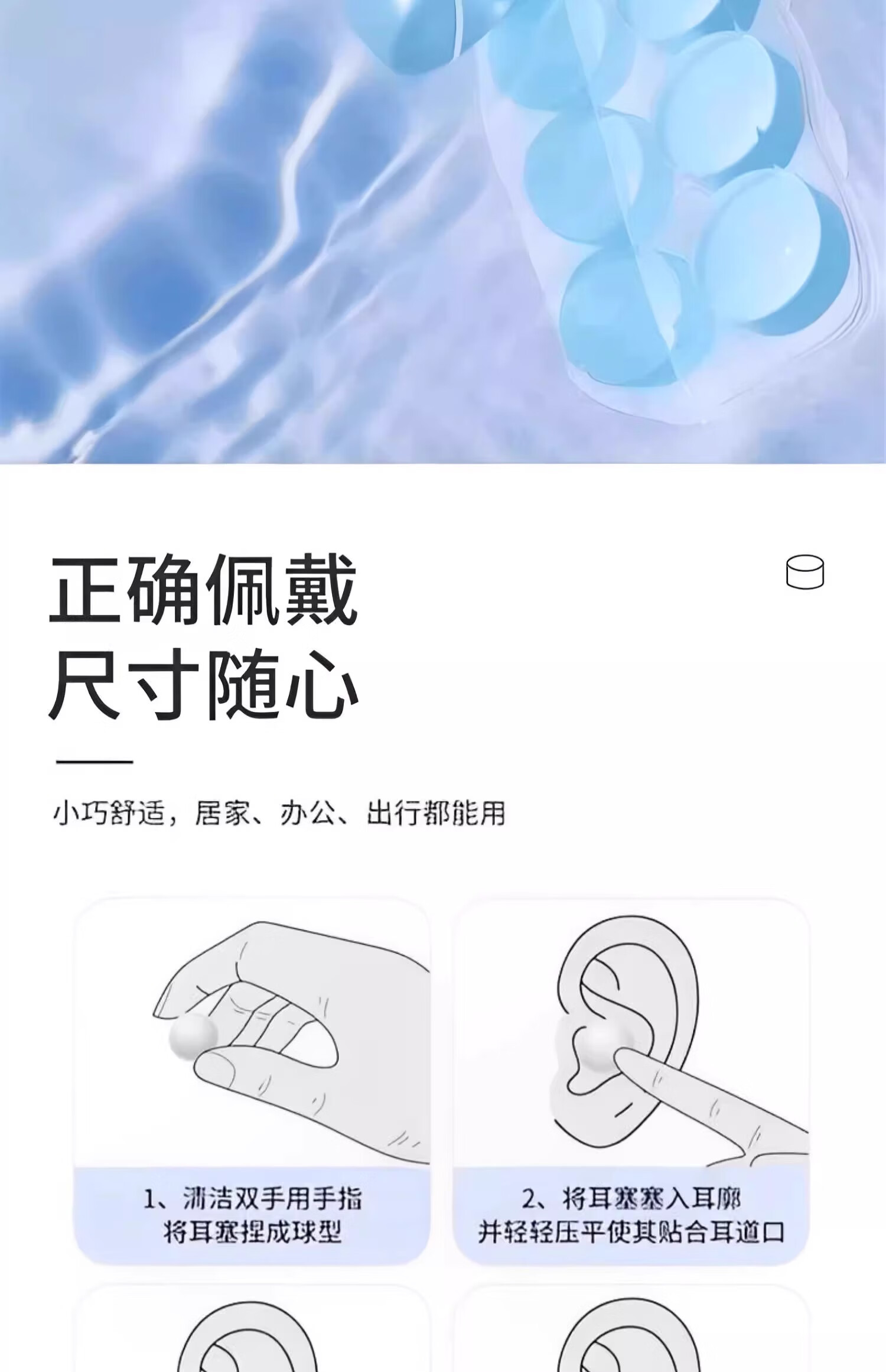 Swimming silicone earplugs are waterproof, professional to prevent otitis media, children and adults prevent water ingress, summer water play artifact, shampoo and ear protection, waterproof earplugs, high transparent blue, 3 pairs of 6 pieces, universal for adults and children, free shaping