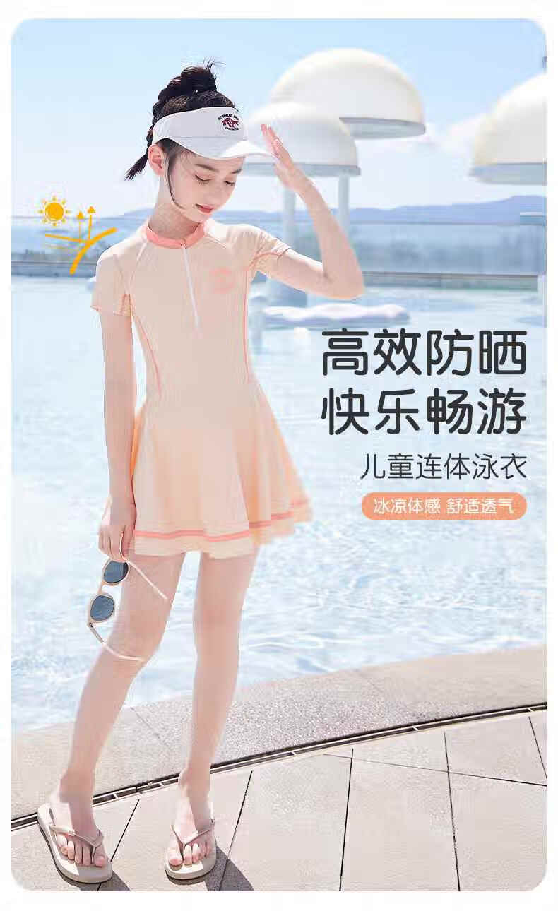 京悠雨儿童泳衣女孩2025新款保守连体中大童宝宝训练女童游泳衣 黑色【泳镜两件套】 170 L身高100-110cm体重25-