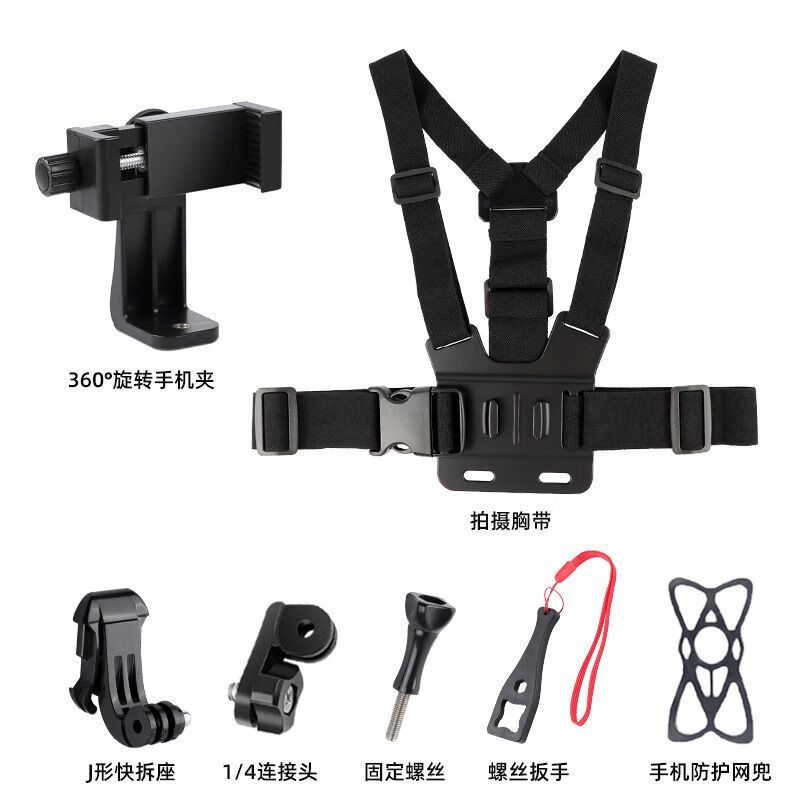 FANCYCHIC snake-type universal 360-angle first-view mobile phone camera fixed shooting bracket chest strap outdoor live fishing chest strap set + 360 mobile phone clip + universal snake arm + remote control