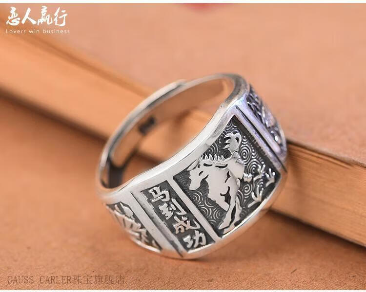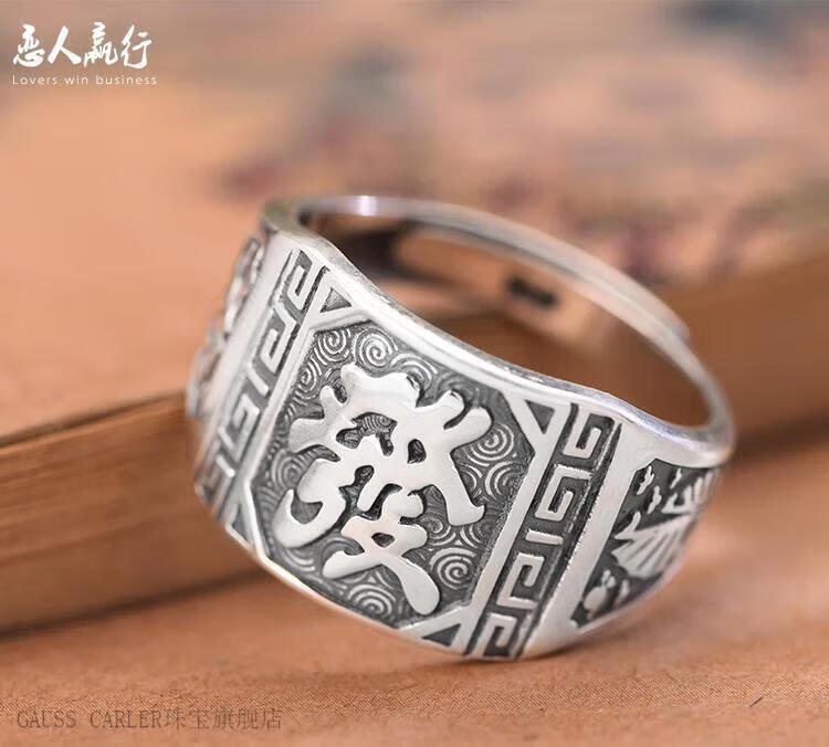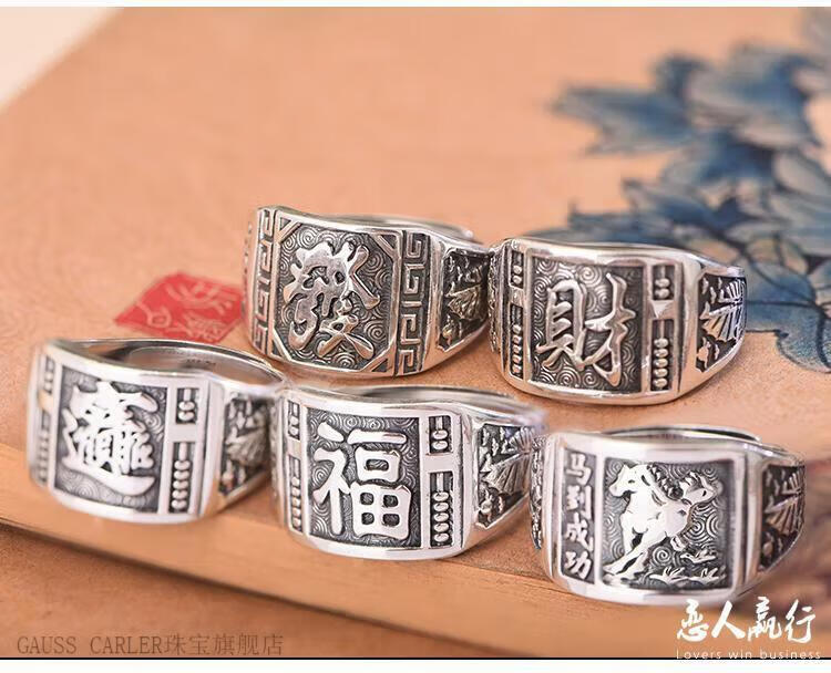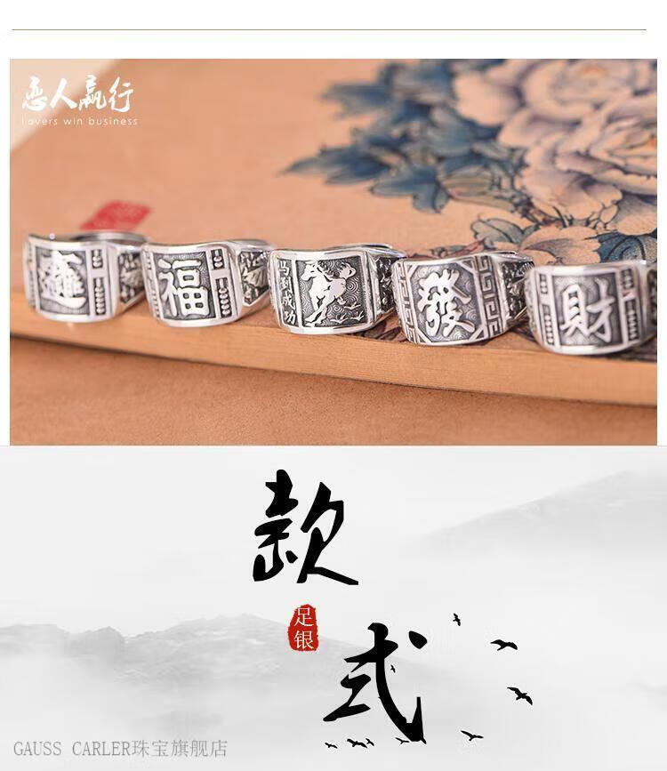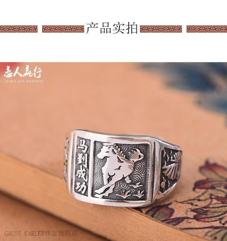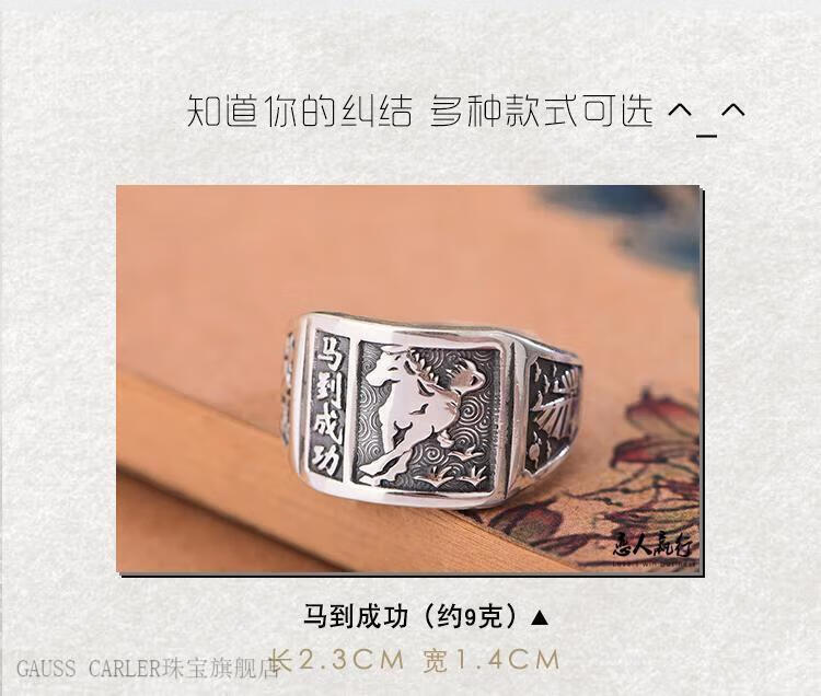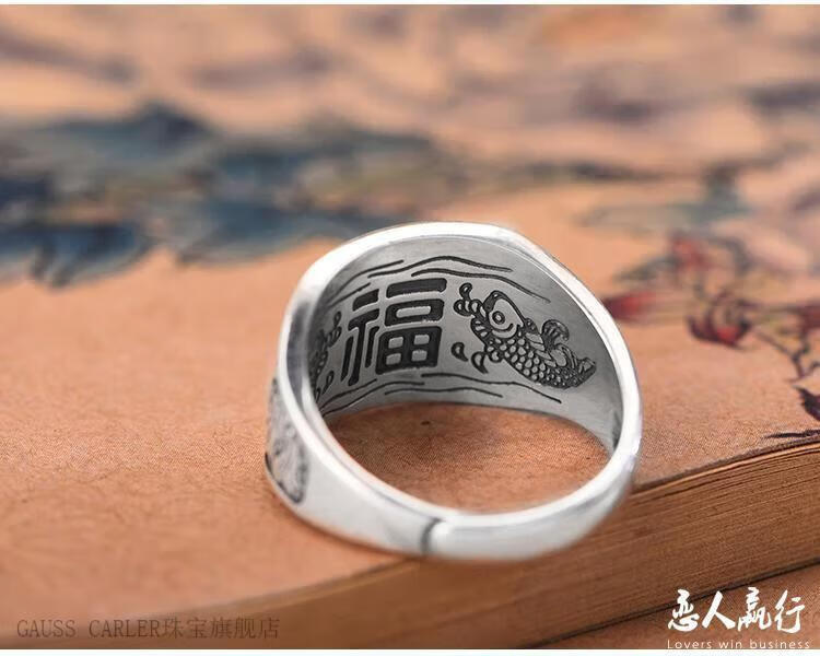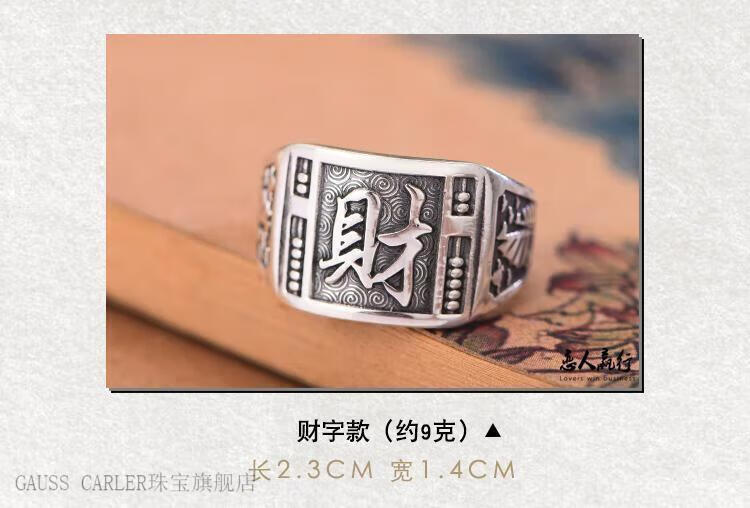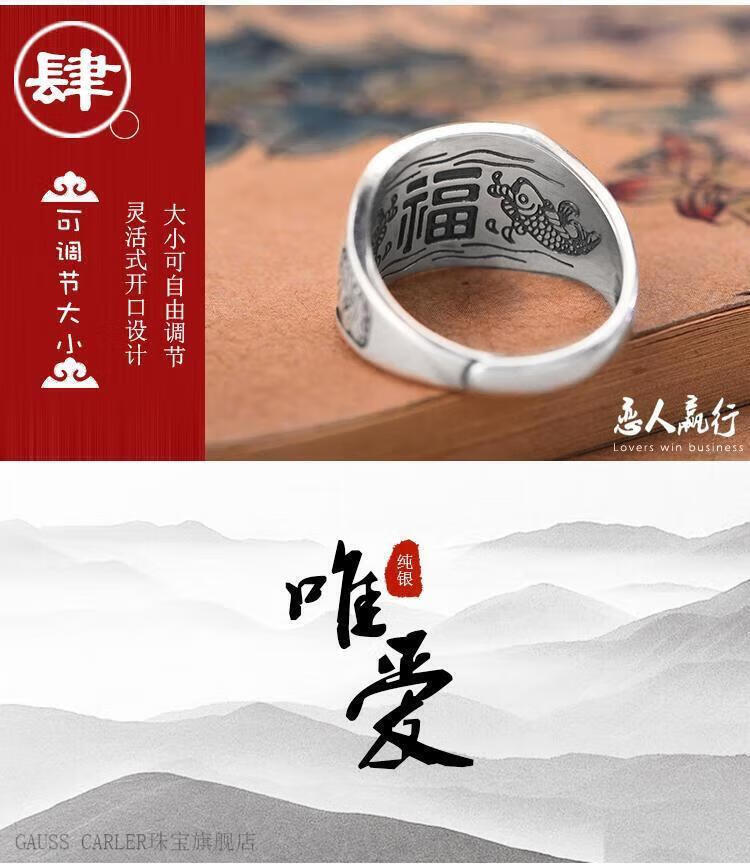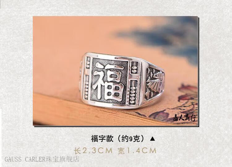 GAUSS CARLER old phoenix pure silver ring men's sterling silver 999 men's adjustable dad Fu Zilong wide face domineering silver jewelry gift, imported style, about 9g of the same style