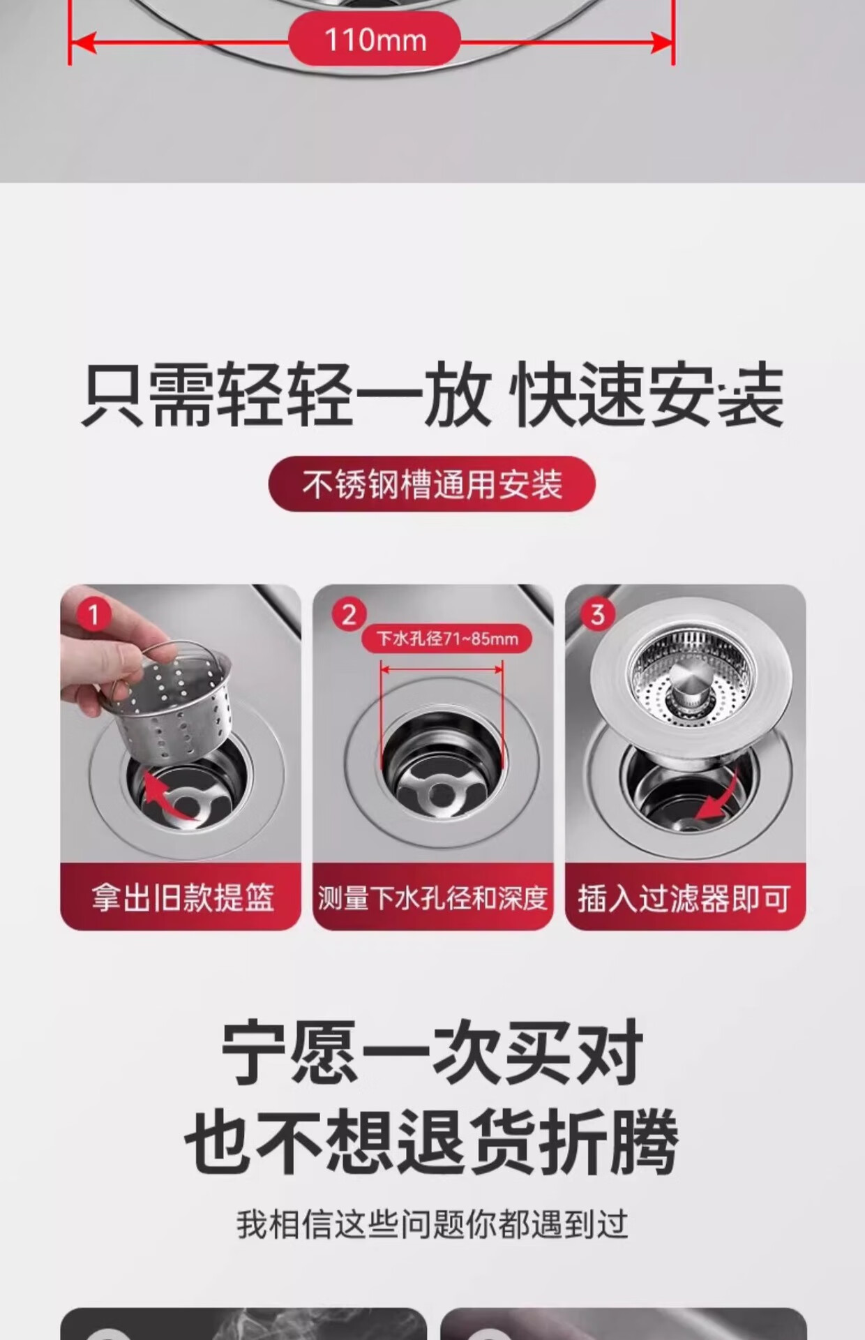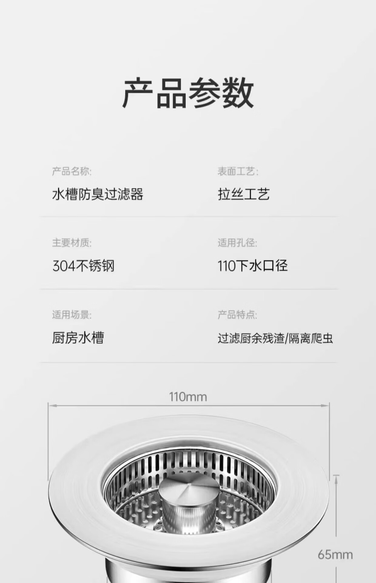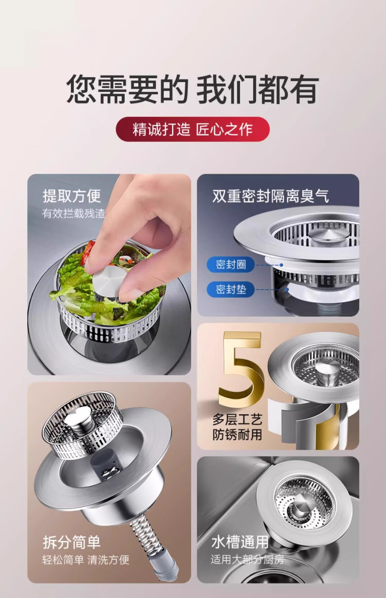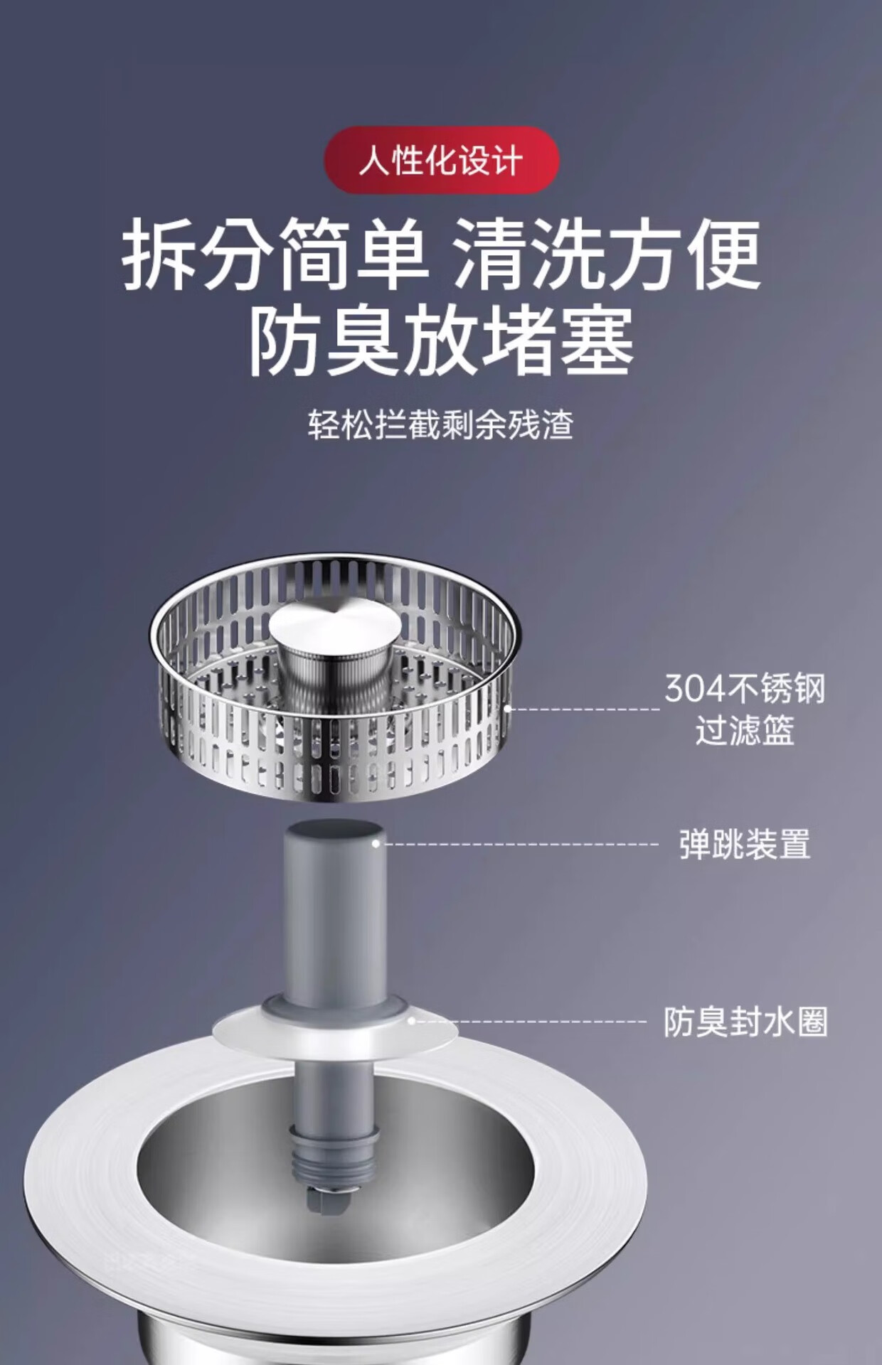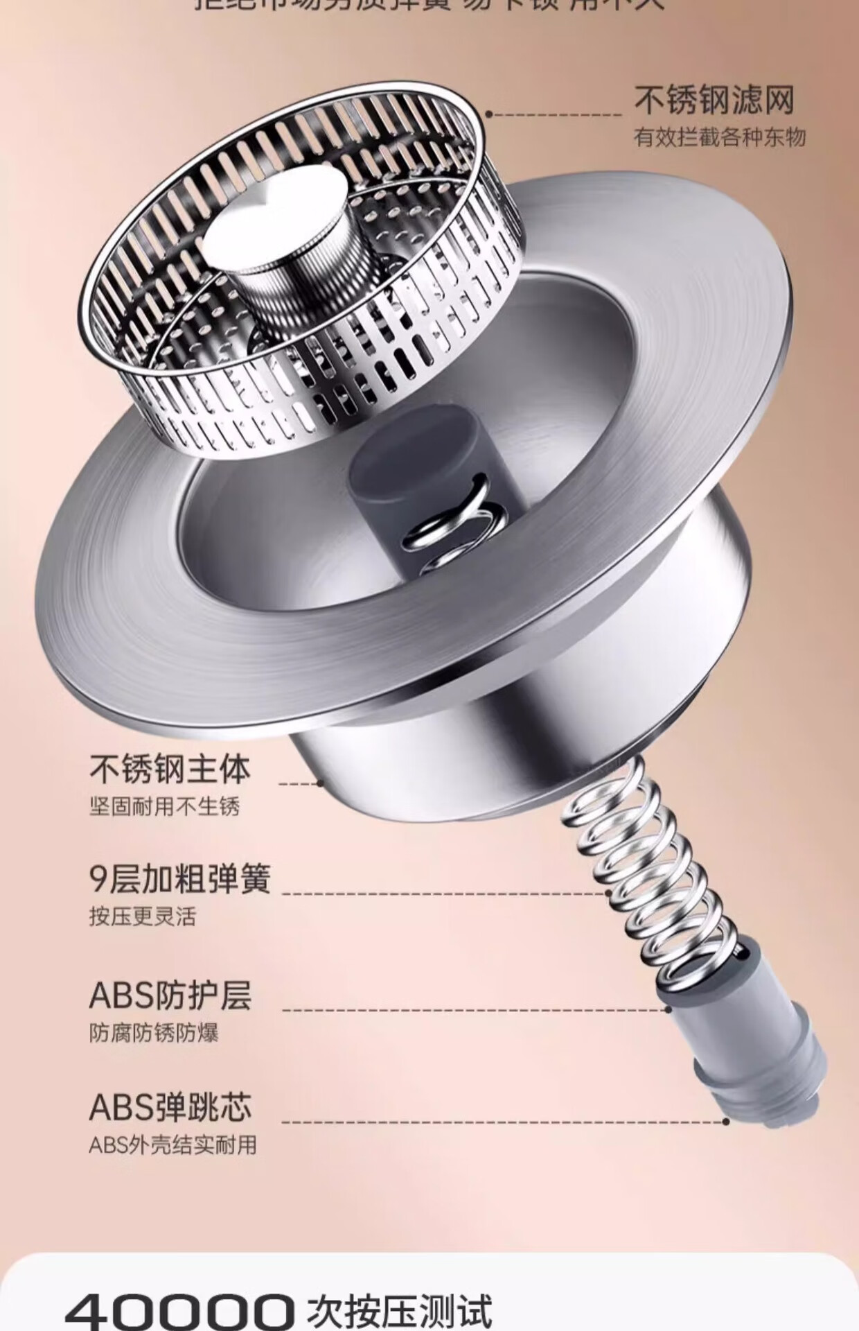 JOMOO New Germany 304 stainless steel kitchen sink sink drain leak plug filter universal pool spring core silver