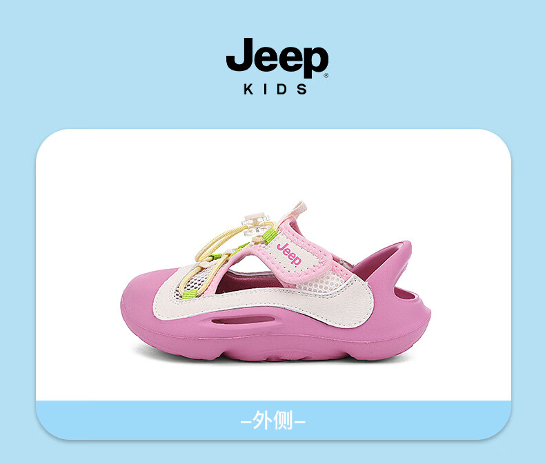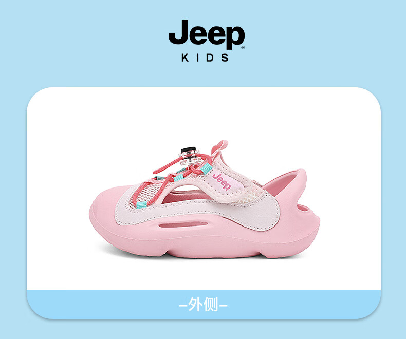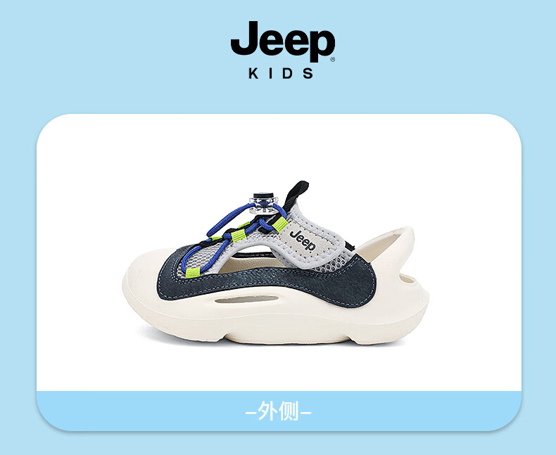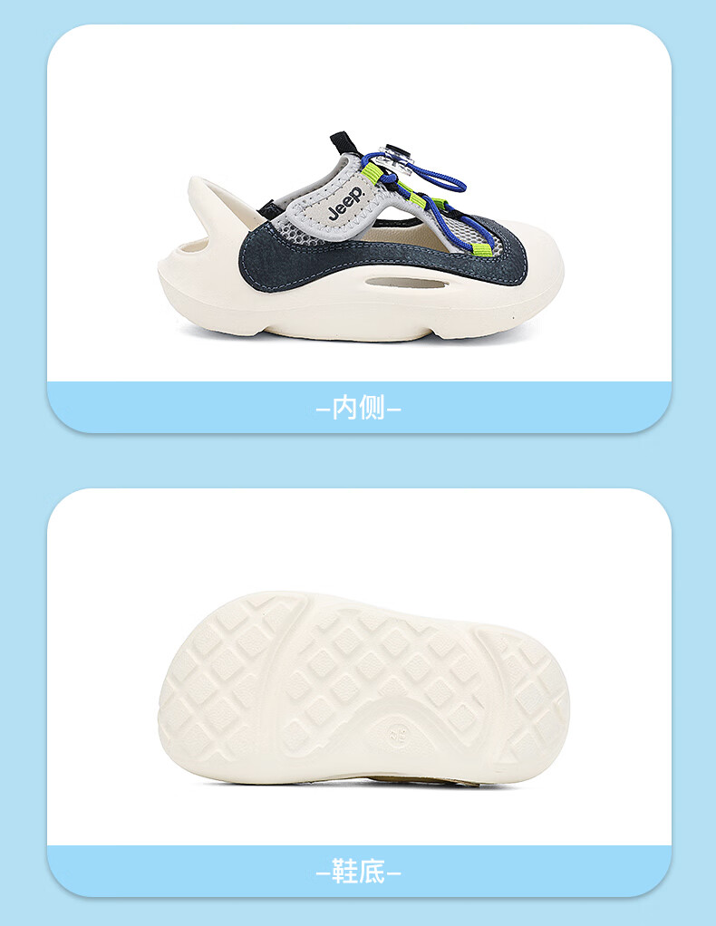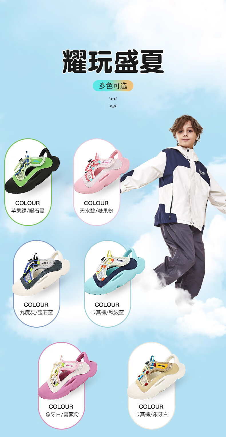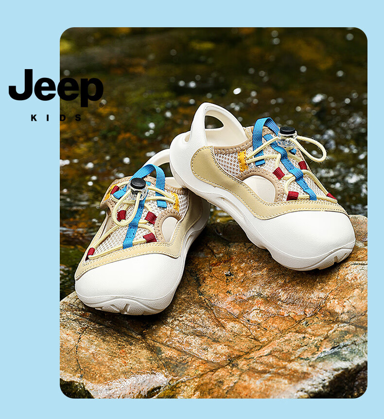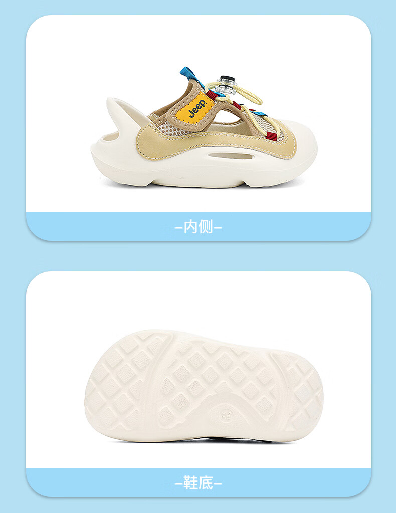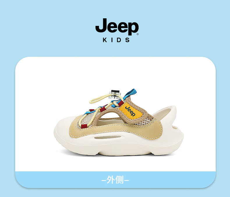JEEP Children's Sandals 2025 New Baotou Sandals Soft Bottom Girls Beach Shoes Summer Outdoor Wading Shoes Khaki Brown/Ivory White 34 The inner length of the shoe is about 22.9cm