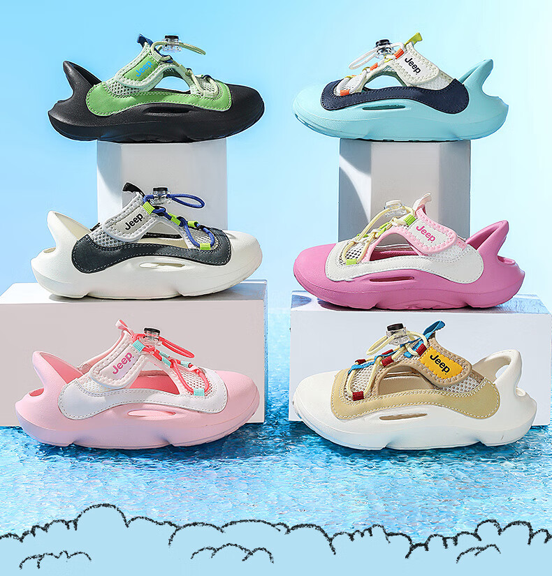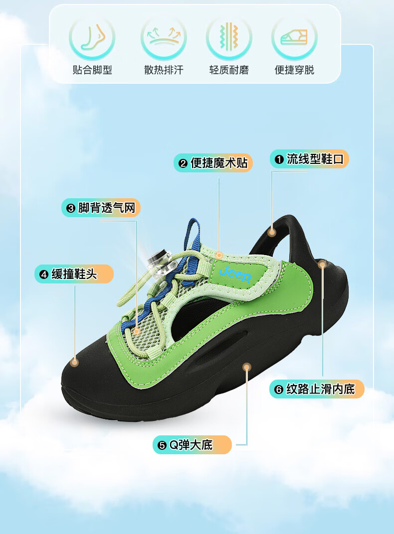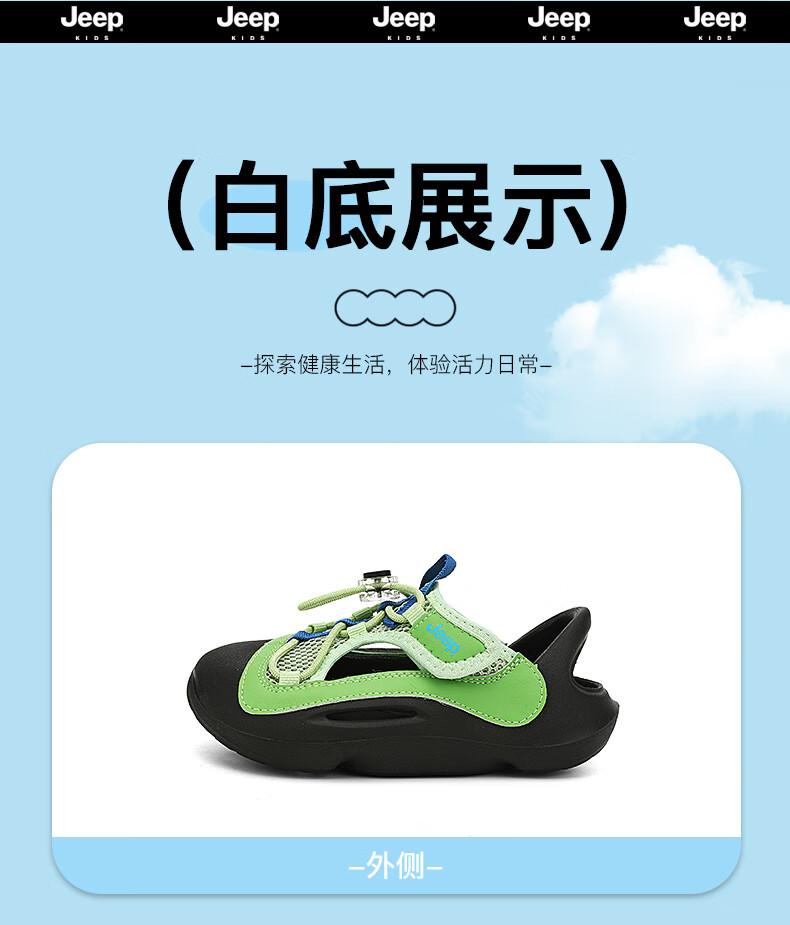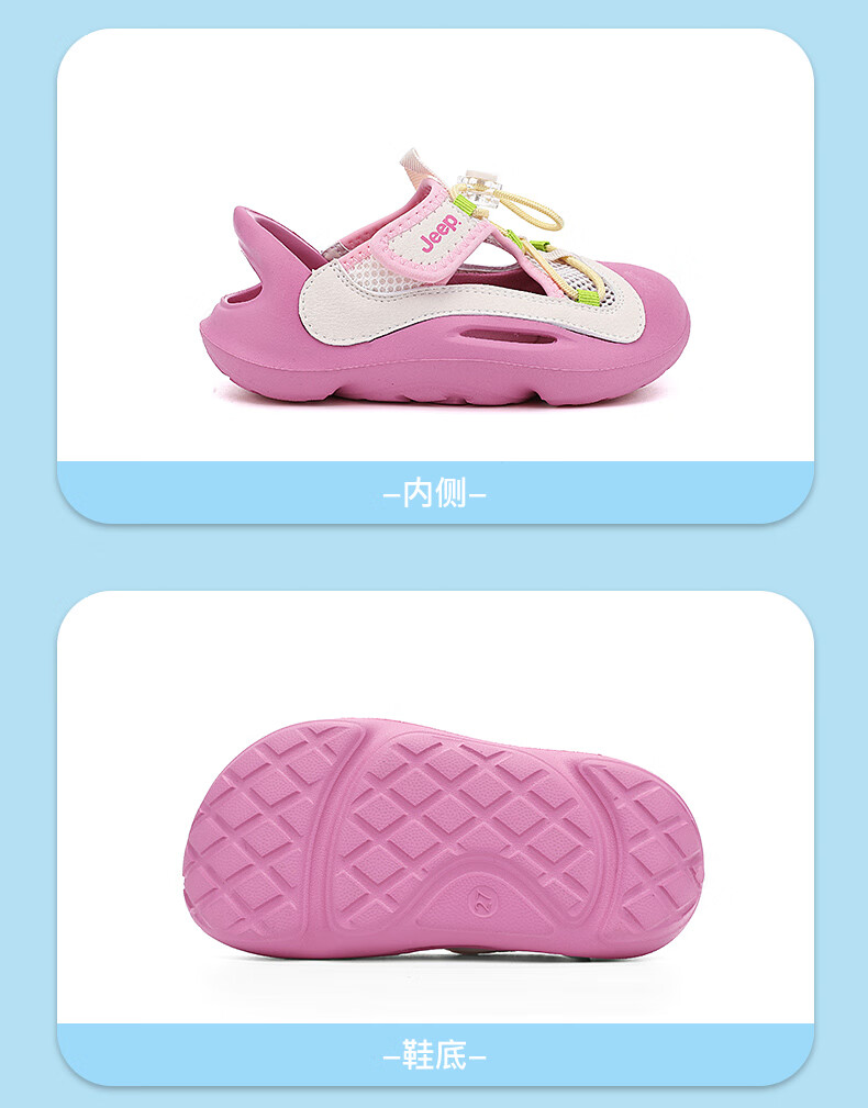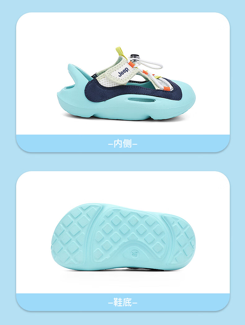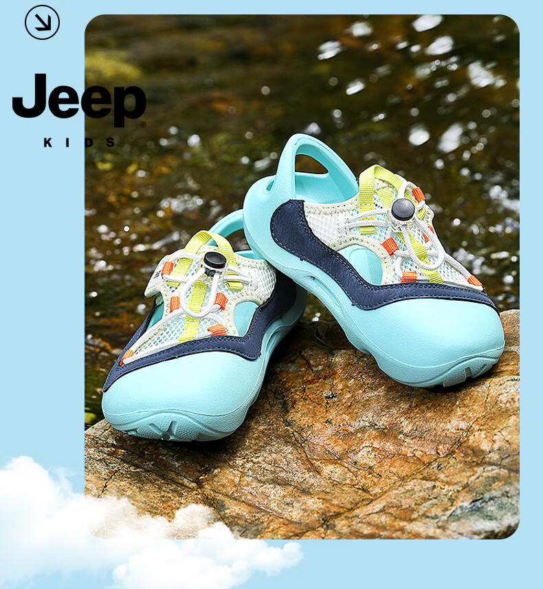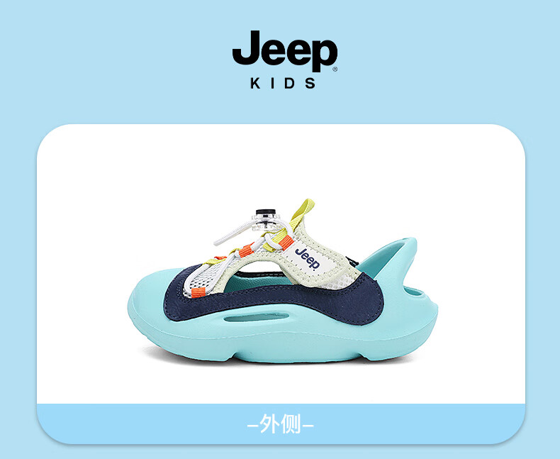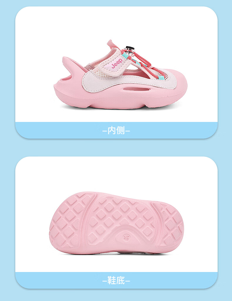 JEEP Children's Sandals 2025 New Baotou Sandals Soft Bottom Girls Beach Shoes Summer Outdoor Wading Shoes Khaki Brown/Ivory White 34 The inner length of the shoe is about 22.9cm