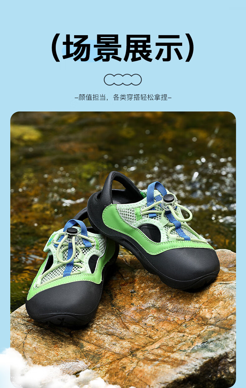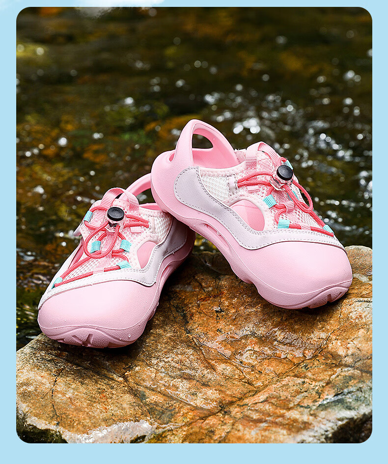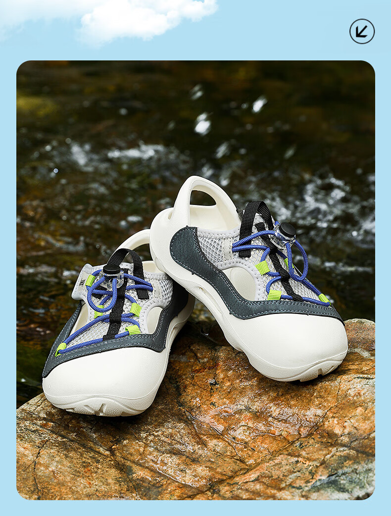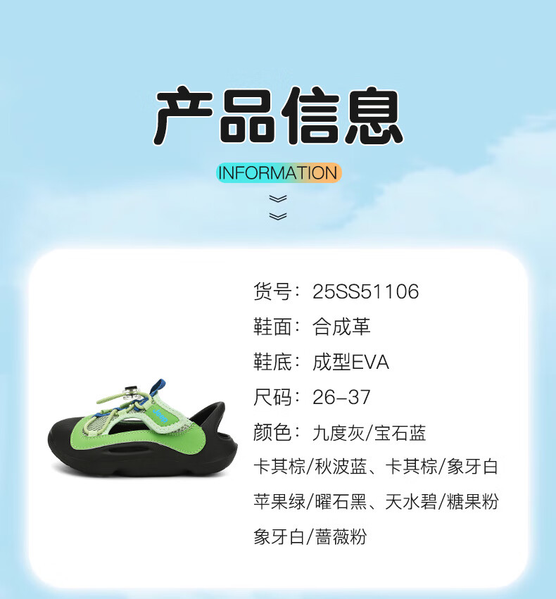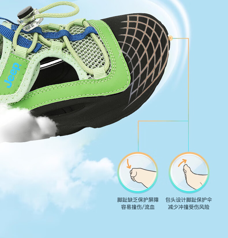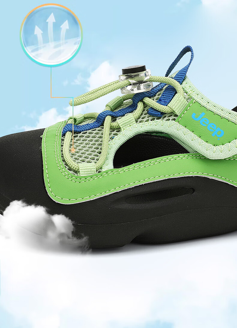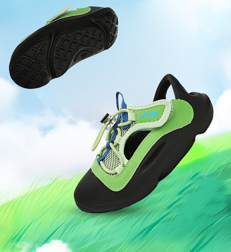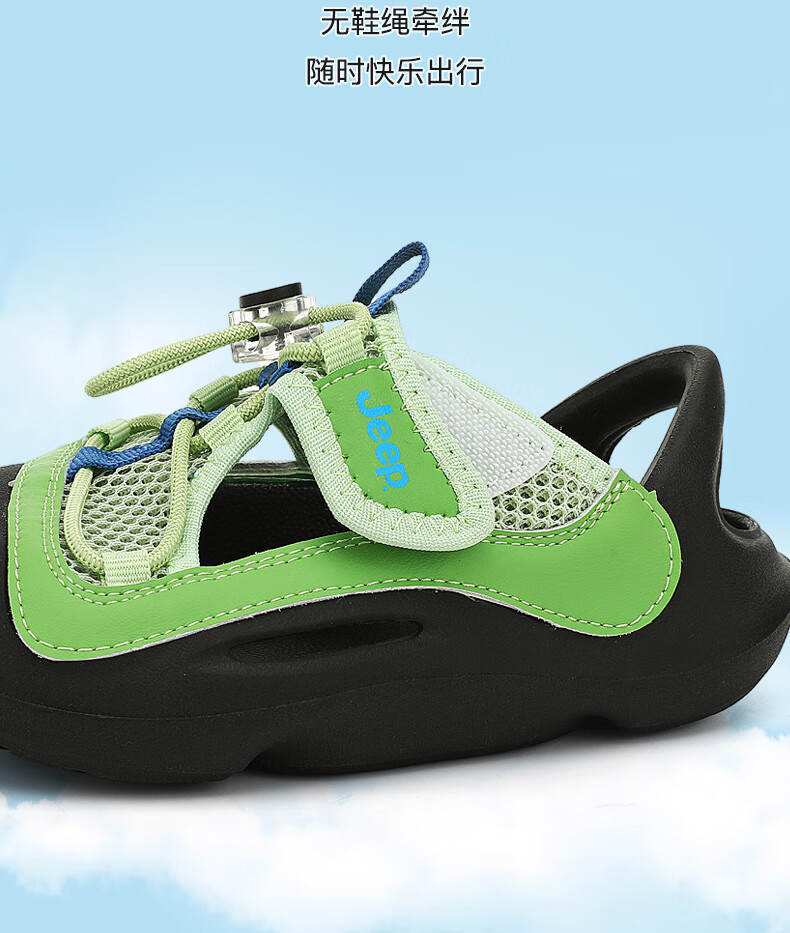 JEEP Children's Sandals 2025 New Baotou Sandals Soft Bottom Girls Beach Shoes Summer Outdoor Wading Shoes Khaki Brown/Ivory White 34 The inner length of the shoe is about 22.9cm
