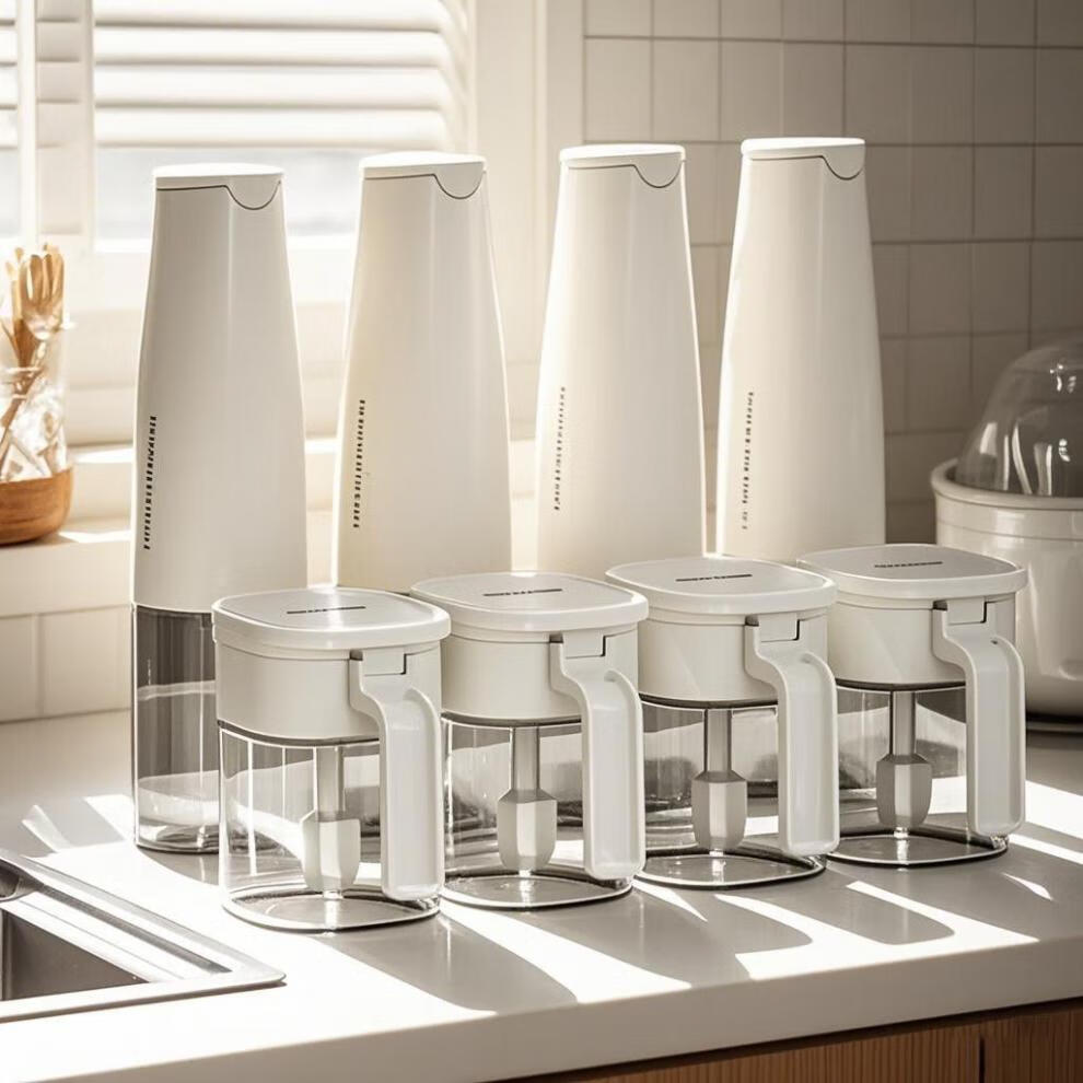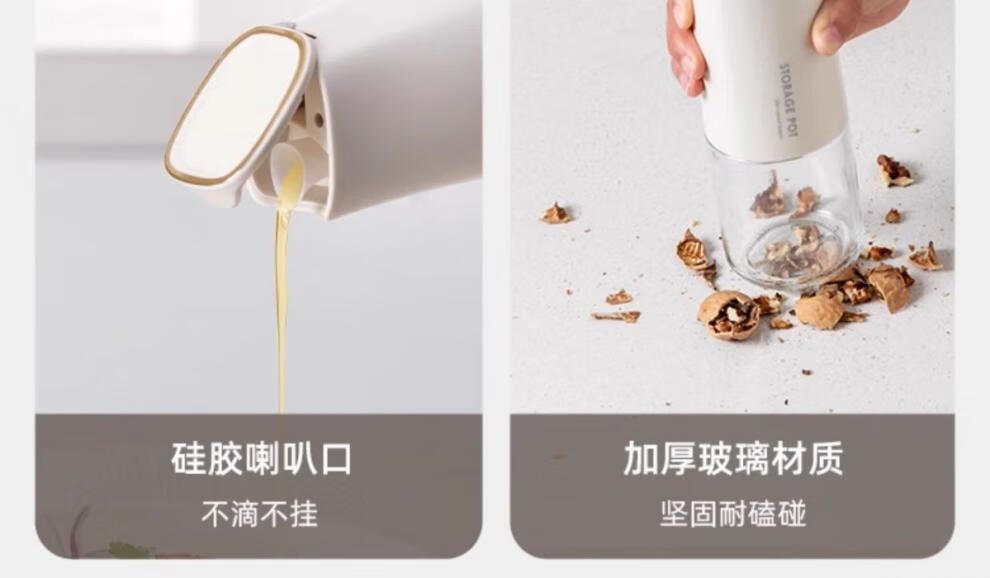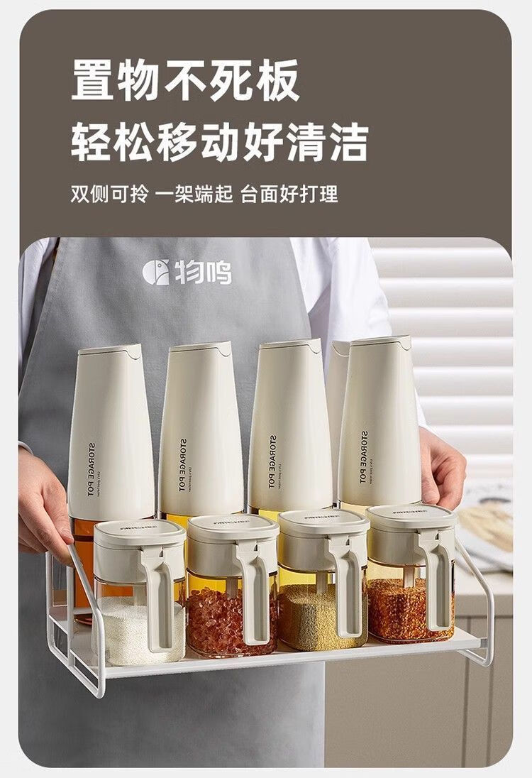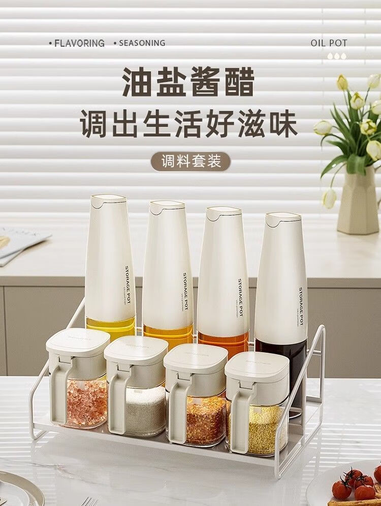 GUIG seasoning jar and oil jug combination household set kitchen salt seasoning jar storage box household seasoning jar sealed sugar jar oil jug*4+ seasoning jar*4 white 8 pieces free cleaning