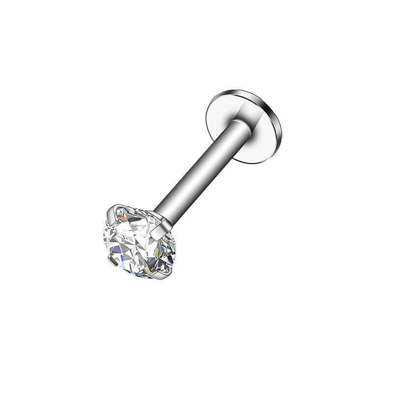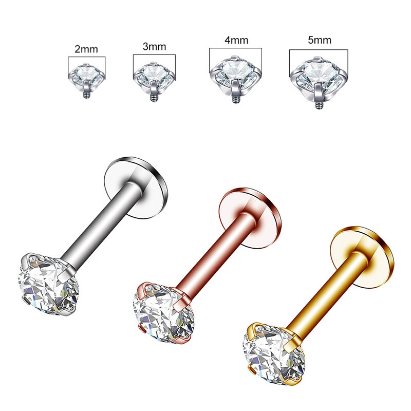 Titanium alloy earrings titanium steel zircon inner tooth fine needle lip nail ear bone nail lip nail lip ring ear nail piercing silver round zircon single 1.2*6*4