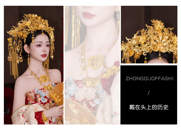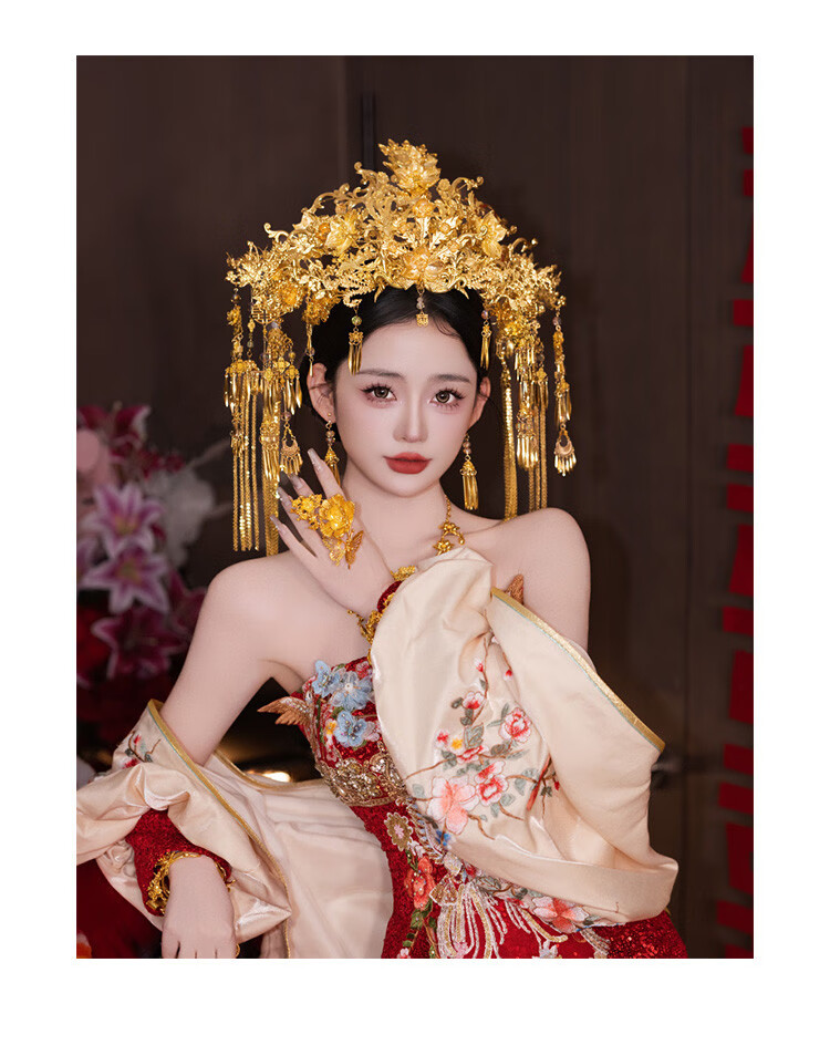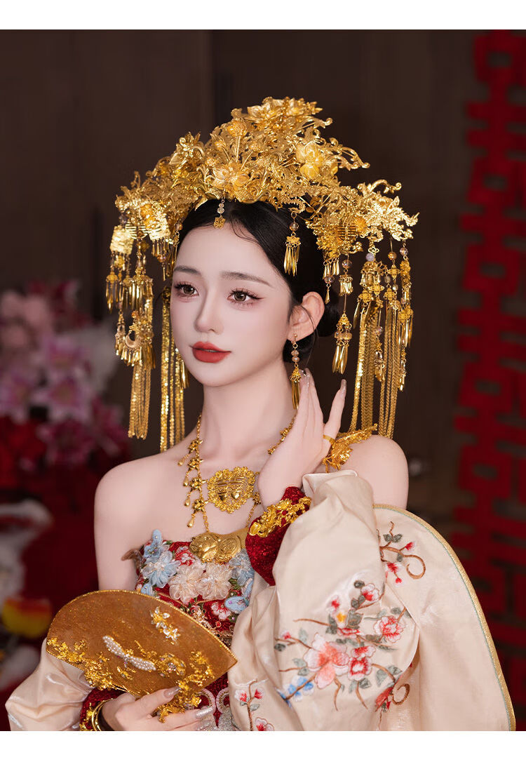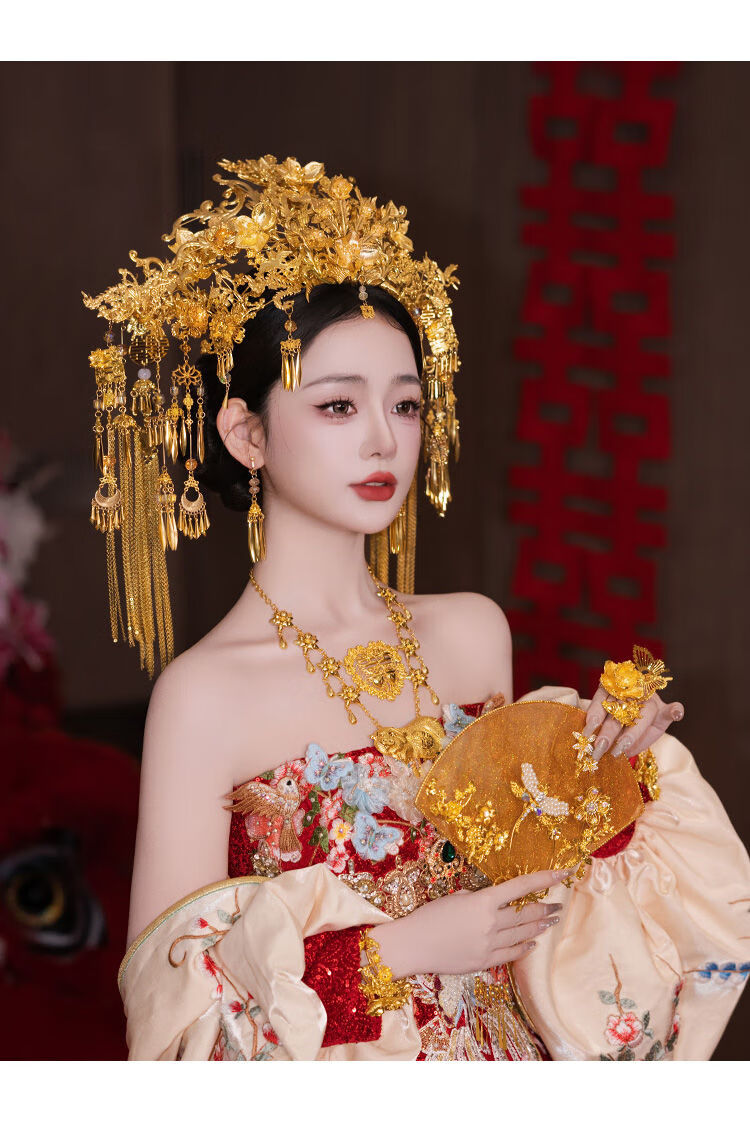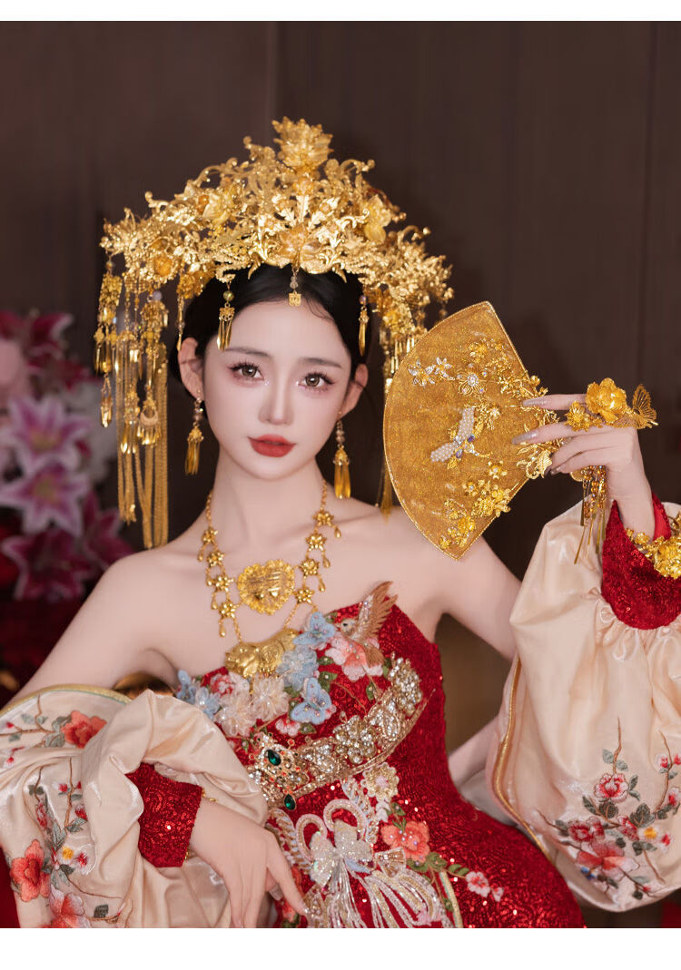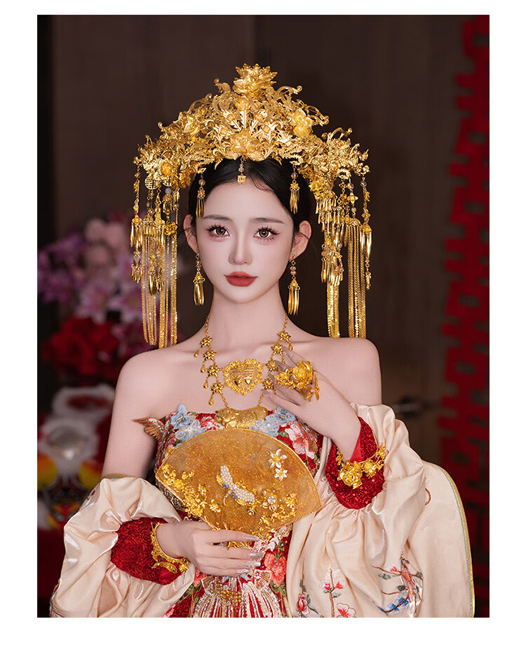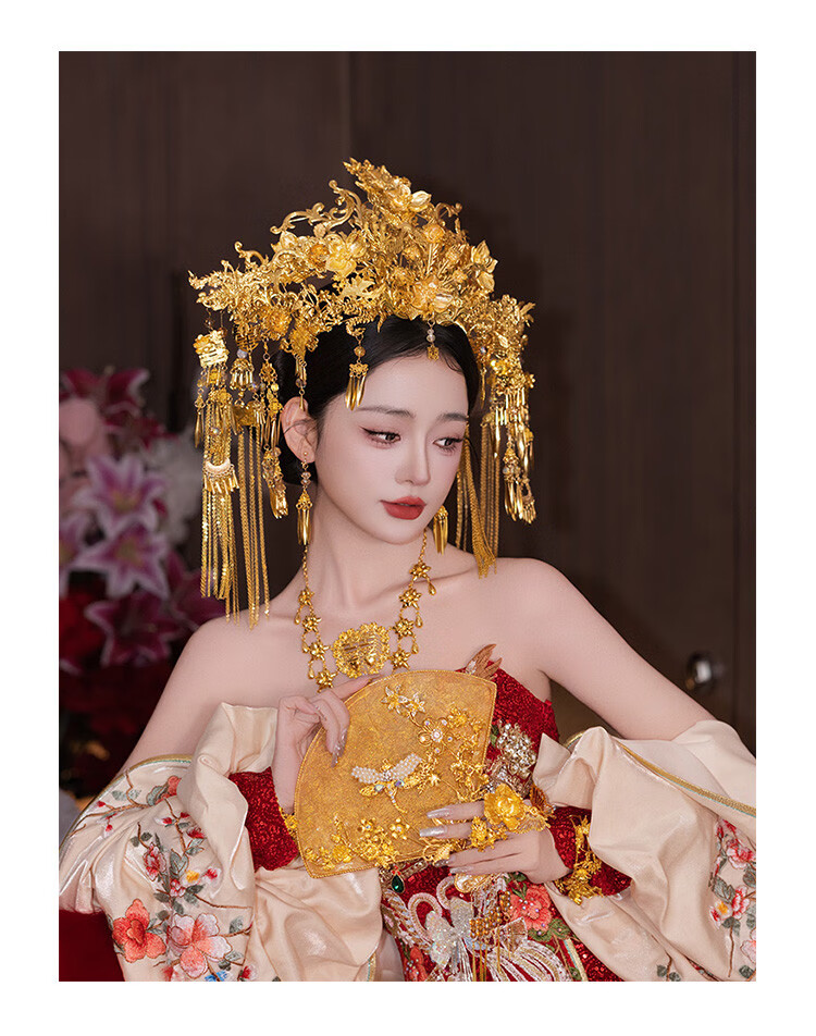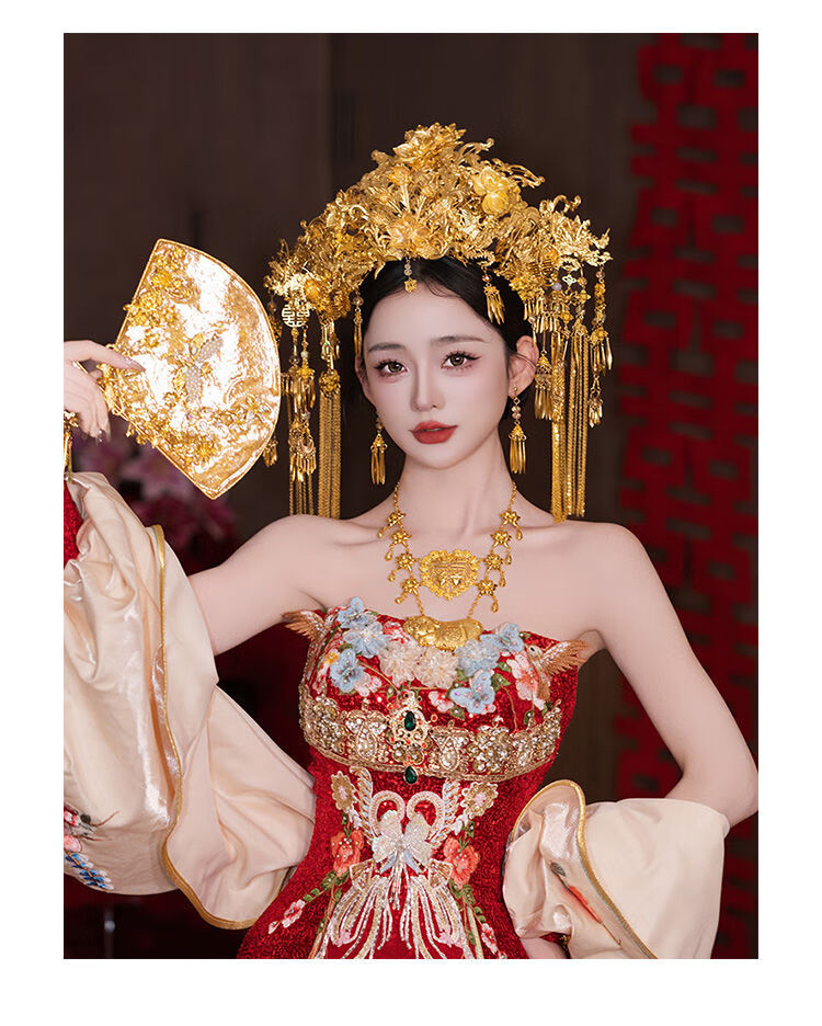 VAN OCEAN ANNORA Bridal Chinese style hair accessories golden large phoenix crown ancient style palace gorgeous and elegant Xiuhe suit national style dress knot phoenix crown MT086