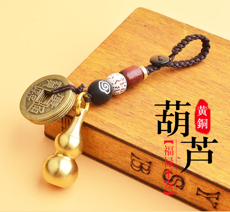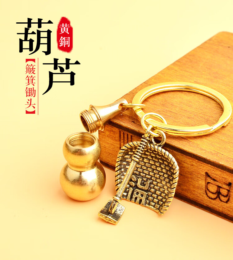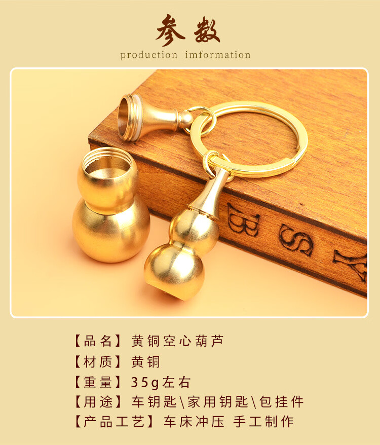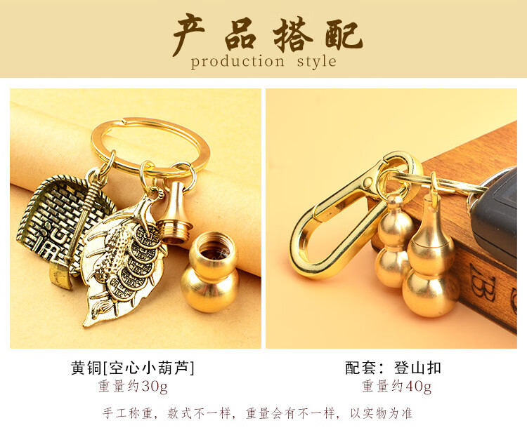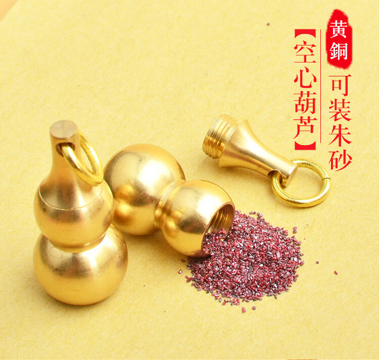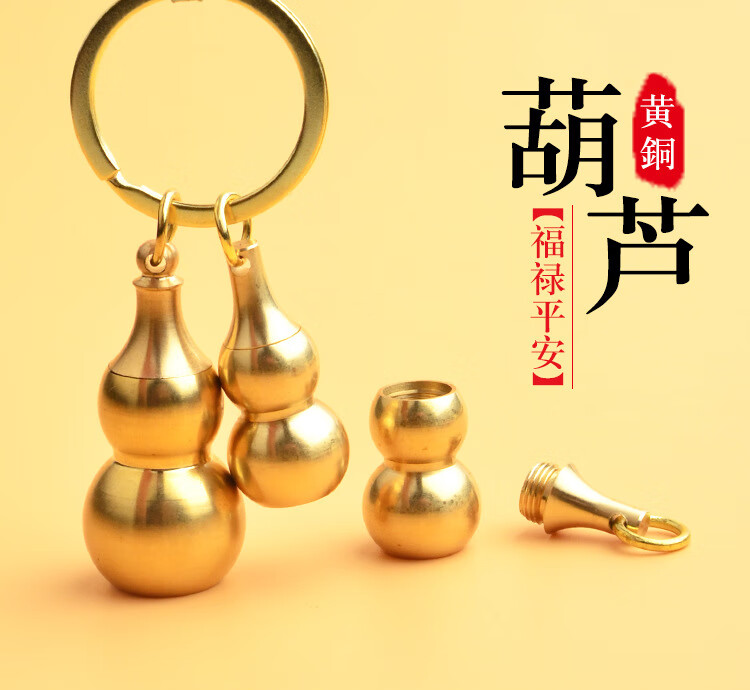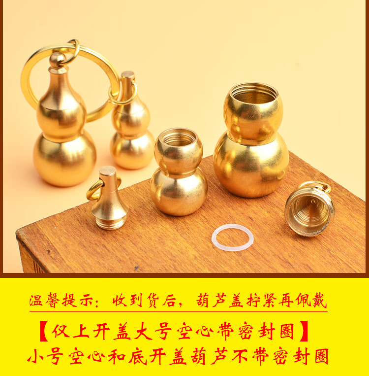New brass gourd can open large hollow gourd, pure copper can hold things, cinnabar copper gourd keychain, small ring + top opening cover, large hollow gourd