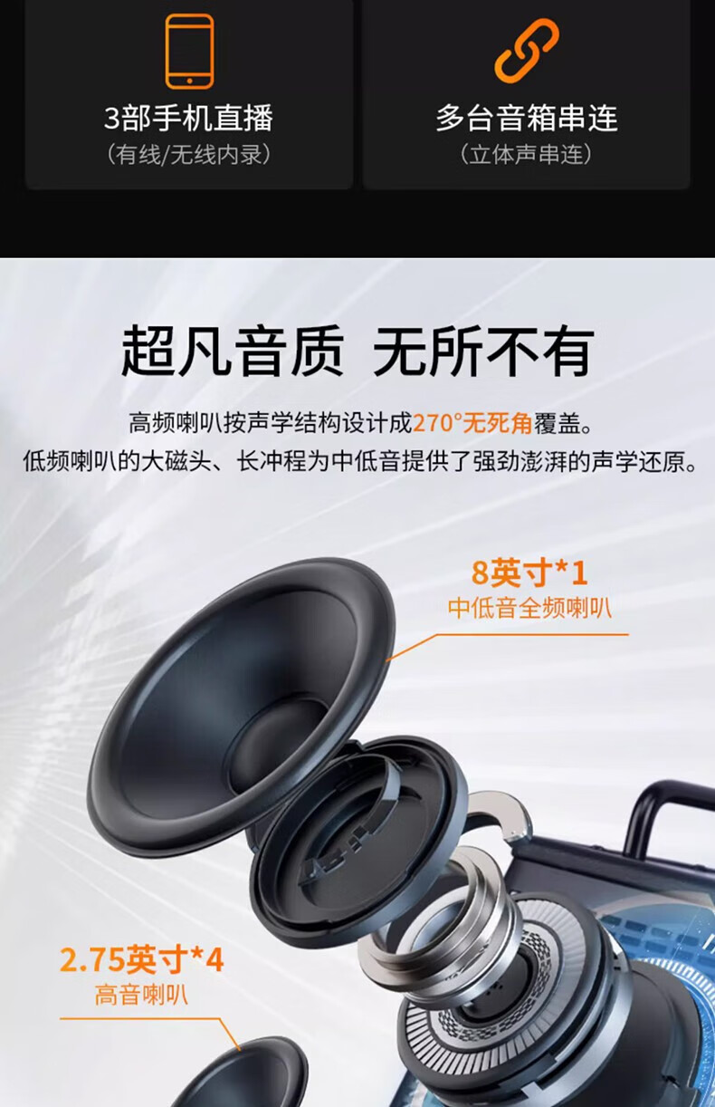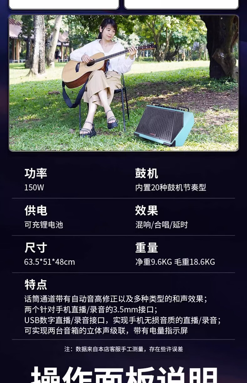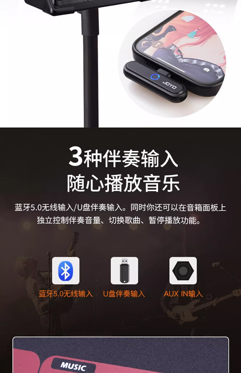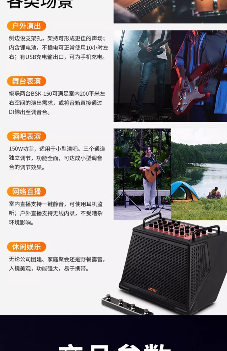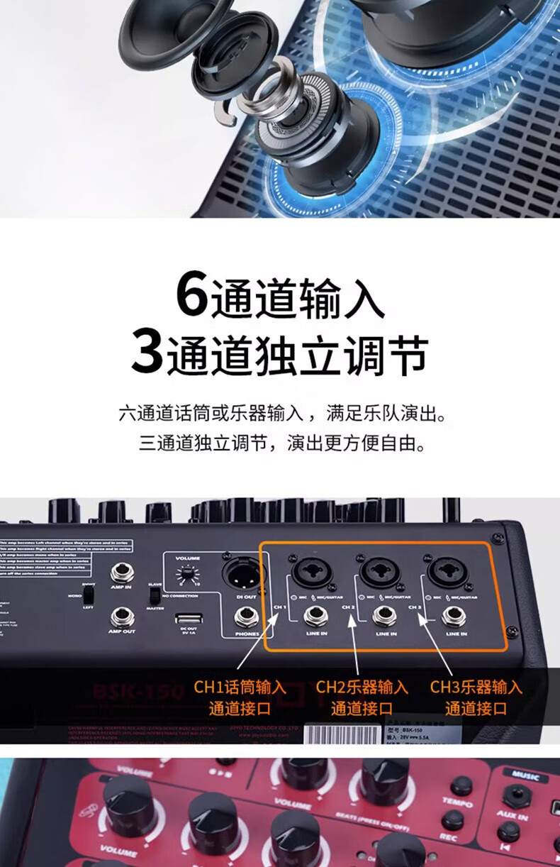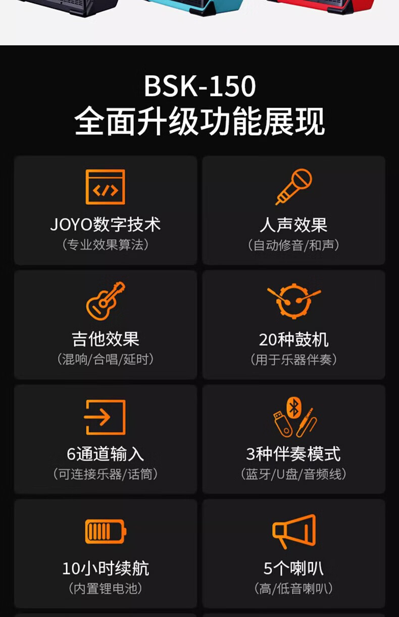 Wholesale private chat JOYO Zhuo Le BSK 150 watt outdoor live broadcast guitar playing and singing speaker electric blowpipe one piece black