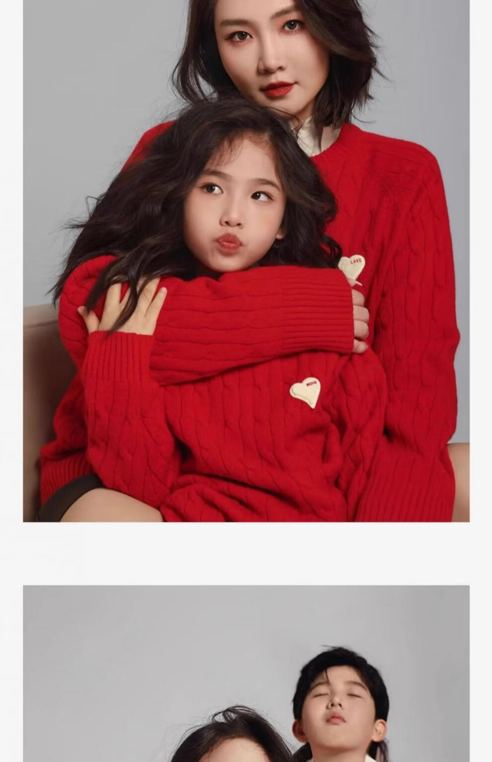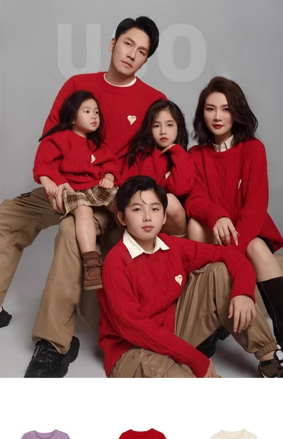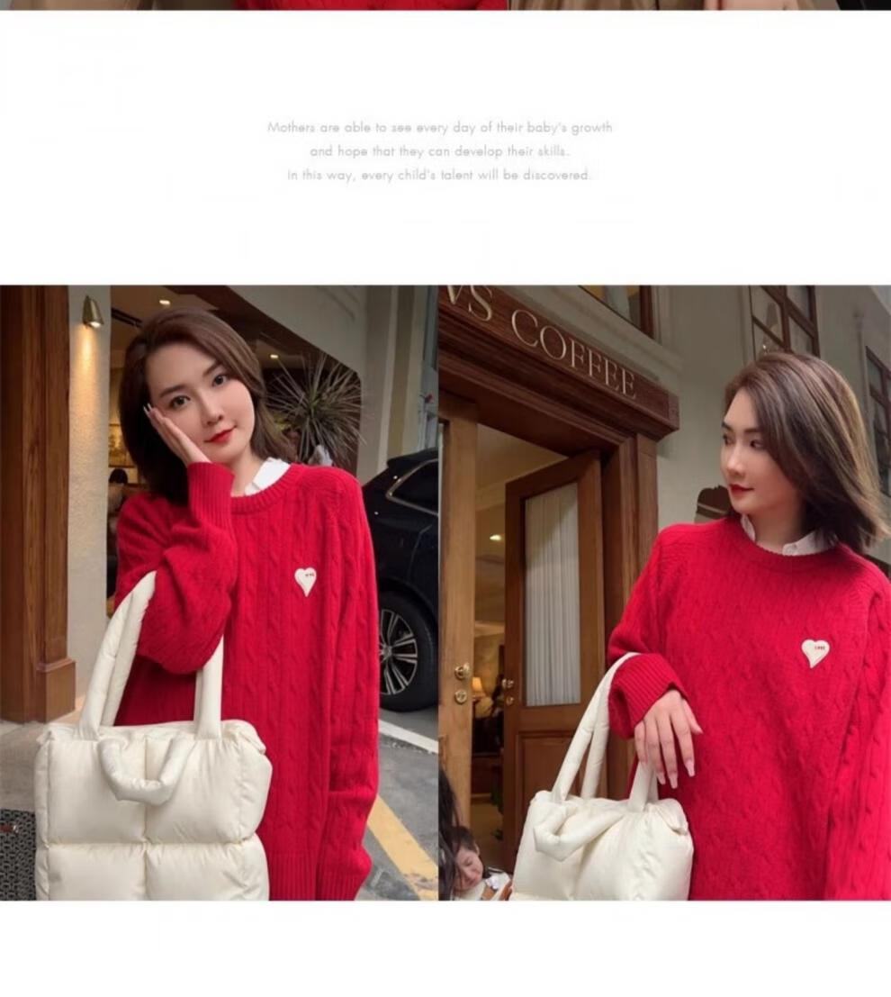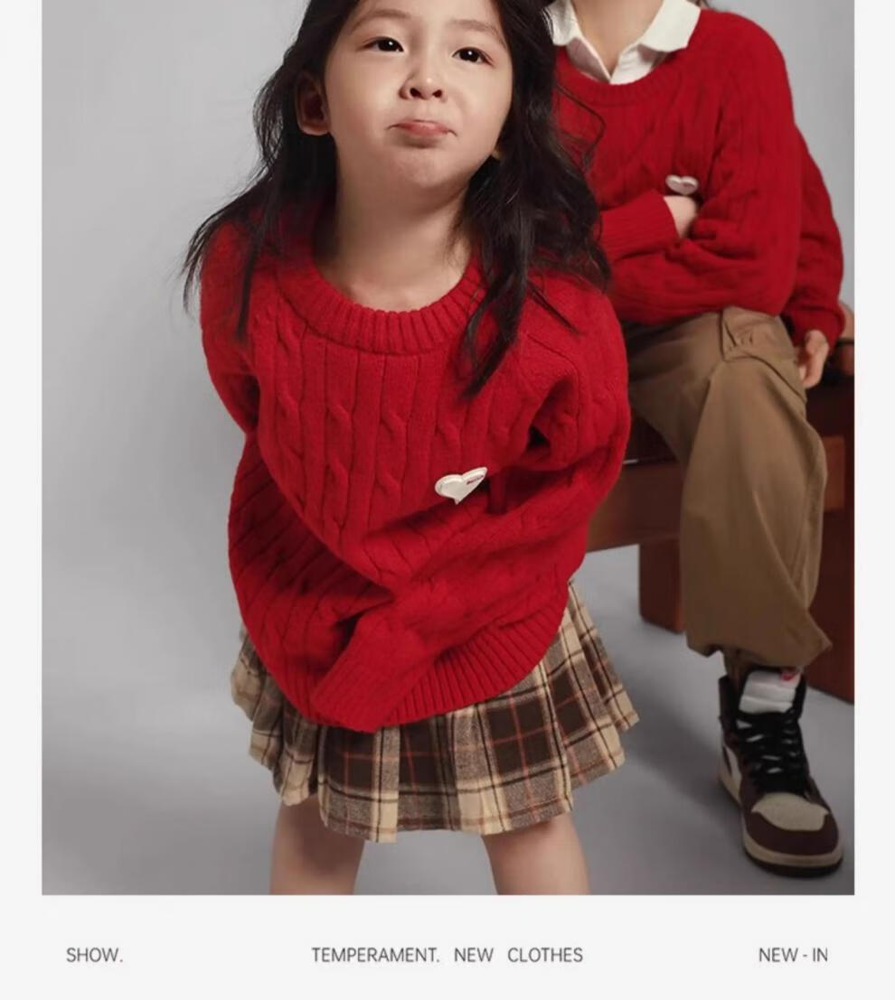 G.duck new year parent-child wear 2025 new winter red knitted sweater mother and son mother and daughter family autumn and winter wear magenta 130 baby sweater
