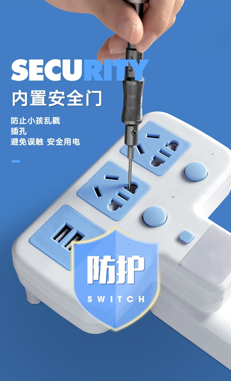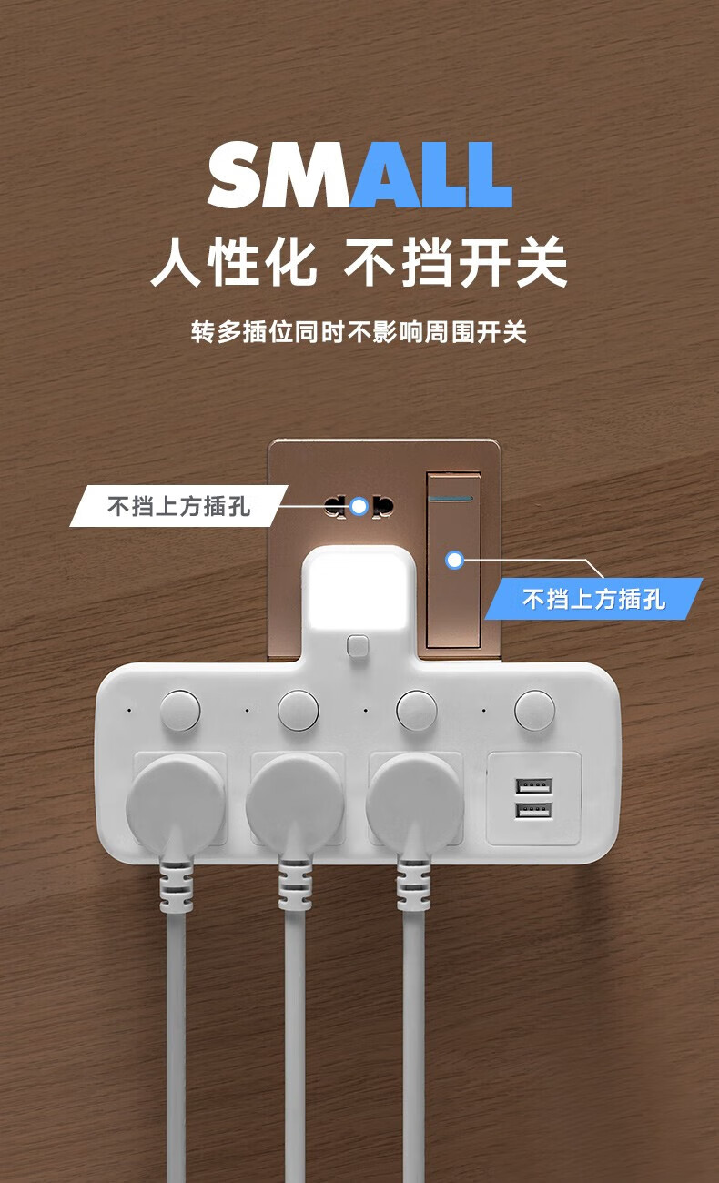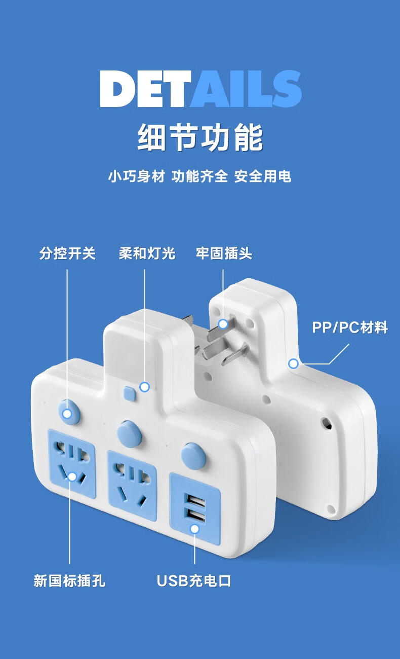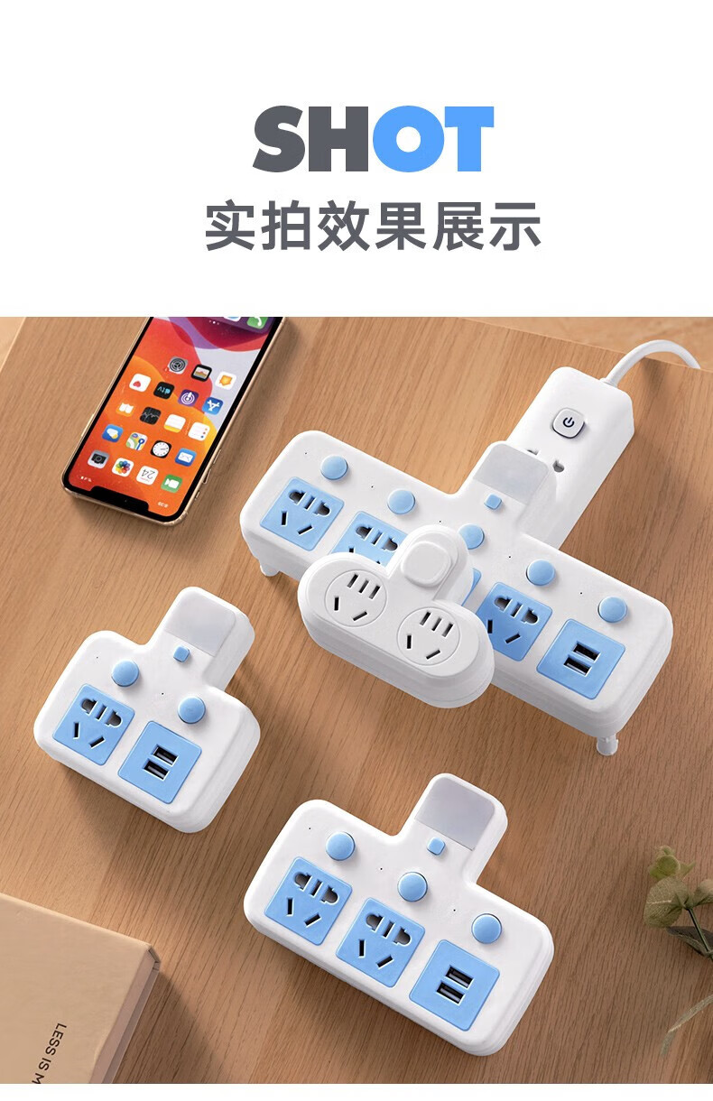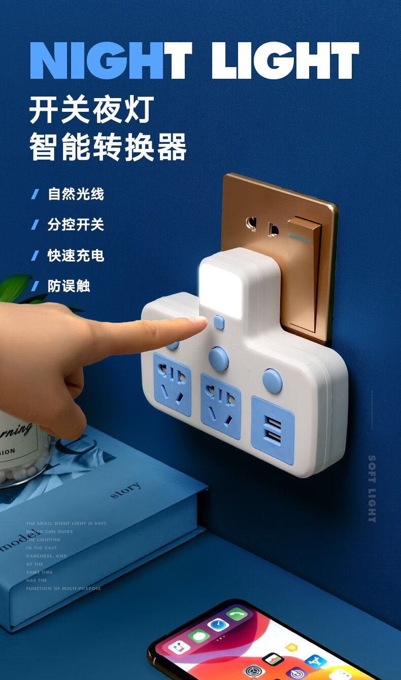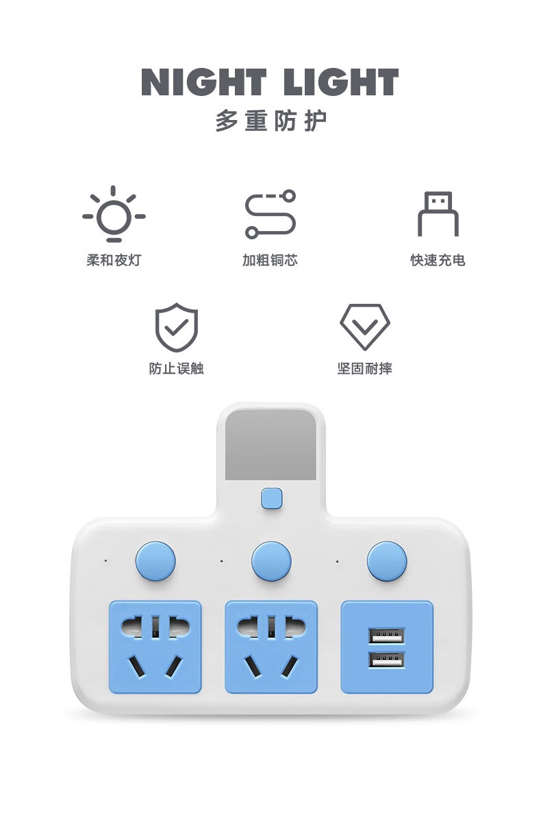 Bull (BULL) same style socket converter multi-function wireless conversion plug home power converter one turn Bull one turn two socket (sub-control switch) G2 blue