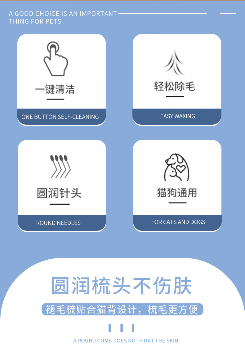 Zhewei Cat Comb Removes Floating Hair Brush Dog Hair Comb Cleansing Ragdoll Long-haired Cat Special Cat Hair Removal Artifact Pet Supplies Sky Blue