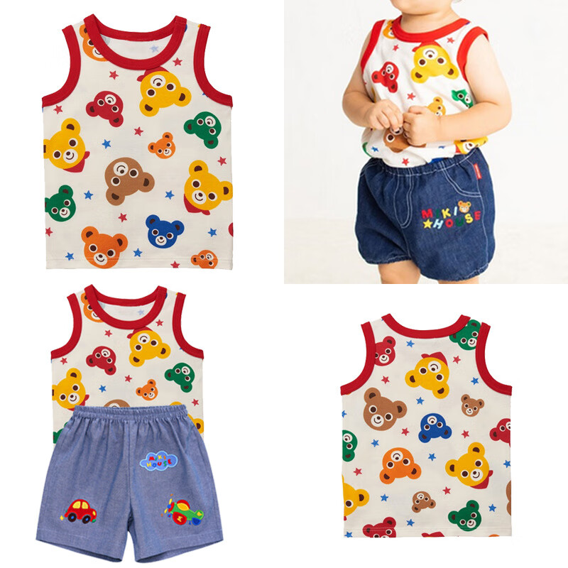 MIKIHOUSE Japanese boys and girls cartoon star bear head all-printed t-shirt children's vest short-sleeved vest 90 cm