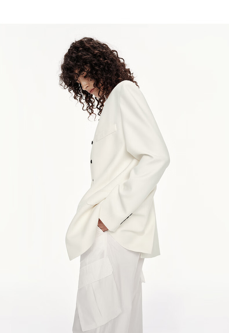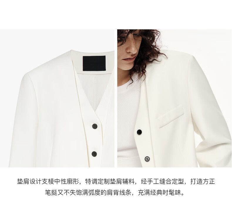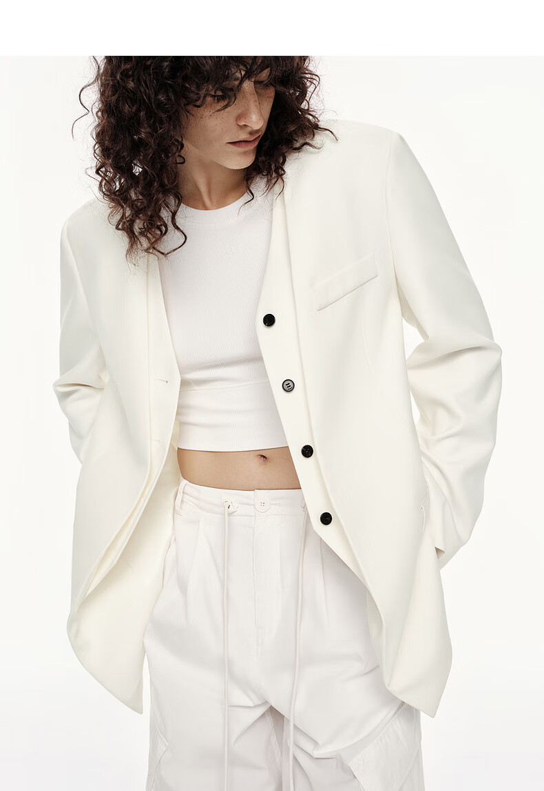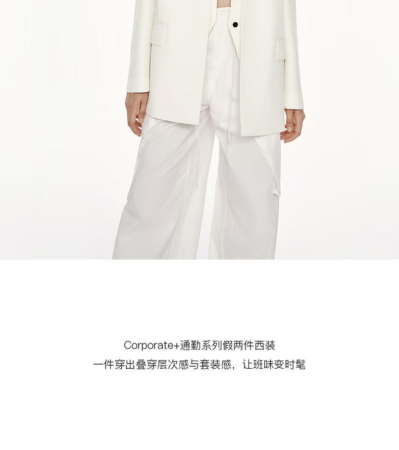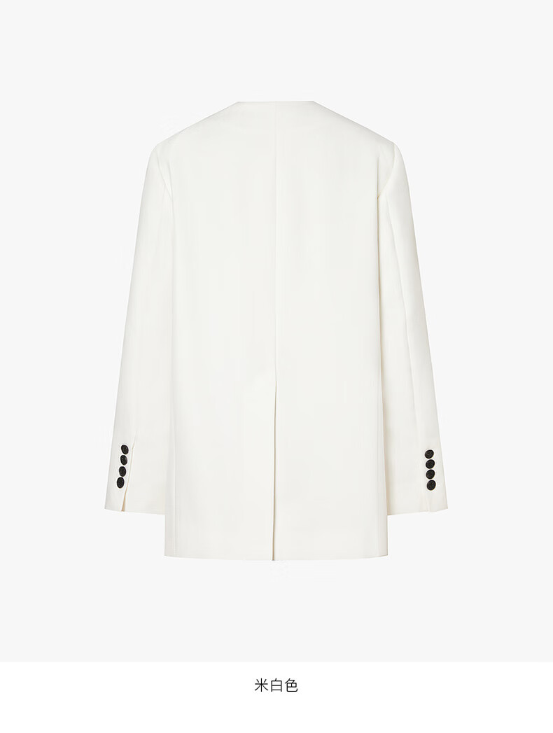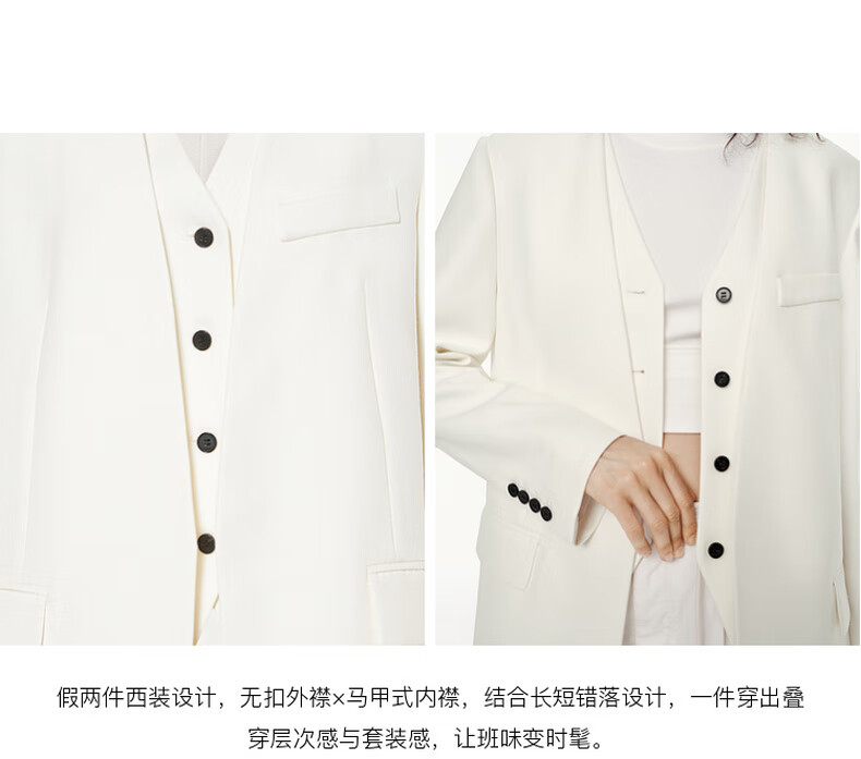 MO&Co. C+ Series Fake Two-piece Suit 2025 Autumn New Arrival Collarless Shoulder Padded Outline Jacket MBE3BLA019 Beige S /160
