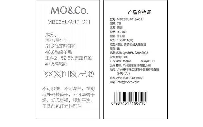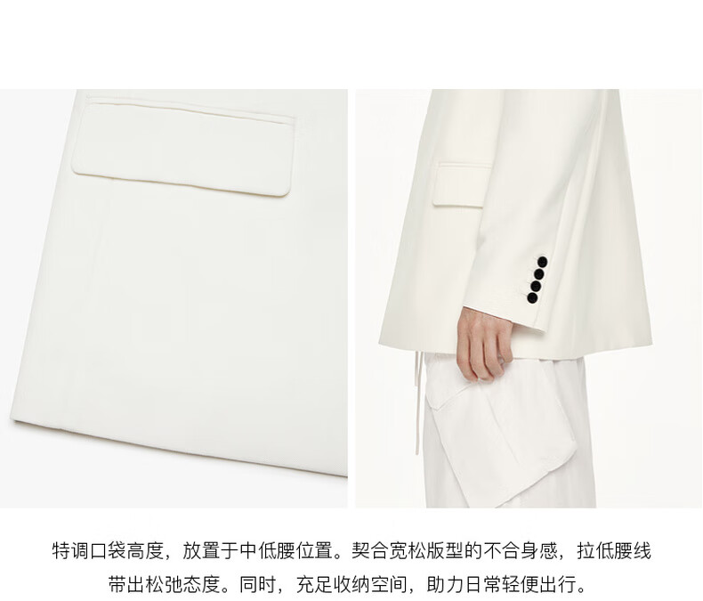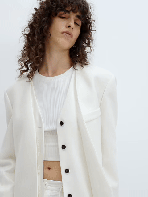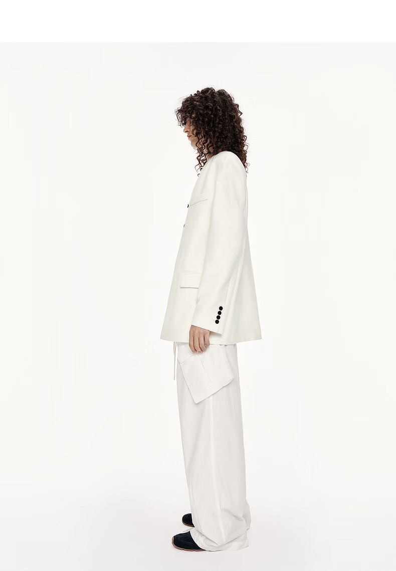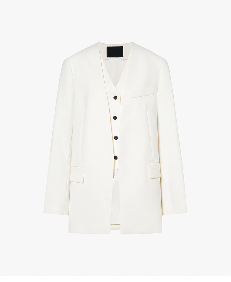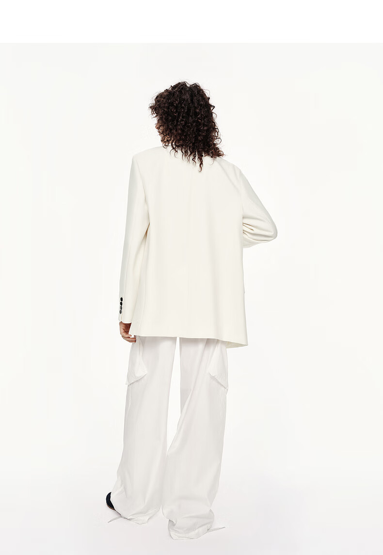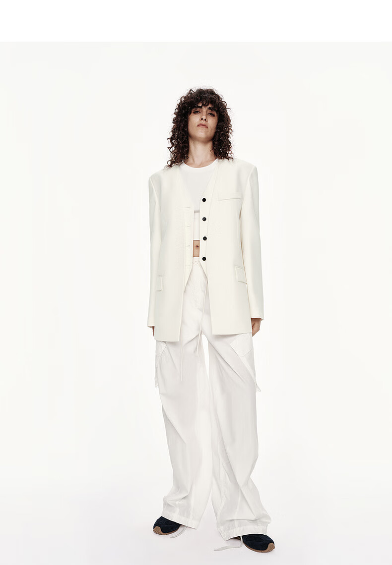 MO&Co. C+ Series Fake Two-piece Suit 2025 Autumn New Arrival Collarless Shoulder Padded Outline Jacket MBE3BLA019 Beige S /160