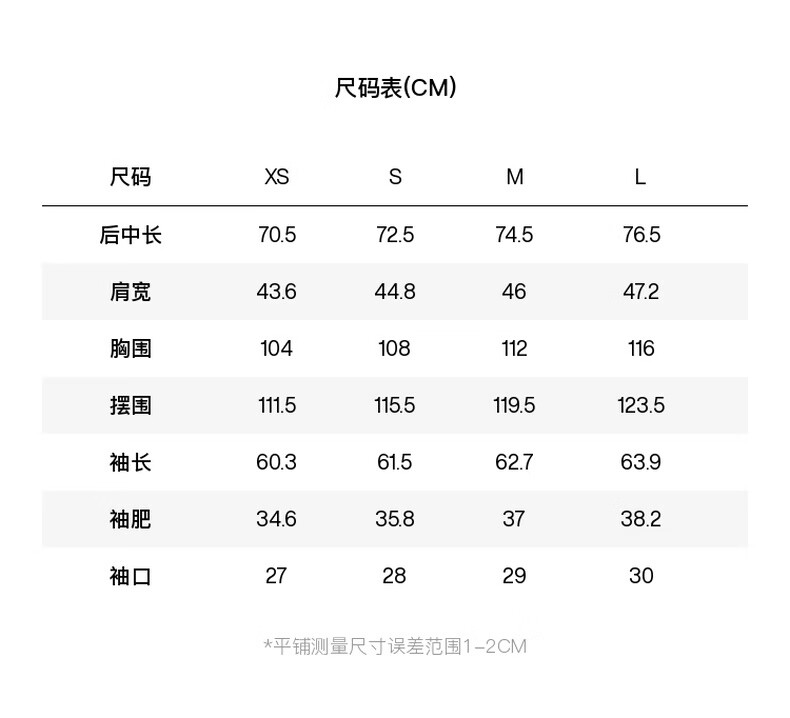 China(cm) 72-76 76-81 81-87 87-93 93-98