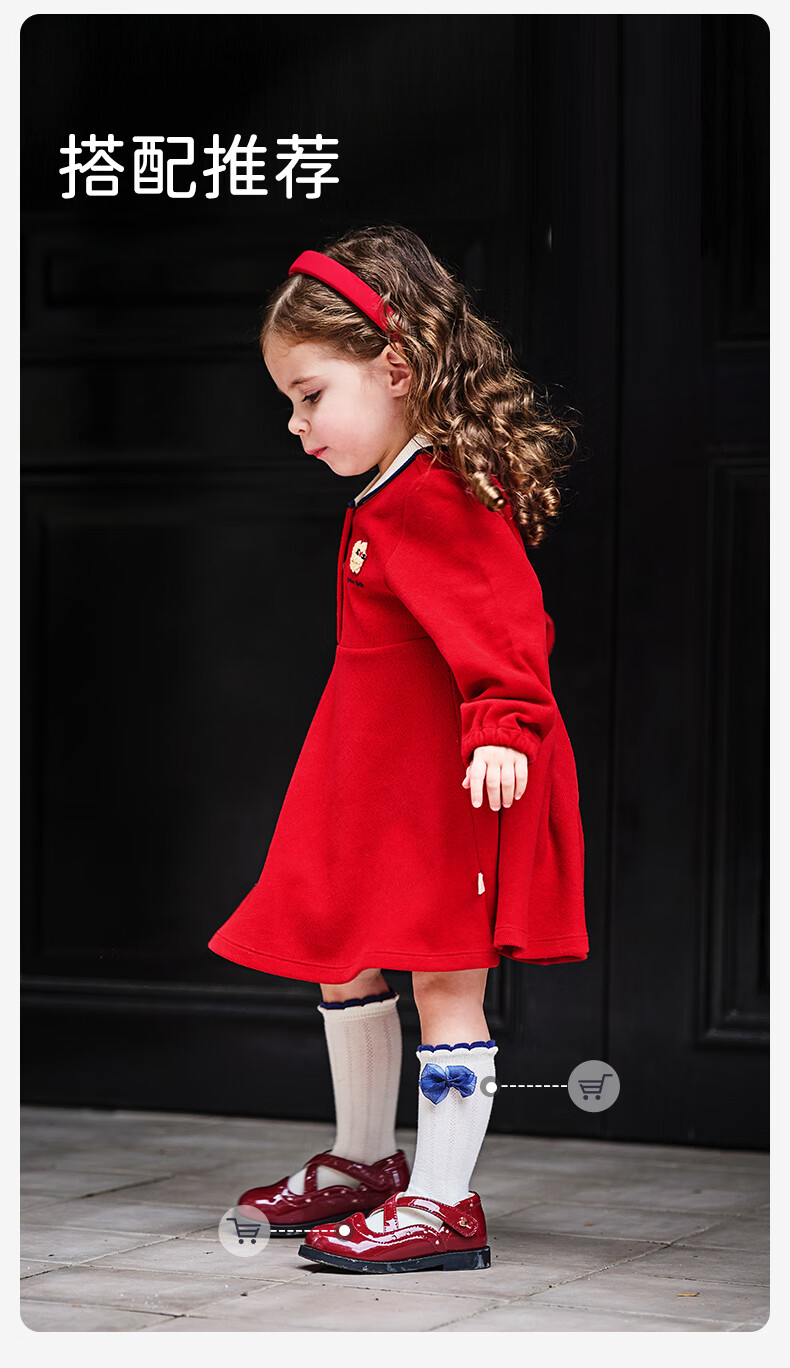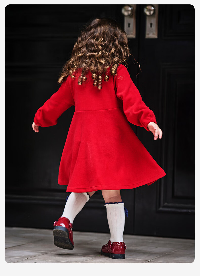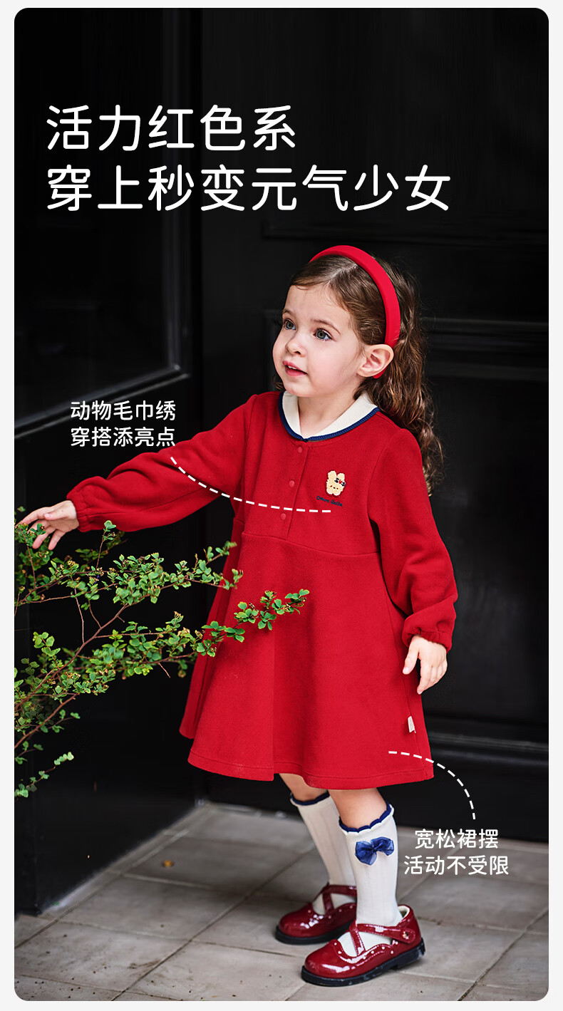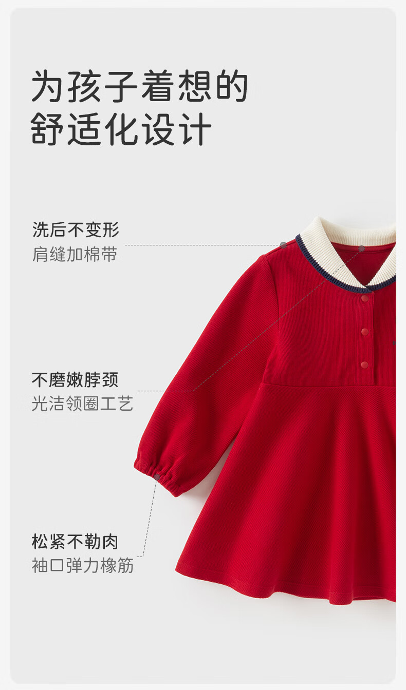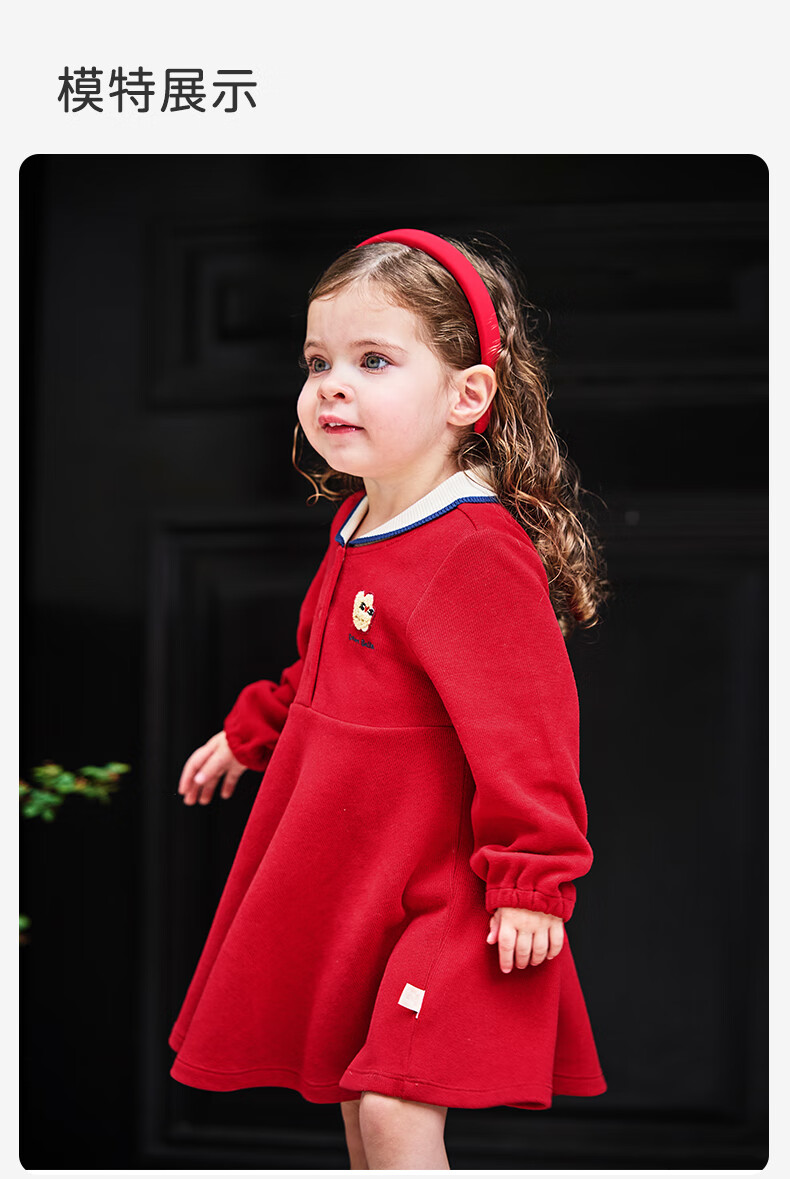DAVE&BELLA pure cotton children's dress, college style girl's princess dress, spring new baby girl's dress, children's dress, red, in stock, 90 cm (recommended height 80-90cm)