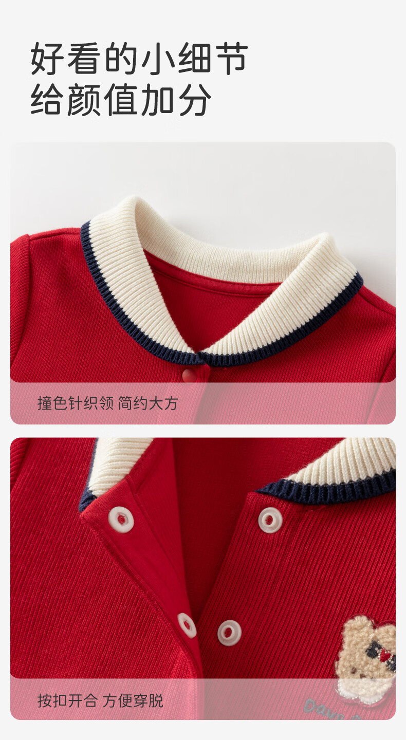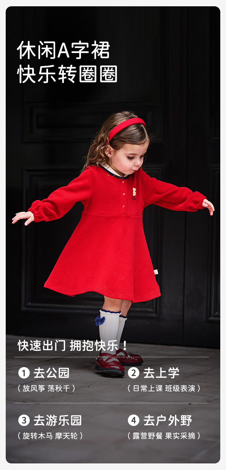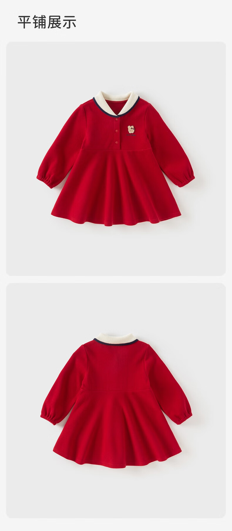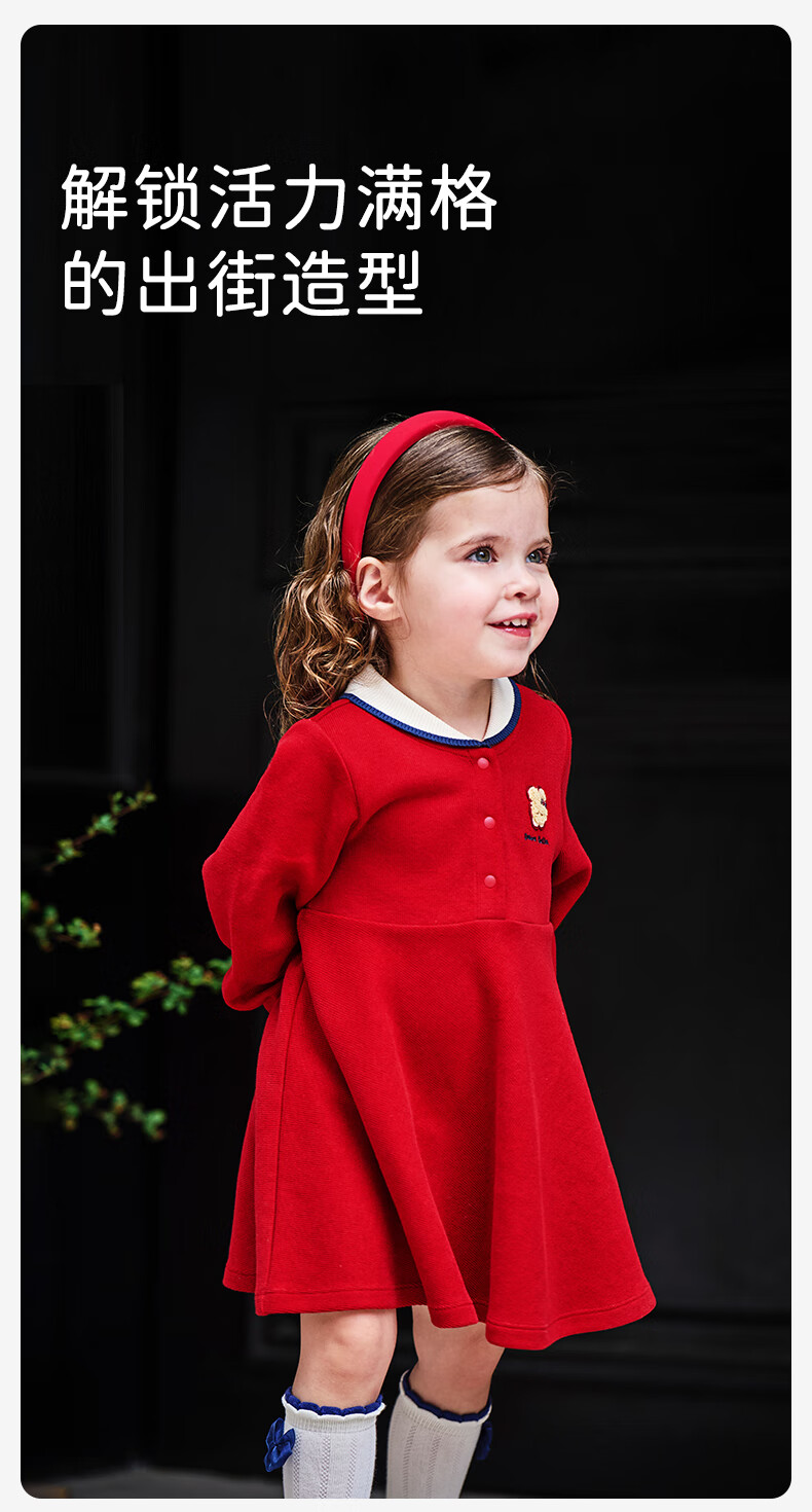 DAVE&BELLA pure cotton children's dress, college style girl's princess dress, spring new baby girl's dress, children's dress, red, in stock, 90 cm (recommended height 80-90cm)