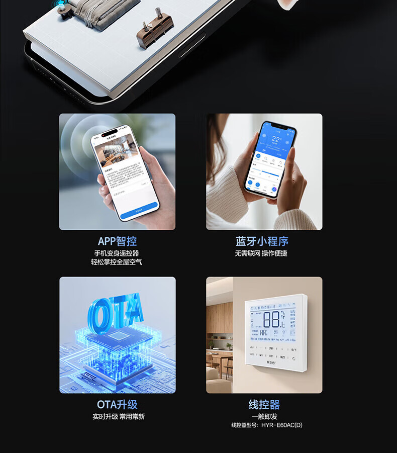 Haier National Subsidy Central Air Conditioning Multi-split New Level Energy Efficiency Full DC Variable Speed Embedded Self-Cleaning Intelligent Central Air Conditioning Yunshu Pro+ 5 HP First Level Energy Efficiency/One to Three/80-110