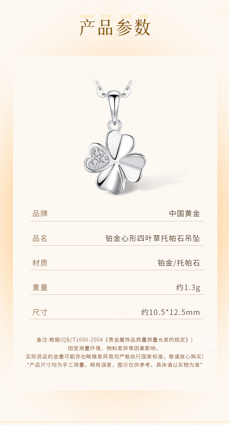 China Gold (CHINA GOLD) Lucky Four Leaf Clover PT950 Platinum Necklace for Women Platinum Pendant Clavicle Chain Birthday Gift for Girlfriend Platinum Four Leaf Clover Pendant Free Silver Chain Souvenir