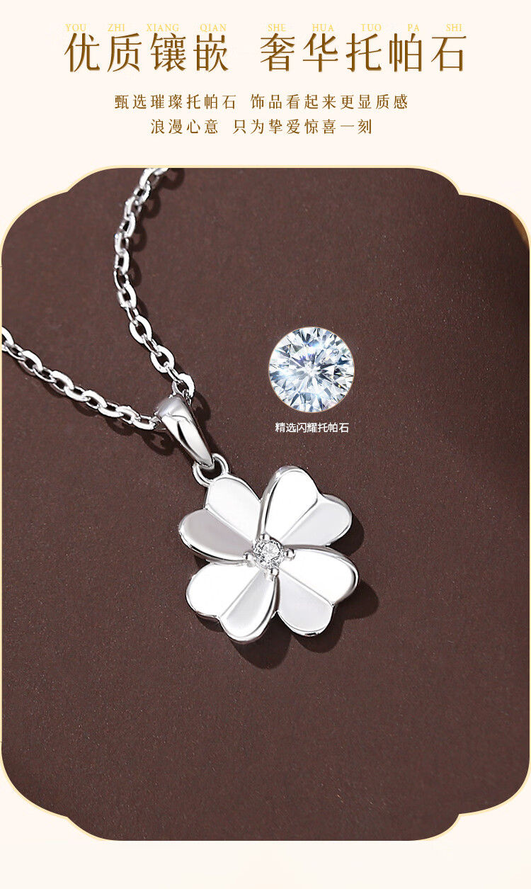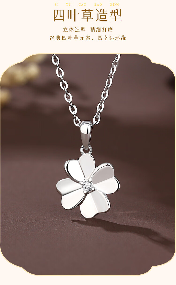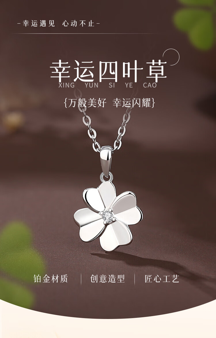China Gold (CHINA GOLD) Lucky Four Leaf Clover PT950 Platinum Necklace for Women Platinum Pendant Clavicle Chain Birthday Gift for Girlfriend Platinum Four Leaf Clover Pendant Free Silver Chain Souvenir