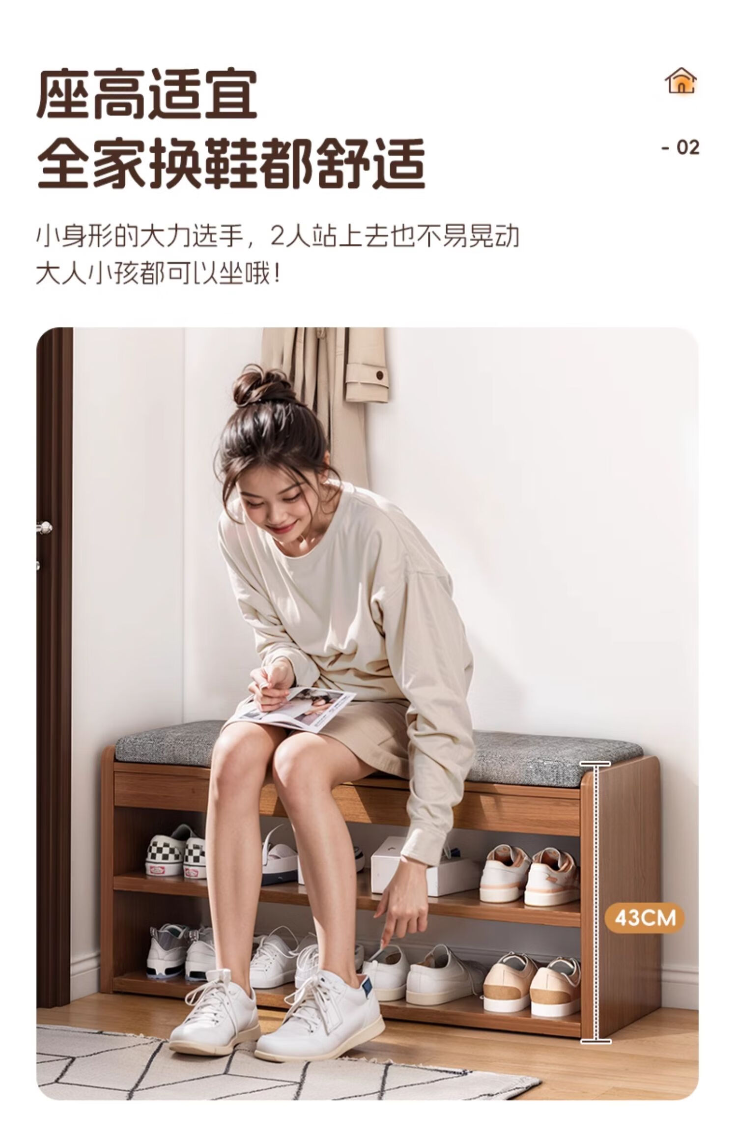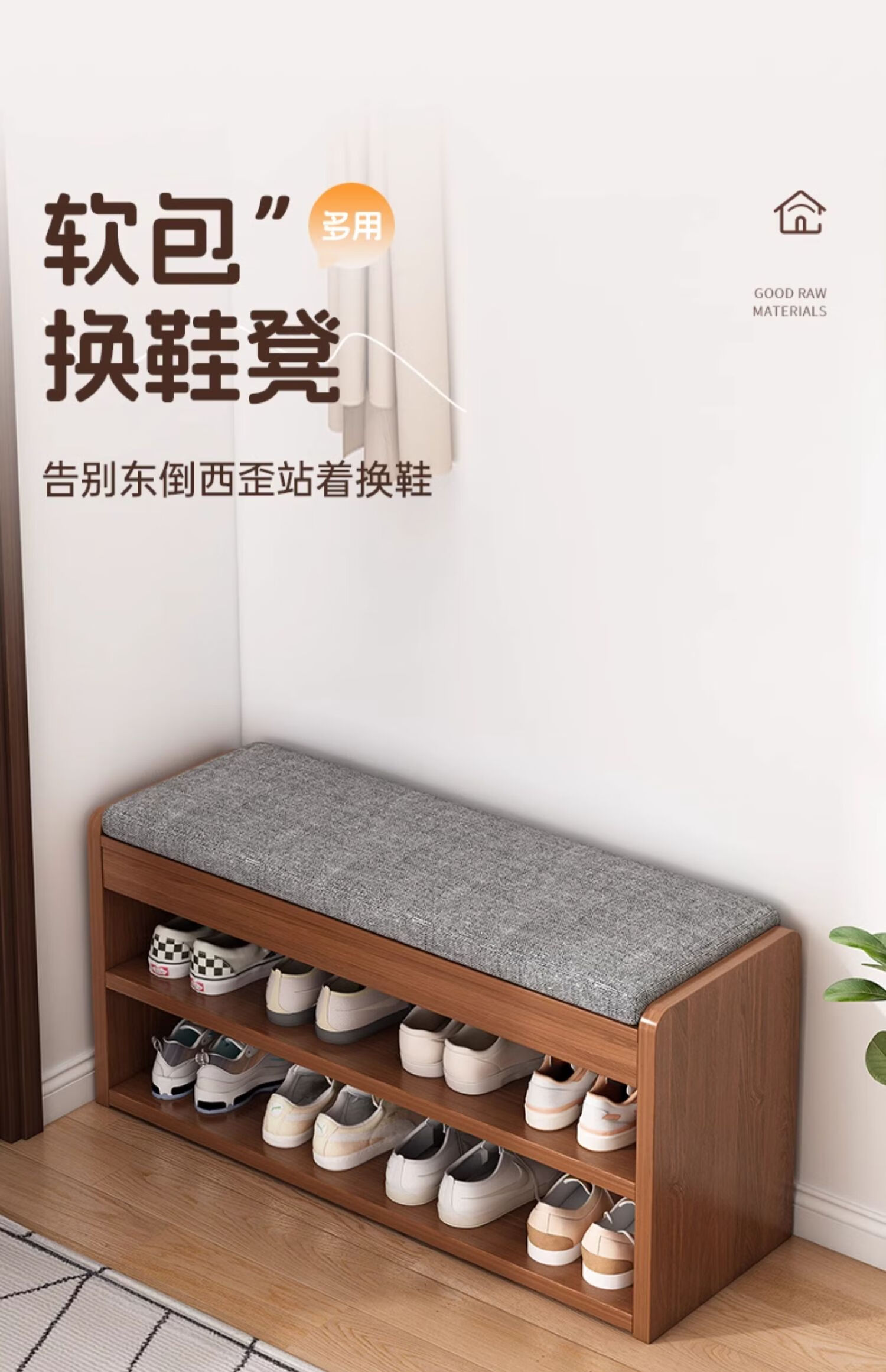 Haosenmeng Shoe Changing Stool Shoe Cabinet Entrance Cabinet Storage Cabinet One Wall Wall Home New 2025 Corridor Shoe Changing Stool Double Layer Flip Storage Compartment-80CM